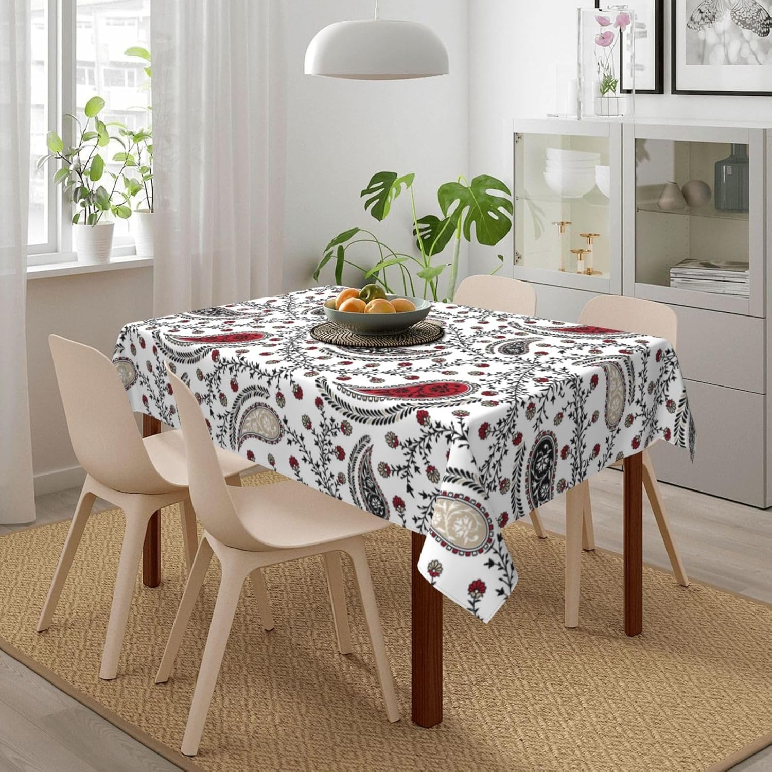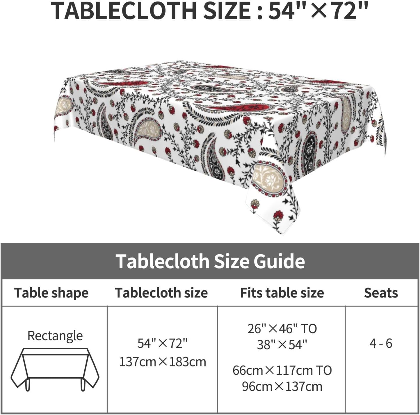 Tessuto tovaglia: la nostra tovaglia cachemire rossa nera bianca è realizzata in tessuto poliestere di alta qualità per una sensazione morbida e accogliente. Il materiale resistente all'acqua protegge il tuo tavolo da schizzi e macchie, rendendolo una tovaglia ideale per varie occasioni. Perfetto per scopi decorativi e funzionali, sia come tovaglia da pranzo che come tovaglia da esterno. Dimensioni della tovaglia: 54" x 72". Questa tovaglia rettangolare con motivo cachemire rosso, nero e bianco si adatta a tavoli da 26" x 46" a 38" x 54". MULTIUSO: La nostra tovaglia con motivo cachemire rossa, nera e bianca è adatta a qualsiasi ambiente interno o esterno, inclusi caffè, cene, brunch, buffet, picnic, matrimoni e feste. È un'aggiunta versatile alla decorazione della tua tavola, adatta come tovaglia da picnic o tovaglia da esterno.,Decorazioni per la casa: queste tovaglie rettangolari con motivo cachemire rosso nero bianco non solo proteggono il tuo tavolo da graffi e macchie, ma aggiungono anche un tocco festoso alla tua sala da pranzo. La tovaglia è perfetta per valorizzare l'arredamento della tua casa mantenendo la tavola pulita e protetta