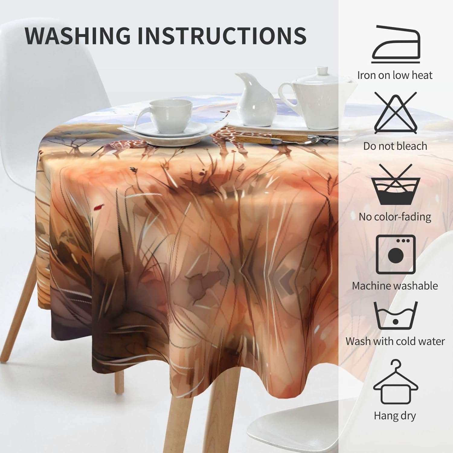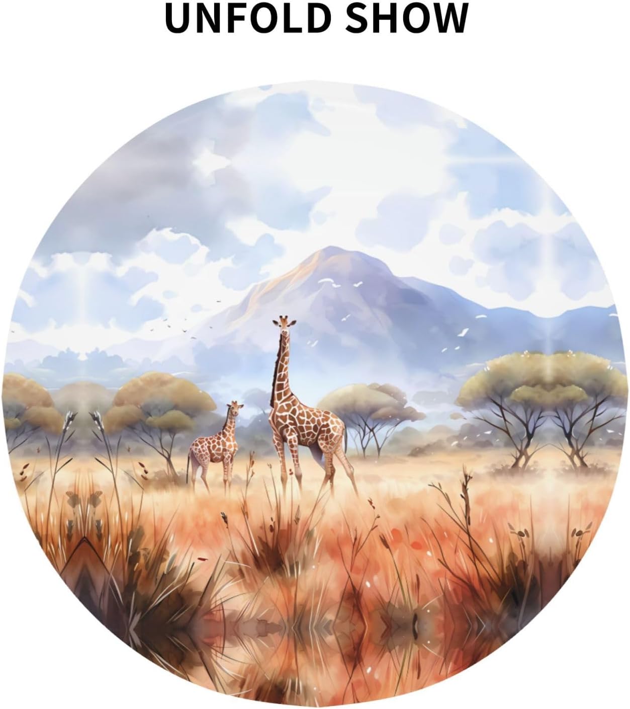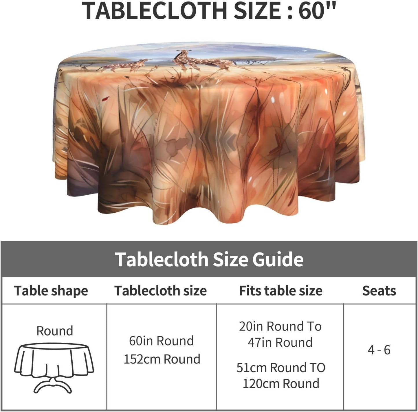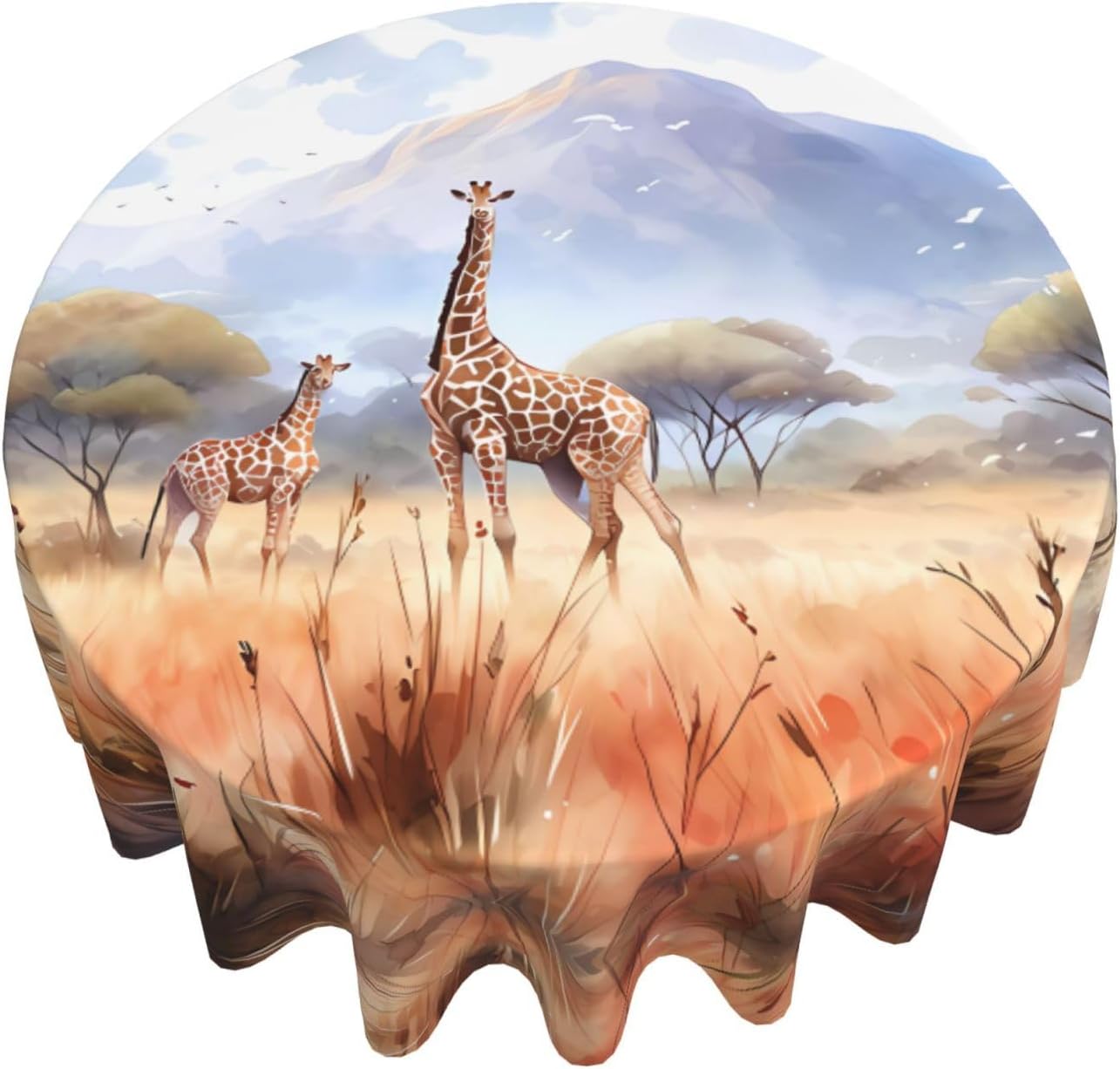 Tovaglia decorativa rotonda con giraffa della savana africana: 60 "di diametro, abbastanza spaziosa da coprire un grande tavolo. Materiale 100% poliestere, caldo e morbido al tatto. Buona resistenza alle rughe, piegata piatta dopo un uso ripetuto. Riutilizzabile, pratica e durevole. Vantaggi prestazionali: come l'armatura del tavolo, resistente ai graffi e allo sporco. Forte decoratività, adatta a una varietà di stili. Non solo aggiunge bellezza ma protegge anche il piano del tavolo, il meglio di entrambi i mondi. per tavoli rotondi, sia grandi che piccoli. Come una bella decorazione per abiti, diventa il centro dell'attenzione. Crea un'atmosfera calda ed elegante, adatta per la casa e il lavoro. 【Ampia gamma di applicazioni】 Adatto per una varietà di occasioni, caffè, matrimoni, feste, ecc. Resistente e molto decorativo, protegge il piano del tavolo e aggiunge fascino.