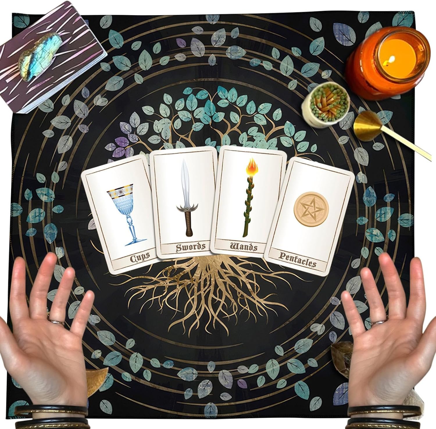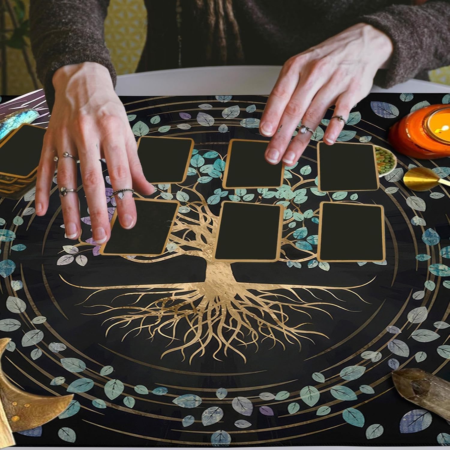 ♚Tovaglia attraente: sperimenta il fascino dei tarocchi in un modo completamente nuovo con la nostra tovaglia finemente realizzata. Il suo design intricato e lo stile misterioso un'atmosfera incantevole, perfetta per giocare a carte con gli amici e aggiungere un tocco di eleganza ai tuoi incontri. ♚Tovaglia antiscivolo: la nostra tovaglia per tarocchi è realizzata con materiali delicati sulla pelle per un uso duraturo. La sensazione lussuosa e le superfici antiscivolo migliorano il tuo gioco aggiungendo eleganza al tuo tavolo. ♚Ampia applicazione: presentazione della tovaglia dei Tarocchi, un arazzo indispensabile per gli ingressi che funge anche da tappetino da picnic o da copertura per la scrivania. Ideale per le attività sull'altare, questo telo di ampio utilizzo aggiunge stile e funzionalità a qualsiasi spazio. ♚Facile da trasportare: mantieni le tue carte dei Tarocchi al sicuro da eventuali danni con questa tovaglia pieghevole. Il suo design intelligente lo rende facile da riporre e trasportare, perfetto per i rabdomanti in movimento che desiderano comunque godere di una protezione elegante e alla moda. ♚Regalo squisito: come consulente o appassionato di tarocchi, mostra il tuo affetto con questa squisita tovaglia dei tarocchi; Perfetto per vacanze e compleanni, è un regalo eccellente che esprime la tua cura.