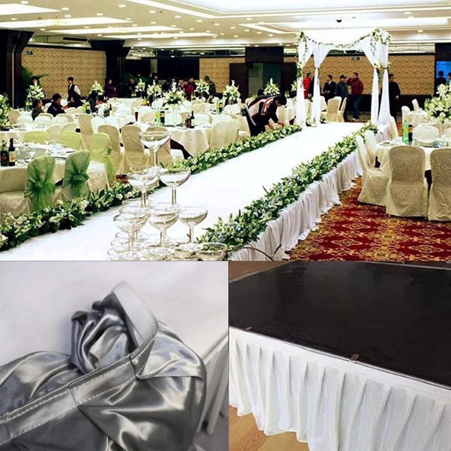 VESTIBILITÀ VERSATILE: le nostre gonne da tavolo sono disponibili in una varietà di dimensioni, comprese quelle appositamente progettate per tavoli rettangolari. Che tu abbia bisogno di una gonna da tavolo per un buffet o di una tovaglia decorativa per una presentazione, i nostri design versatili soddisfano le tue esigenze. DECORAZIONE ELEGANTE: trasforma il tuo evento con le nostre gonne da tavolo per feste che aggiungeranno un tocco di eleganza a qualsiasi incontro. Queste gonne da tavolo creano uno splendido sfondo per i tuoi tavoli e sono perfette per matrimoni, feste di compleanno e altre celebrazioni. Design durevole: queste gonne da tavolo sono realizzate con materiali affidabili e possono resistere alle esigenze di qualsiasi evento. Che si tratti di una festa all'aperto o di un incontro al chiuso, le nostre gonne da tavolo manterranno il loro aspetto per tutta la durata della celebrazione. Installazione semplice: con le nostre tovaglie da tavolo, preparare il tuo evento non è mai stato così facile. Ogni gonna da tavolo è progettata per un fissaggio facile e veloce, così potrai decorare facilmente i tuoi tavoli in pochissimo tempo. Goditi l'organizzazione della festa senza stress con i nostri design facili da usare. Questa gonna da tavolo è adatta per ogni occasione, dai matrimoni alle feste di compleanno fino agli eventi festivi.