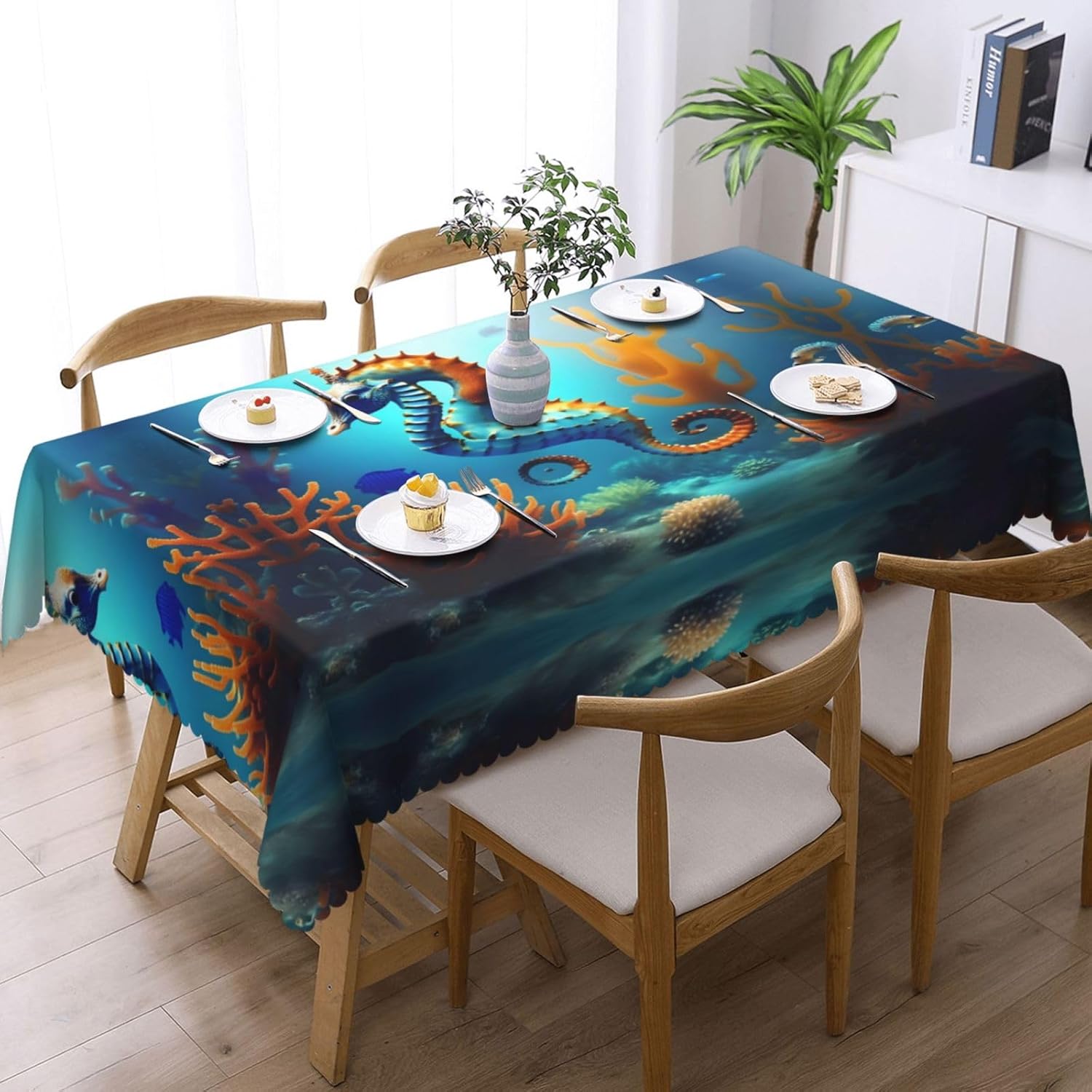 Tovaglia quadrata con stampa in pizzo corallo fondale marino, 54 x 72 pollici in poliestere