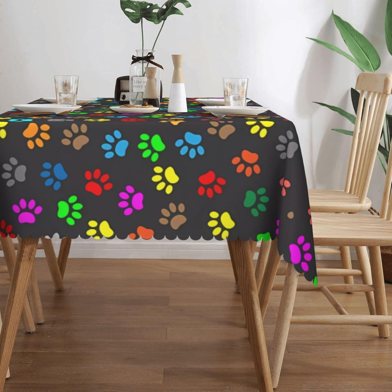 Stampa colorata di zampe di cane, design quadrato elaborato nero: questa tovaglia quadrata in pizzo presenta una splendida stampa su un solo lato e aggiungerà un tocco di eleganza a qualsiasi tavola. RESISTENTE FIBRA DI POLIESTERE AL 100%: Realizzata al 100% in fibra di poliestere di alta qualità, la nostra tovaglia offre una sensazione accogliente e morbida pur mantenendo un'eccellente durata e resistenza alle pieghe per una bellezza duratura. RESISTENTE ALL'ACQUA E RIUTILIZZABILE: Realizzata in tessuto impermeabile di alta qualità, questa tovaglia è facilmente lavabile e riutilizzabile per garantire che la superficie da pranzo sia protetta da schizzi, macchie e graffi, all'interno o all'esterno. MULTIUSO - Perfetta per applicazioni pratiche e decorative, la nostra tovaglia quadrata migliora l'atmosfera di bar, cene, brunch, buffet, picnic, matrimoni, feste e altro ancora. Trasforma senza sforzo qualsiasi occasione indoor o outdoor in un evento sofisticato. Elegante bordo in pizzo semicircolare: completa di un affascinante bordo in pizzo smerlato a semicerchio, questa tovaglia aggiunge un tocco di raffinatezza senza tempo che migliorerà l'arredamento della tua cucina, sala da pranzo o sala riunioni.
