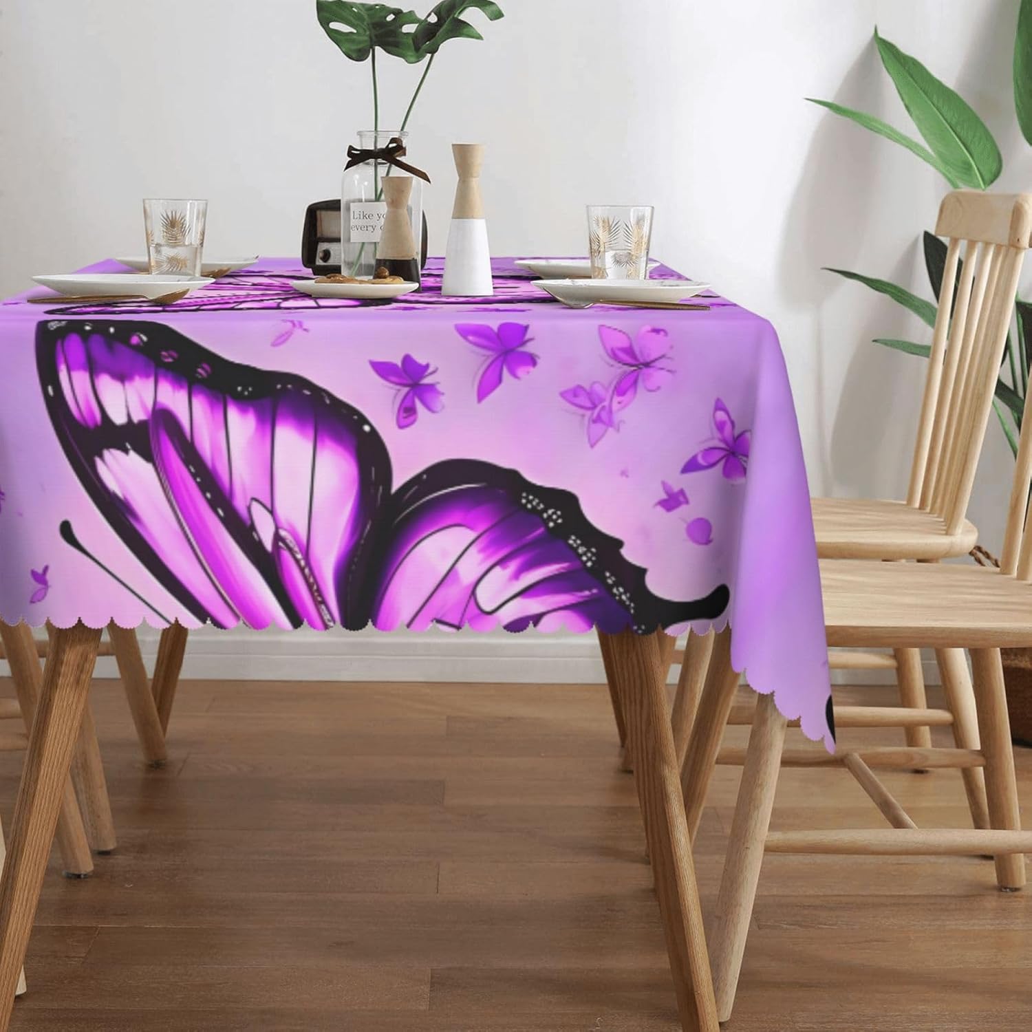 Stampa su un lato a tutta lunghezza con farfalla viola: la nostra tovaglia quadrata presenta una stampa su un solo lato a tutta lunghezza che aggiungerà un tocco di eleganza e stile a qualsiasi ambiente. 【Materiale Premium】 Realizzata al 100% in poliestere, questa tovaglia offre una sensazione calda e morbida, combinando comfort e durata. RESISTENTE ALL'ACQUA E SENZA PIEGHE: questa tovaglia è realizzata in tessuto resistente all'acqua di alta qualità e non solo è facile da pulire ma è anche altamente resistente alle rughe, quindi ha sempre un aspetto fresco. MULTIUSO - Perfetta per scopi decorativi e funzionali, questa tovaglia è ideale per varie occasioni interne ed esterne come bar, cene, brunch, buffet, picnic, matrimoni e feste. 【Design Elegante】La tovaglia presenta un bordo smerlato semicircolare che aggiunge un tocco classico e sofisticato al tuo tavolo.