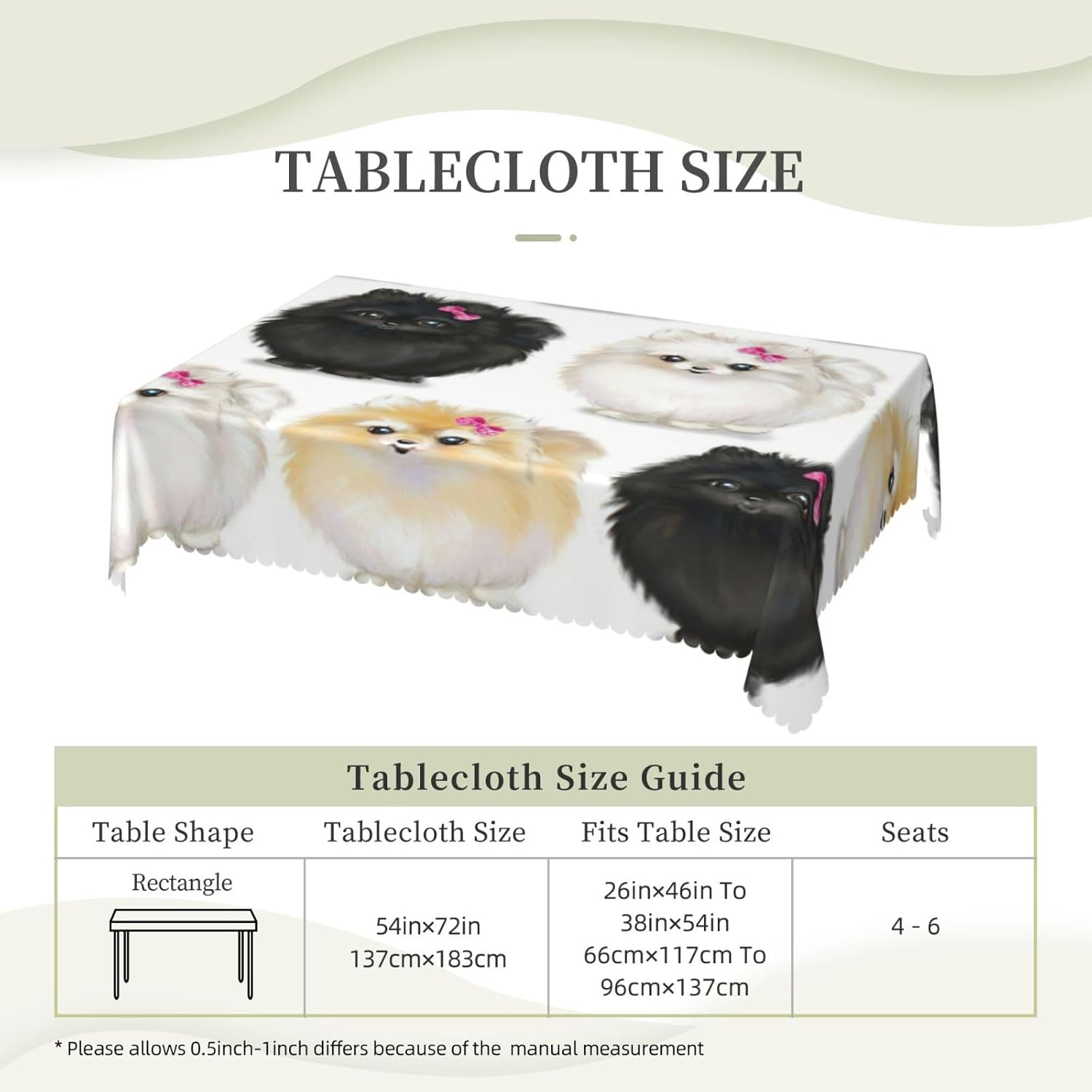 Questa tovaglia rettangolare con motivo Pomerania è di 137x183 cm. Tovaglia con motivo Pom Pom realizzata in materiale poliestere, calda e morbida, buona resistenza alle pieghe, può essere lavata e riutilizzata, protegge dalla polvere e protegge da ammaccature, scheggiature e graffi. Tovaglia con motivo pizzo Pomerania, può essere utilizzata sia all'interno che all'esterno, ideale per feste, matrimoni, campeggio, patio, compleanno in famiglia, buffet, barbecue, tavolo da cucina, ecc. Tovaglia quadrata con motivo pizzo pigmeo, bordo in pizzo semicircolare, Attenzione: non candeggiare, non esporre alla luce solare, è accettabile sia il lavaggio a mano che in lavatrice a temperatura ambiente e la stiratura a bassa temperatura. In caso di problemi o domande, contattaci, ti risponderemo entro 24 ore
