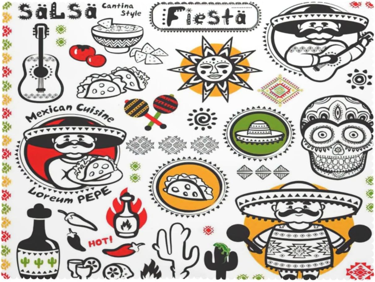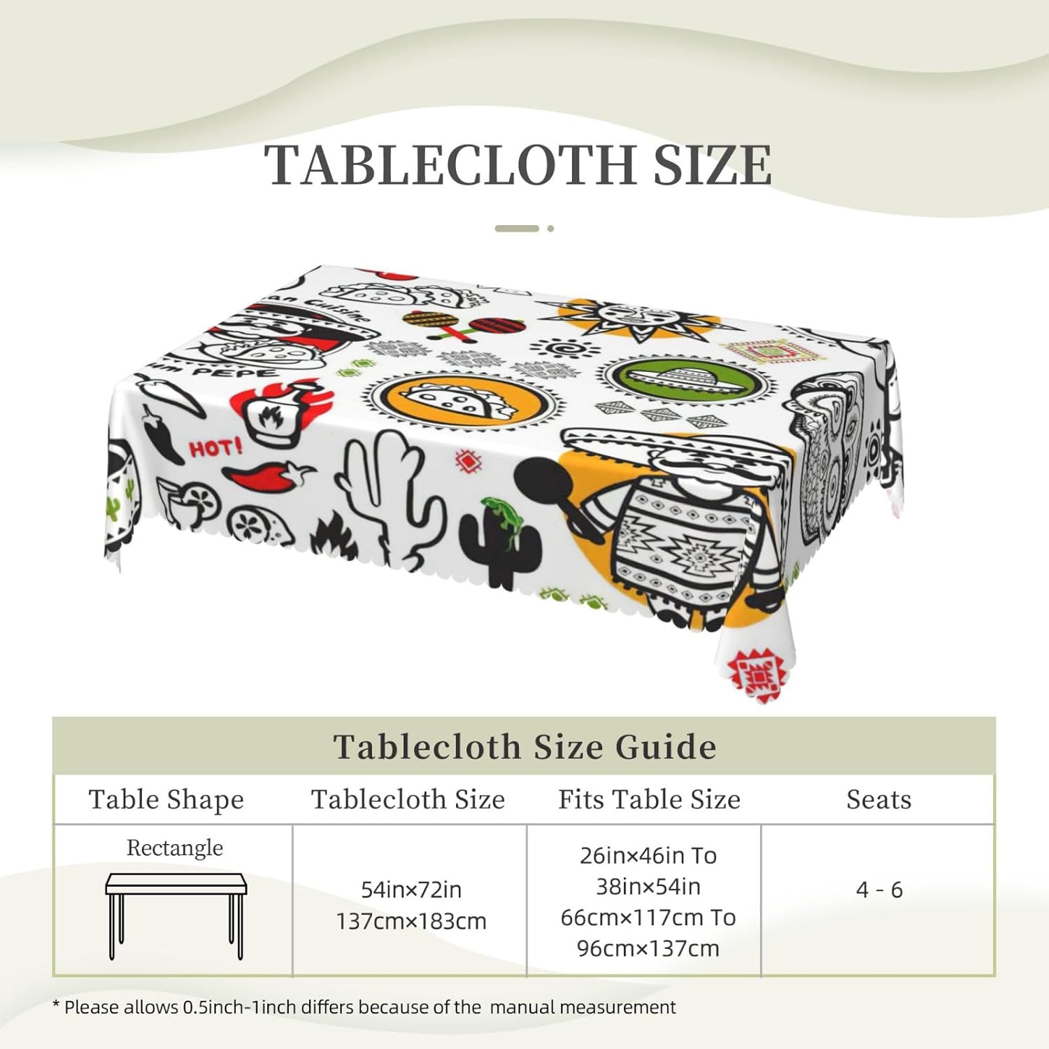 Questa tovaglia rettangolare con simboli della salsa messicana misura 54 x 72 pollici. Tovaglia realizzata in materiale poliestere, calda e morbida, buona resistenza alle pieghe, può essere lavata e riutilizzata, protegge dalla polvere e protegge da ammaccature, scheggiature e graffi. Tovaglia con simboli della salsa messicana, può essere utilizzata sia all'interno che all'esterno, ideale per feste, matrimoni, campeggio, patio, compleanno in famiglia, buffet, barbecue, tavoli da cucina, ecc. Tovaglia quadrata con simboli della salsa messicana, bordo in pizzo semicircolare, Attenzione: non candeggiare, non esporre alla luce del sole, è accettabile sia il lavaggio a mano che in lavatrice a temperatura ambiente e la stiratura a bassa temperatura. In caso di problemi o domande, contattateci, vi risponderemo entro 24 ore