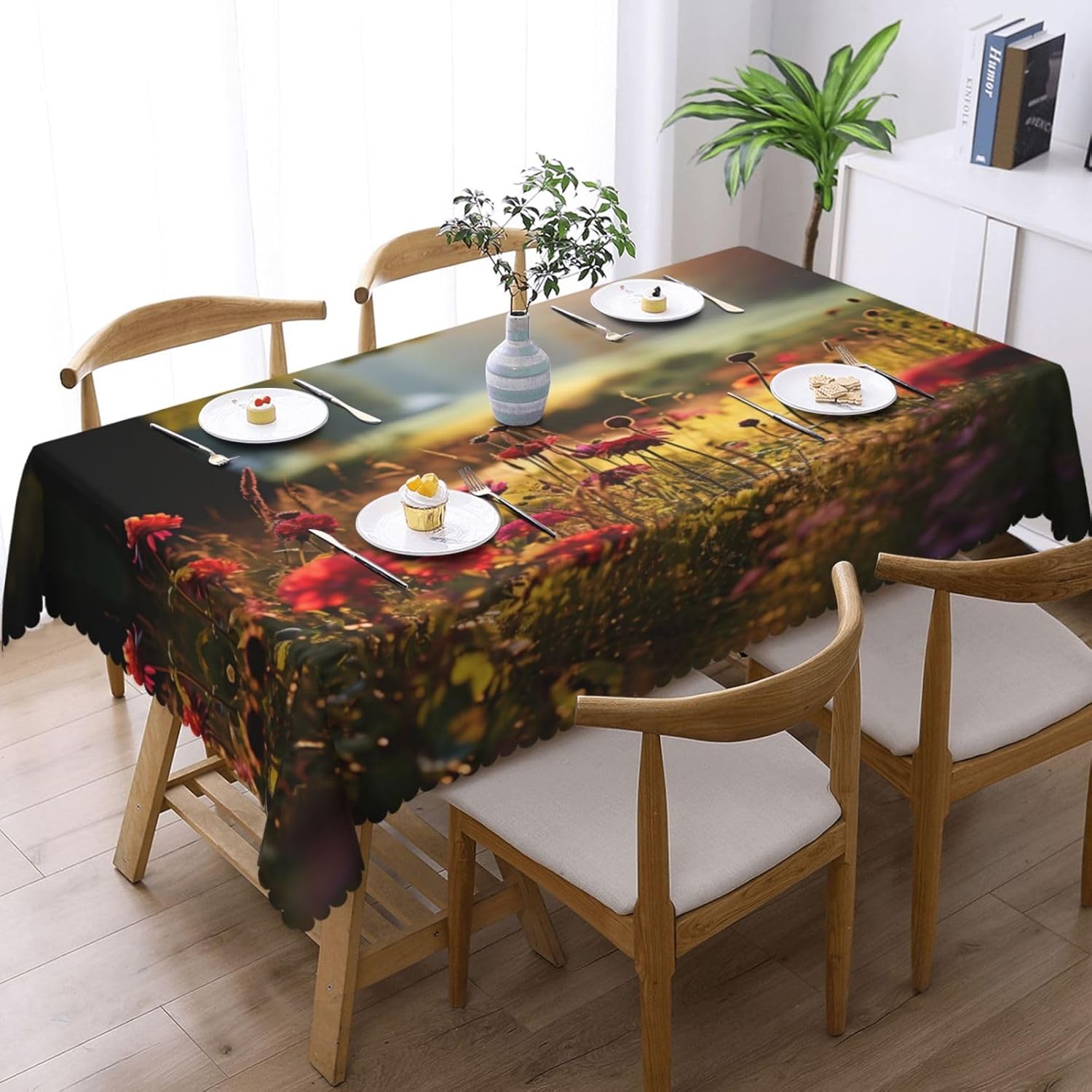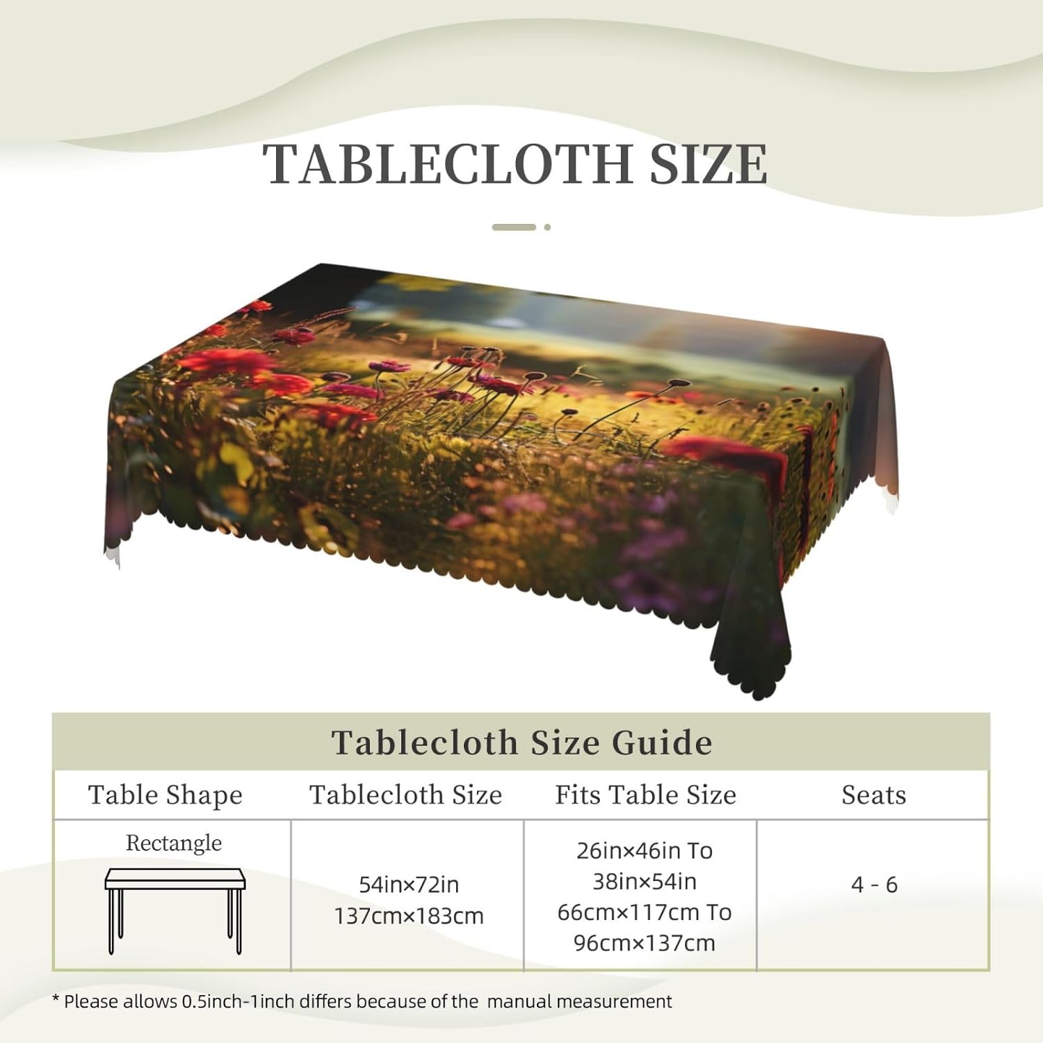 Questa tovaglia rettangolare con fiori autunnali misura 137 x 183 cm. Tovaglia con fiori autunnali realizzata in materiale poliestere, calda e morbida, buona resistenza alle pieghe, può essere lavata e riutilizzata, protegge dalla polvere e protegge da ammaccature, scheggiature e graffi. Tovaglia con motivi floreali autunnali, utilizzabile sia all'interno che all'esterno, ideale per feste, matrimoni, campeggio, patio, compleanno in famiglia, buffet, barbecue, tavoli da cucina, ecc. Tovaglia quadrata con motivi floreali autunnali, bordo in pizzo semicircolare, Attenzione: non candeggiare, non esporre alla luce del sole, è accettabile sia il lavaggio a mano che in lavatrice a temperatura ambiente e la stiratura a bassa temperatura. Se hai problemi o domande, ti preghiamo di contattarci, ti risponderemo entro 24 ore
