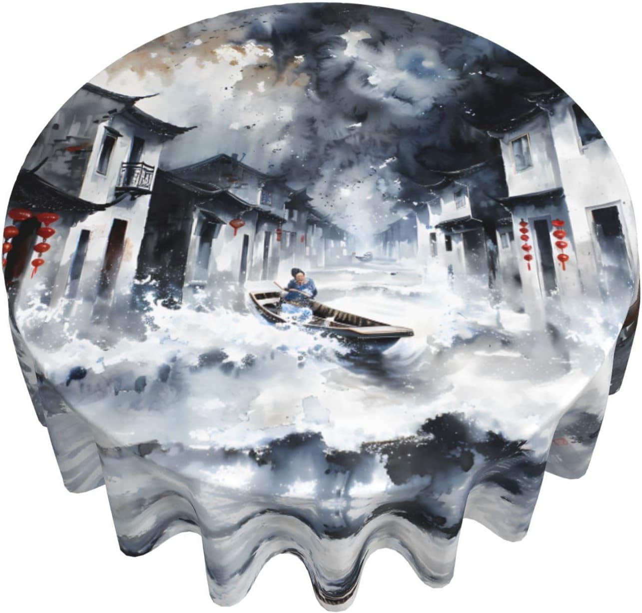 Tovaglia rotonda con barca in acqua Tovaglia lavabile da 60 pollici per ristoranti, picnic, interni ed esterni
