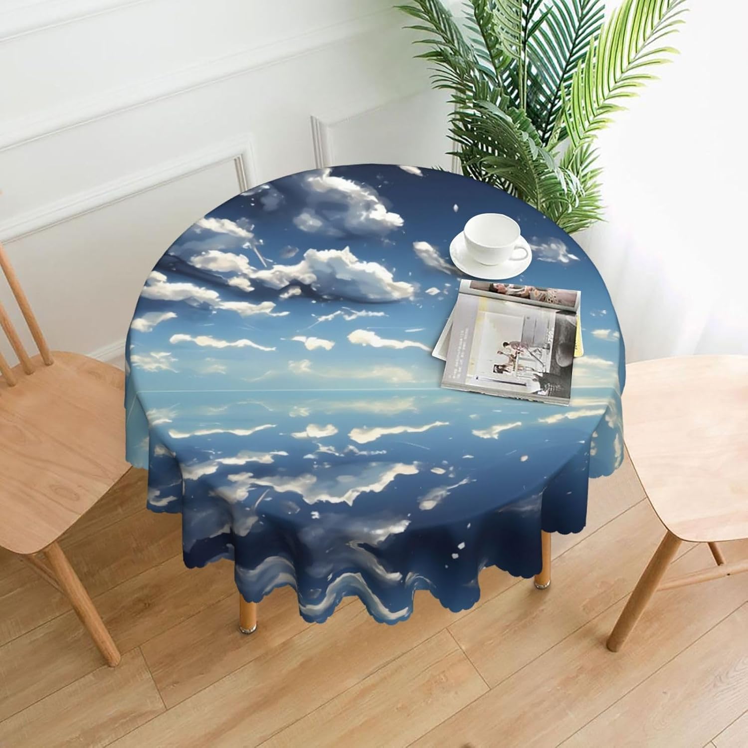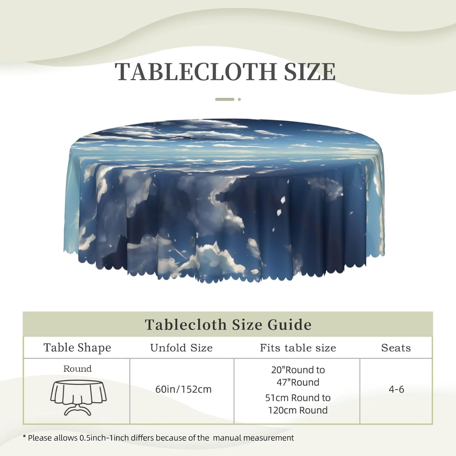 【Tovaglia rotonda da 60 pollici con cielo blu e nuvole bianche】 Questa tovaglia ha un fascino unico e prestazioni eccellenti, rendendola la prima scelta per molte famiglie e luoghi. Utilizza la stampa transfer, con motivi chiari e delicati, aggiunge un tocco artistico al tavolo da pranzo. 【Tessuto di alta qualità】 Realizzato al 100% in poliestere, è idrorepellente e morbido al tatto. È resistente alle pieghe e può essere lavato e riutilizzato, il che può proteggere il tavolo da pranzo da graffi e macchie, facendolo sembrare nuovo. Ampia gamma di scenari applicativi: varie occasioni di pranzo e riunioni di tavole rotonde interne ed esterne. Che si tratti di una riunione di famiglia o di un luogo commerciale, può mostrare un fascino unico.,Misura applicabile: la nostra tovaglia ha un diametro di 60 pollici (152 cm). A causa dei diversi metodi di misurazione, la dimensione può variare di 2-4 cm. Scegli l'acquisto in base alla tua tabella,Facile da riporre e mantenere: gli accessori includono solo una tovaglia, semplice e facile da riporre. Lavare a mano o in lavatrice a temperatura ambiente. Fare attenzione a non candeggiare o esporre al sole e stirare a bassa temperatura per mantenerlo in buone condizioni