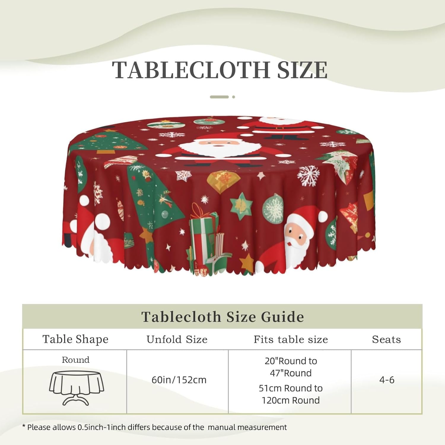 【Simpatica tovaglia rotonda da 60 pollici con regali di Babbo Natale】 Questa tovaglia ha un fascino unico e prestazioni eccellenti, rendendola la prima scelta per molte famiglie e luoghi. Utilizza la stampa transfer, con motivi chiari e delicati, aggiunge un tocco artistico al tavolo da pranzo. 【Tessuto di alta qualità】 Realizzato al 100% in poliestere, è idrorepellente e morbido al tatto. È resistente alle pieghe e può essere lavato e riutilizzato, il che può proteggere il tavolo da pranzo da graffi e macchie, facendolo sembrare nuovo. Ampia gamma di scenari applicativi: varie occasioni di pranzo e riunioni di tavole rotonde interne ed esterne. Che si tratti di una riunione di famiglia o di un luogo commerciale, può mostrare un fascino unico.,Misura applicabile: la nostra tovaglia ha un diametro di 60 pollici (152 cm). A causa dei diversi metodi di misurazione, la dimensione può variare di 2-4 cm. Scegli l'acquisto in base alla tua tabella,Facile da riporre e mantenere: gli accessori includono solo una tovaglia, semplice e facile da riporre. Lavare a mano o in lavatrice a temperatura ambiente. Fare attenzione a non candeggiare o esporre al sole e stirare a bassa temperatura per mantenerlo in buone condizioni