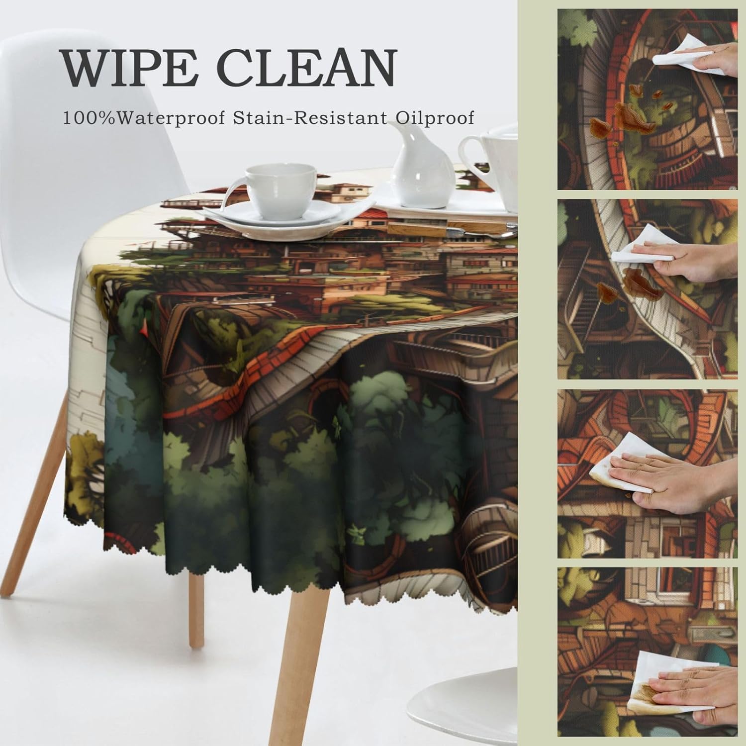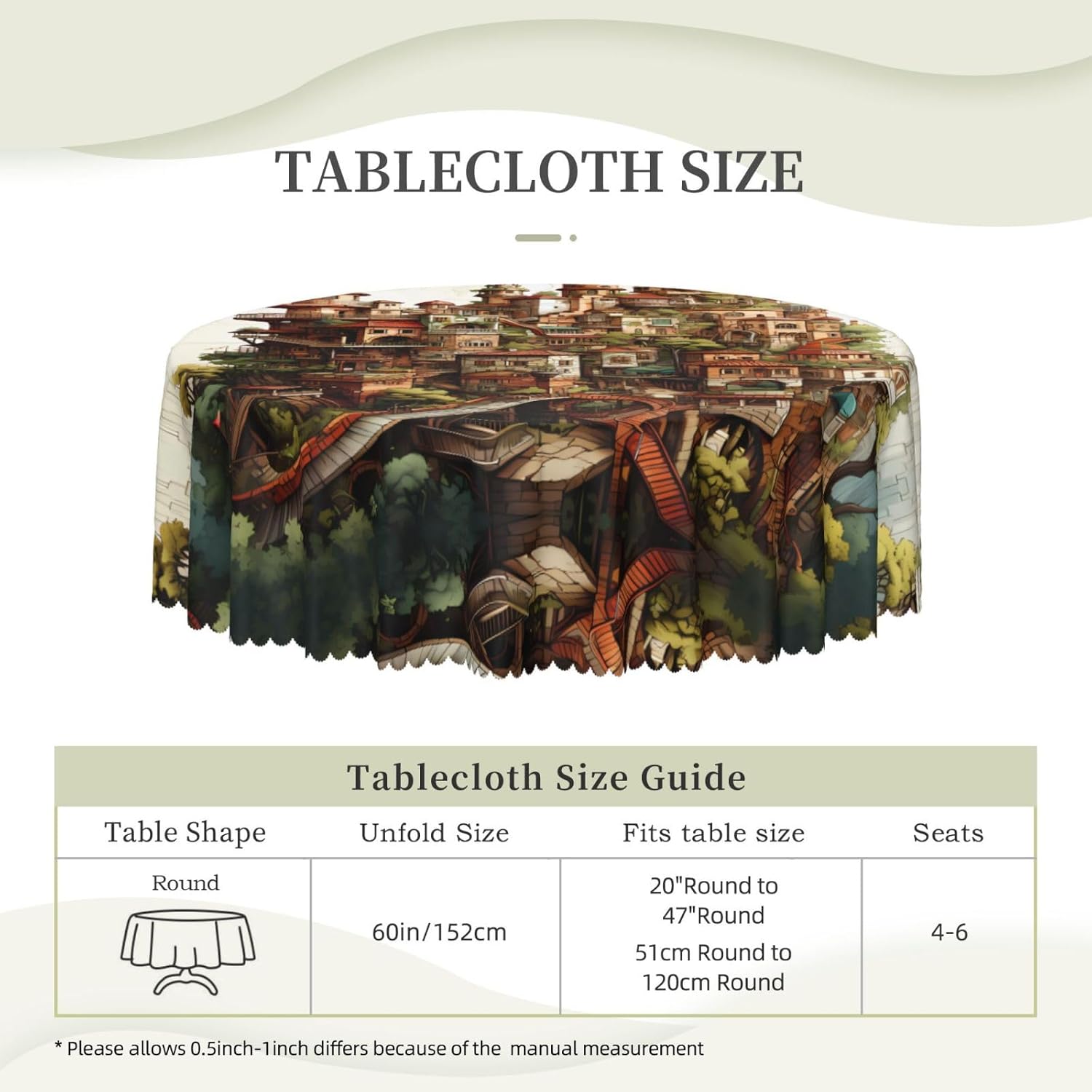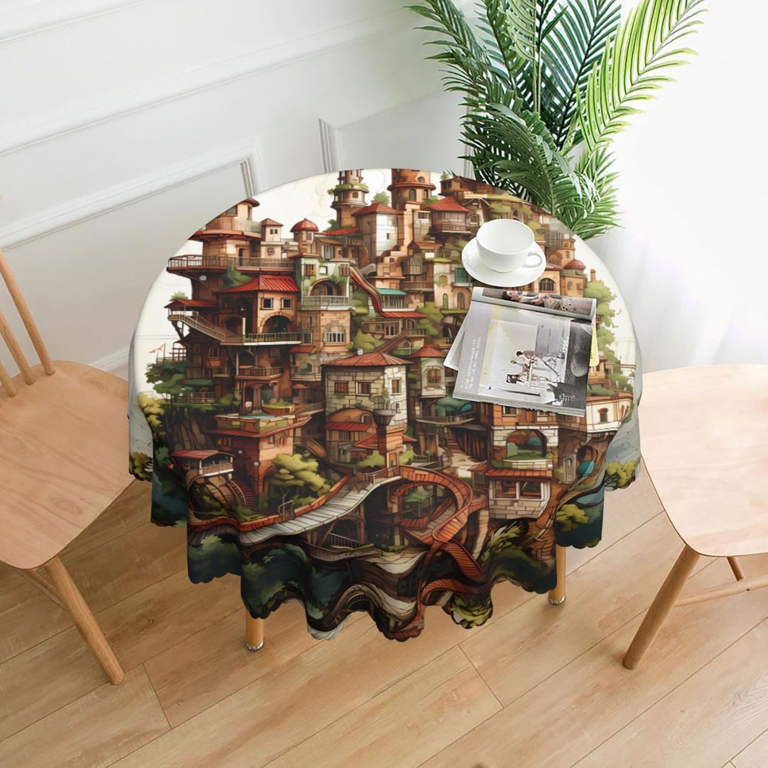 【Tovaglia rotonda da 60 pollici Dream Castle】 Questa tovaglia ha un fascino unico e prestazioni eccellenti, rendendola la prima scelta per molte famiglie e luoghi. Utilizza la stampa transfer, con motivi chiari e delicati, aggiunge un tocco artistico al tavolo da pranzo. 【Tessuto di alta qualità】 Realizzato al 100% in poliestere, è idrorepellente e morbido al tatto. È resistente alle pieghe e può essere lavato e riutilizzato, il che può proteggere il tavolo da pranzo da graffi e macchie, facendolo sembrare nuovo. Ampia gamma di scenari applicativi: varie occasioni di pranzo e riunioni di tavole rotonde interne ed esterne. Che si tratti di una riunione di famiglia o di un luogo commerciale, può mostrare un fascino unico.,Misura applicabile: la nostra tovaglia ha un diametro di 60 pollici (152 cm). A causa dei diversi metodi di misurazione, la dimensione può variare di 2-4 cm. Scegli l'acquisto in base alla tua tabella,Facile da riporre e mantenere: gli accessori includono solo una tovaglia, semplice e facile da riporre. Lavare a mano o in lavatrice a temperatura ambiente. Fare attenzione a non candeggiare o esporre al sole e stirare a bassa temperatura per mantenerlo in buone condizioni