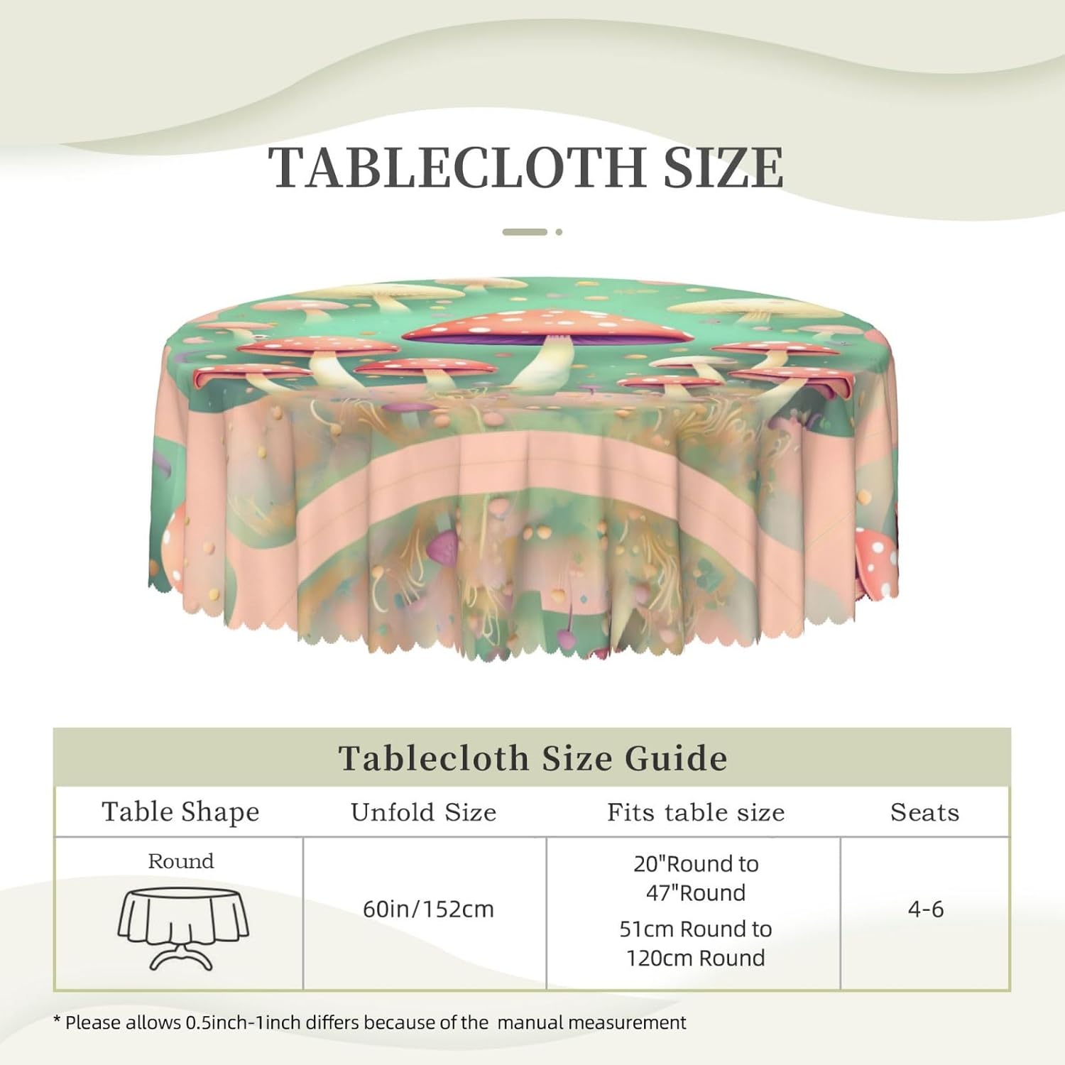 【Tovaglia rotonda da 60 pollici Dream Mushroom】 Questa tovaglia ha un fascino unico e prestazioni eccellenti, rendendola la prima scelta per molte famiglie e luoghi. Utilizza la stampa transfer, con motivi chiari e delicati, aggiunge un tocco artistico al tavolo da pranzo. 【Tessuto di alta qualità】 Realizzato al 100% in poliestere, è idrorepellente e morbido al tatto. È resistente alle pieghe e può essere lavato e riutilizzato, il che può proteggere il tavolo da pranzo da graffi e macchie, facendolo sembrare nuovo. Ampia gamma di scenari applicativi: varie occasioni di pranzo e riunioni di tavole rotonde interne ed esterne. Che si tratti di una riunione di famiglia o di un luogo commerciale, può mostrare un fascino unico.,Misura applicabile: la nostra tovaglia ha un diametro di 60 pollici (152 cm). A causa dei diversi metodi di misurazione, la dimensione può variare di 2-4 cm. Scegli l'acquisto in base alla tua tabella,Facile da riporre e mantenere: gli accessori includono solo una tovaglia, semplice e facile da riporre. Lavare a mano o in lavatrice a temperatura ambiente. Fare attenzione a non candeggiare o esporre al sole e stirare a bassa temperatura per mantenerlo in buone condizioni