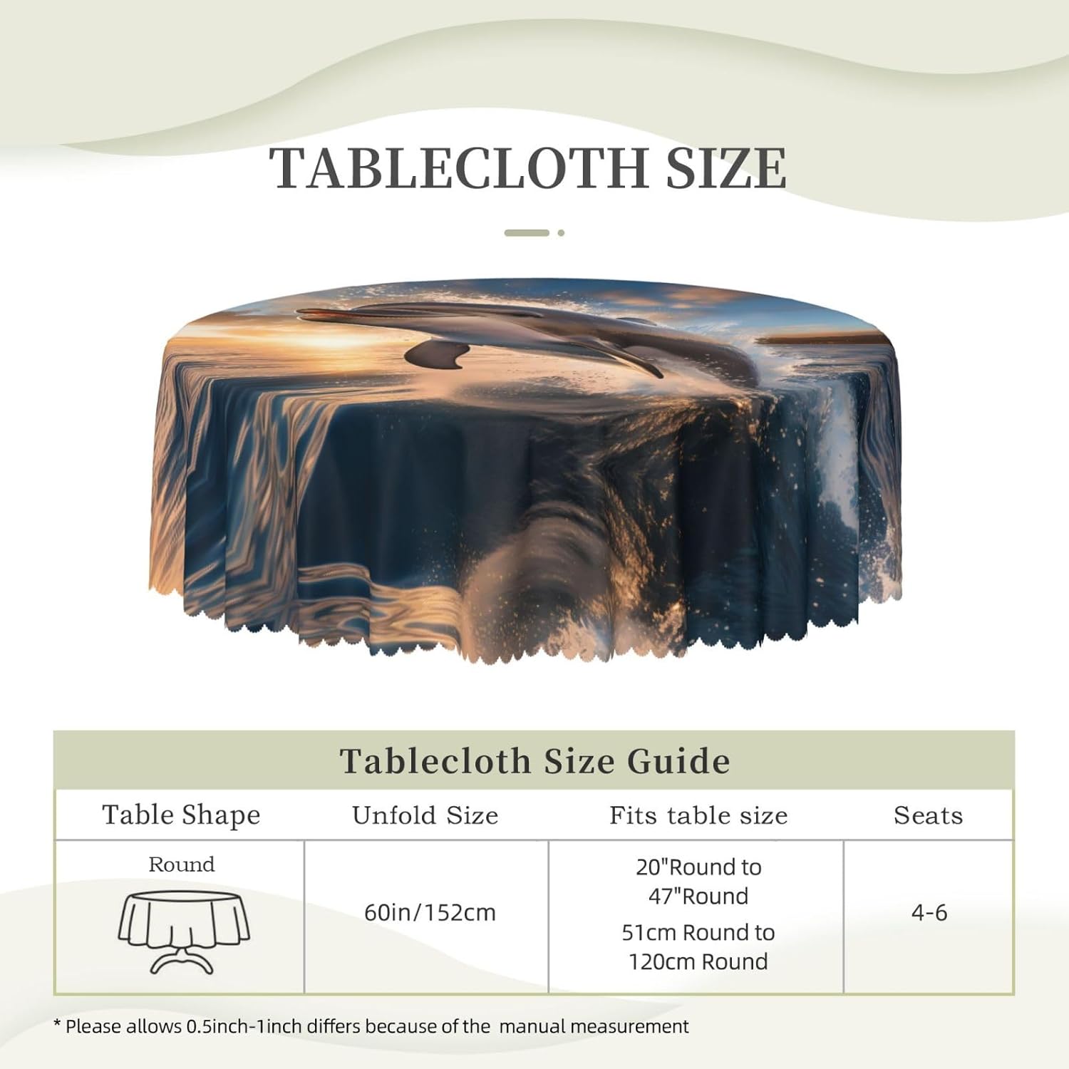 【Tovaglia rotonda da 60 pollici Jumping Dolphin】 Questa tovaglia ha un fascino unico e prestazioni eccellenti, rendendola la prima scelta per molte famiglie e luoghi. Utilizza la stampa transfer, con motivi chiari e delicati, aggiunge un tocco artistico al tavolo da pranzo. 【Tessuto di alta qualità】 Realizzato al 100% in poliestere, è idrorepellente e morbido al tatto. È resistente alle pieghe e può essere lavato e riutilizzato, il che può proteggere il tavolo da pranzo da graffi e macchie, facendolo sembrare nuovo. Ampia gamma di scenari applicativi: varie occasioni di pranzo e riunioni di tavole rotonde interne ed esterne. Che si tratti di una riunione di famiglia o di un luogo commerciale, può mostrare un fascino unico.,Misura applicabile: la nostra tovaglia ha un diametro di 60 pollici (152 cm). A causa dei diversi metodi di misurazione, la dimensione può variare di 2-4 cm. Scegli l'acquisto in base alla tua tabella,Facile da riporre e mantenere: gli accessori includono solo una tovaglia, semplice e facile da riporre. Lavare a mano o in lavatrice a temperatura ambiente. Fare attenzione a non candeggiare o esporre al sole e stirare a bassa temperatura per mantenerlo in buone condizioni