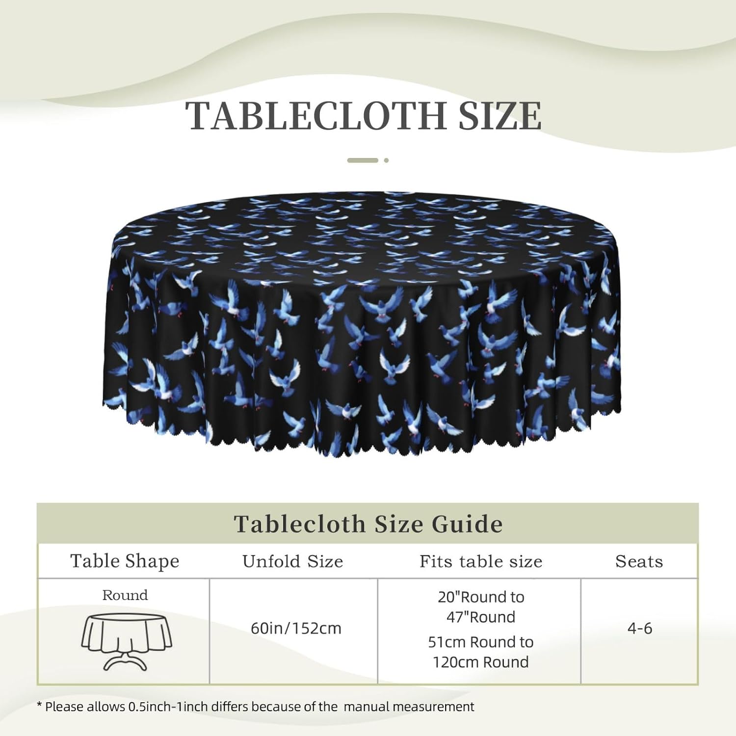【Tovaglia rotonda Pixel Pigeon Swarm da 60 pollici】 Questa tovaglia ha un fascino unico e prestazioni eccellenti, che la rendono la prima scelta per molte famiglie e luoghi. Utilizza la stampa transfer, con motivi chiari e delicati, aggiunge un tocco artistico al tavolo da pranzo. 【Tessuto di alta qualità】 Realizzato al 100% in poliestere, è idrorepellente e morbido al tatto. È resistente alle pieghe e può essere lavato e riutilizzato, il che può proteggere il tavolo da pranzo da graffi e macchie, facendolo sembrare nuovo. Ampia gamma di scenari applicativi: varie occasioni di pranzo e riunioni di tavole rotonde interne ed esterne. Che si tratti di una riunione di famiglia o di un luogo commerciale, può mostrare un fascino unico.,Misura applicabile: la nostra tovaglia ha un diametro di 60 pollici (152 cm). A causa dei diversi metodi di misurazione, la dimensione può variare di 2-4 cm. Scegli l'acquisto in base alla tua tabella,Facile da riporre e mantenere: gli accessori includono solo una tovaglia, semplice e facile da riporre. Lavare a mano o in lavatrice a temperatura ambiente. Fare attenzione a non candeggiare o esporre al sole e stirare a bassa temperatura per mantenerlo in buone condizioni