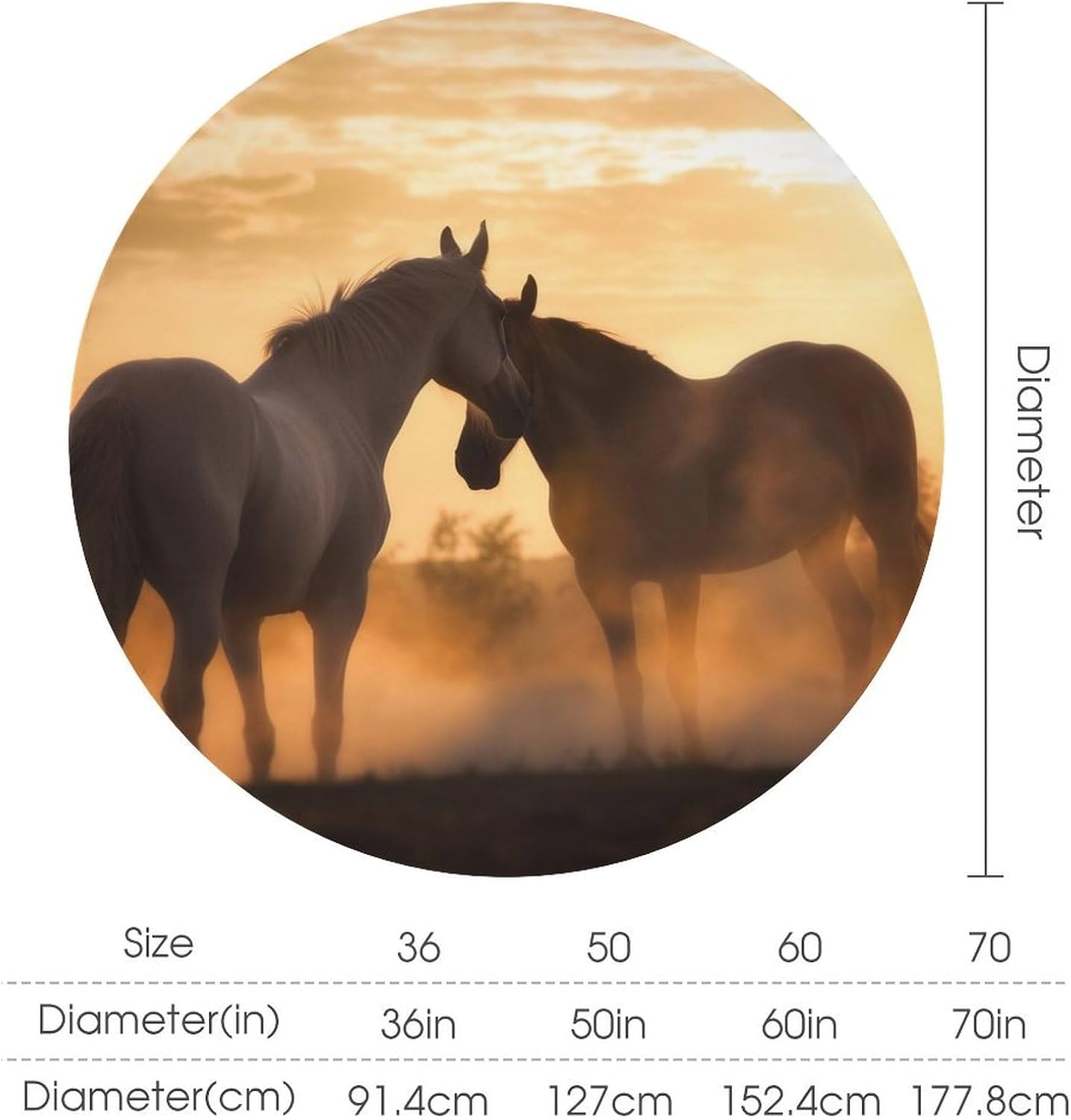 Informazioni sulle dimensioni della tovaglia rotonda: i nostri Horses in Love sono disponibili in quattro misure: 36", 50", 60" e 70", adatti per la maggior parte dei tavoli da buffet pieghevoli, tavoli da picnic all'aperto, cucine e tavoli da pranzo. Lo sporco o il vino rosso versato accidentalmente possono essere puliti direttamente con esso e non devi preoccuparti che le macchie di vino rosso rovinino l'atmosfera. Invece, siediti, rilassati e divertiti in tutta tranquillità.,Scenari applicativi versatili: la semplicità funziona sempre, le tovaglie impermeabili sono semplici ma mai fuori moda e sono ideali per la decorazione della casa e della cucina. Queste tovaglie impermeabili e antimacchia sono adatte per qualsiasi uso interno ed esterno per scopi decorativi o funzionali (ristoranti, bar, agriturismi, cucine, cortili, soggiorni, buffet, picnic, matrimoni, feste, ecc.). Le cuciture sono diritte e strette, senza peli o spazi vuoti, e la stampa e la colorazione sono chiare, delicate e pesanti. Può rendere la tua scrivania più suggestiva, semplice e confortevole, più alla moda e versatile e persino aggiungere vitalità alle cene all'aperto. La tovaglia impermeabile è facile da pulire: può essere lavata a mano o in lavatrice, non lasciare in ammollo a lungo, non candeggiare e la temperatura del liquido di lavaggio non può superare i 45°C