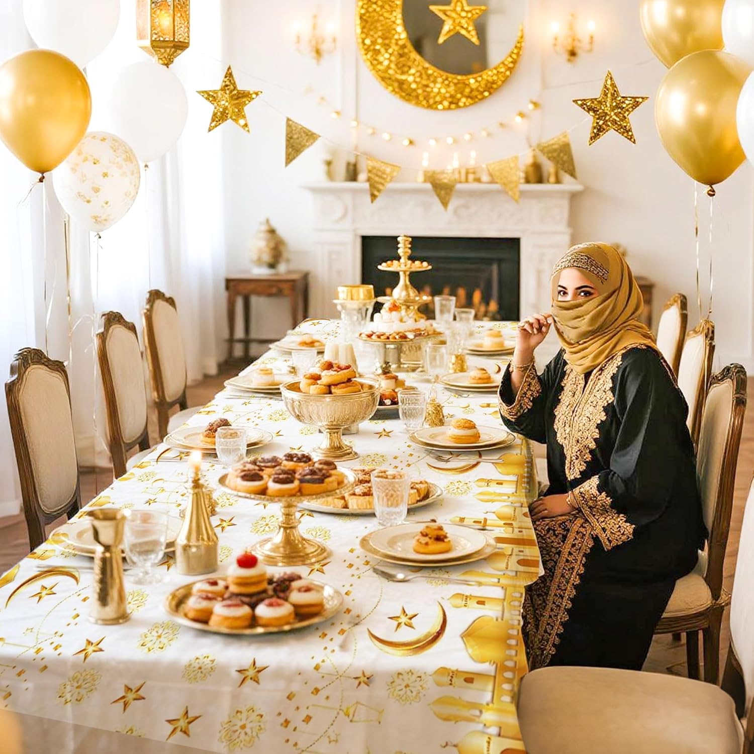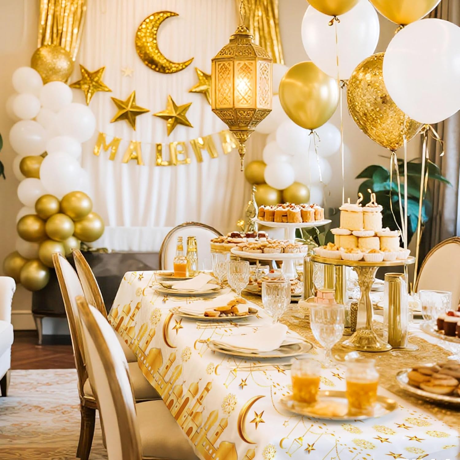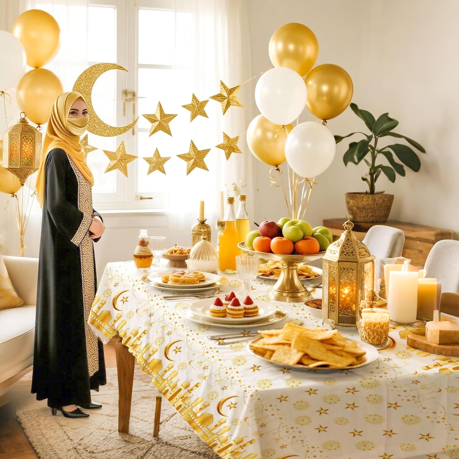 Il nostro set di decorazioni Umrah Mubarak contiene tutto il necessario per una giornata indimenticabile. Questo set di decorazioni Eid è adatto per oggetti decorativi Eid musulmani. Riceverai: 1 tovaglia dorata Progetta tu stesso le tue decorazioni Ramadan, le nostre decorazioni Ramadan per la casa sono belle e divertenti. Le colorate decorazioni dorate dell'Eid rendono la festa colorata.