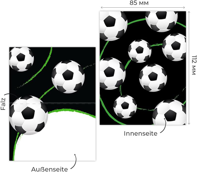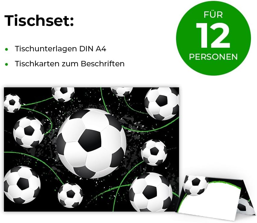 Contenuto della confezione: 12 tovagliette e 12 segnaposto. Pratico: 12 tovagliette sono in formato DIN A4 e le targhette corrispondenti offrono spazio sufficiente per scrivere i nomi degli ospiti. Dimensioni: le tovagliette hanno un formato A4 (29,7 cm x 21 cm), le targhette hanno una dimensione di 85 x 112 mm e piegate 85 x 56 mm Prodotto in Germania: le tovagliette e i segnaposto sono stati prodotti in una tipografia tedesca. ✨ Altro: da noi troverete anche molti altri motivi, ad esempio calcio, ballerina, sirena, animali.