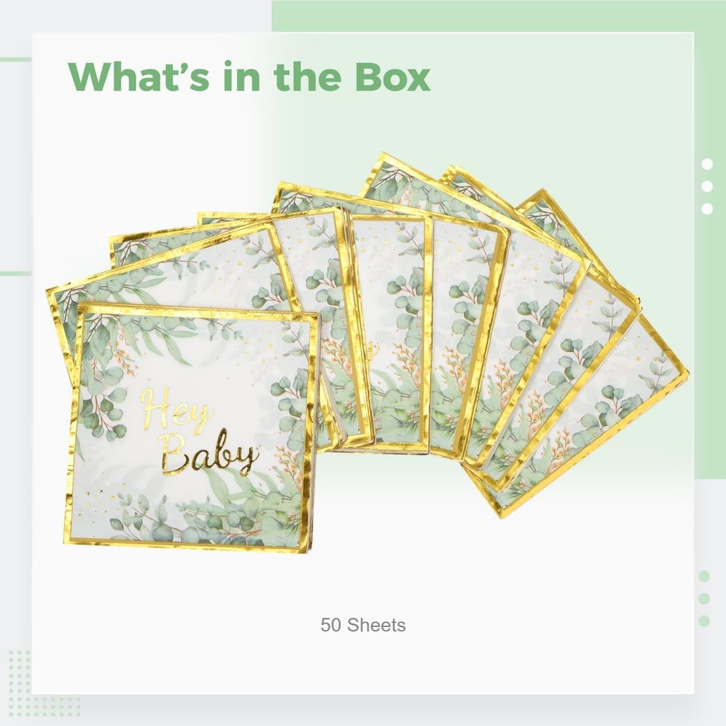 Ampia quantità: questo set fornisce 50 tovaglioli per assicurarti di essere ben attrezzato per qualsiasi evento; dimensioni piegate di 16,5 x 16,5 cm e dimensioni aperte di 33 x 33 cm per una facile manipolazione. Alta assorbenza: realizzata in carta di alta qualità per un eccellente assorbimento di acqua e olio; la struttura a doppio strato garantisce durata e morbidezza Ecologici: biodegradabili e privi di sostanze chimiche nocive, questi tovaglioli non sbiancati sono sicuri per il contatto diretto con il cibo, adatti ai bambini Design elegante: i tovaglioli presentano accenti dorati e motivi floreali con foglie verdi, valorizzando il tuo baby shower o celebrazione con un tocco di eleganza Multiuso: per baby shower, matrimoni, picnic e altro ancora; una scelta ideale per decorare tavoli in varie feste e riunioni