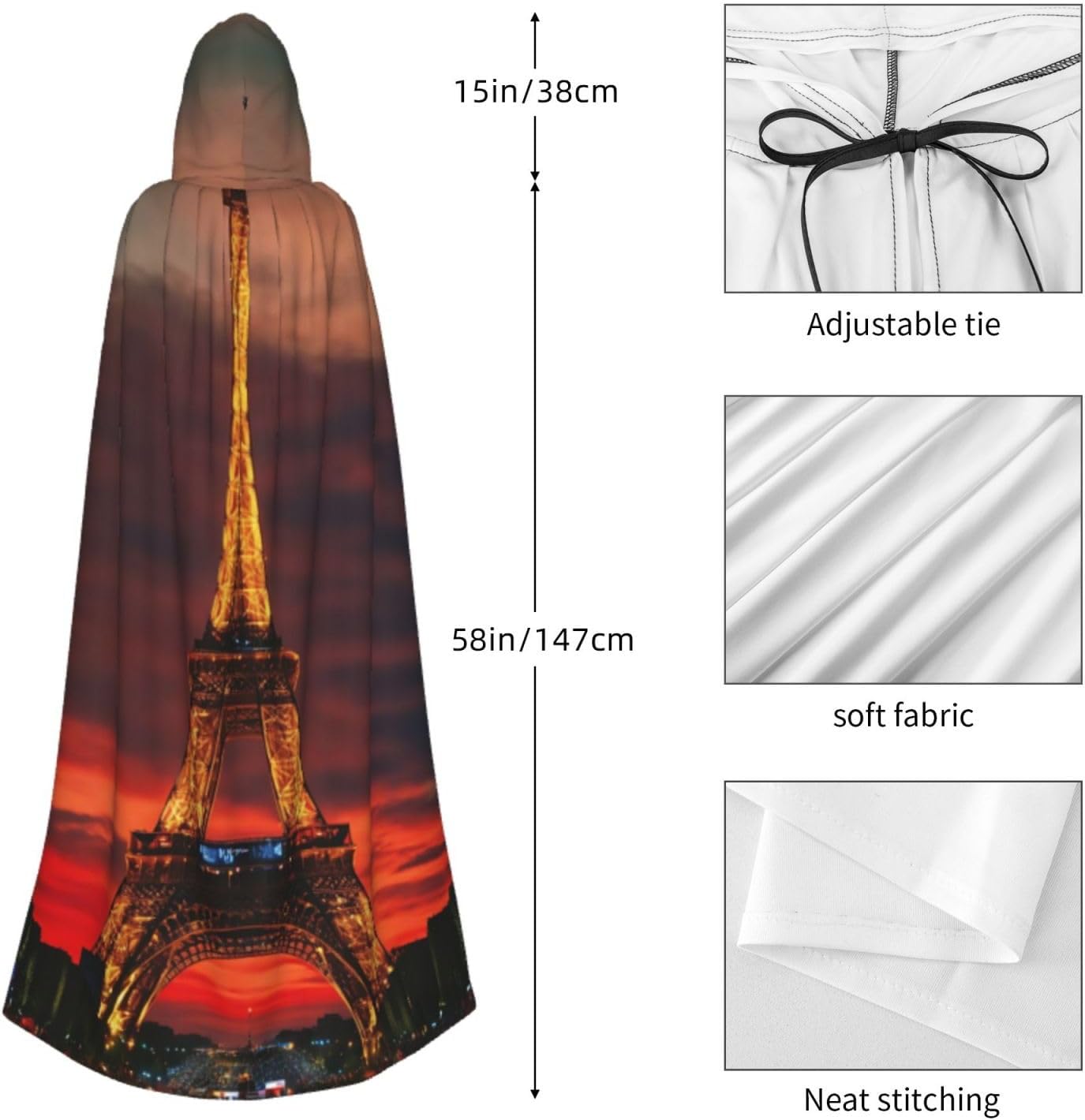 Il mantello con cappuccio per Halloween è realizzato con tessuto in poliestere morbido anche sulla pelle, prevenendo qualsiasi irritazione. Il mantello presenta un ampio cappuccio e uno stile annodato senza cerniere per un design sofisticato ed elegante. Con la sua dimensione universale, offre una copertura completa, adatta a tutti, assicurandoti di distinguerti tra la folla. Questo mantello con stampa Tower Paris non è solo per Halloween; è abbastanza versatile per cosplay, spettacoli teatrali, balli in maschera, feste a tema e molto altro ancora.