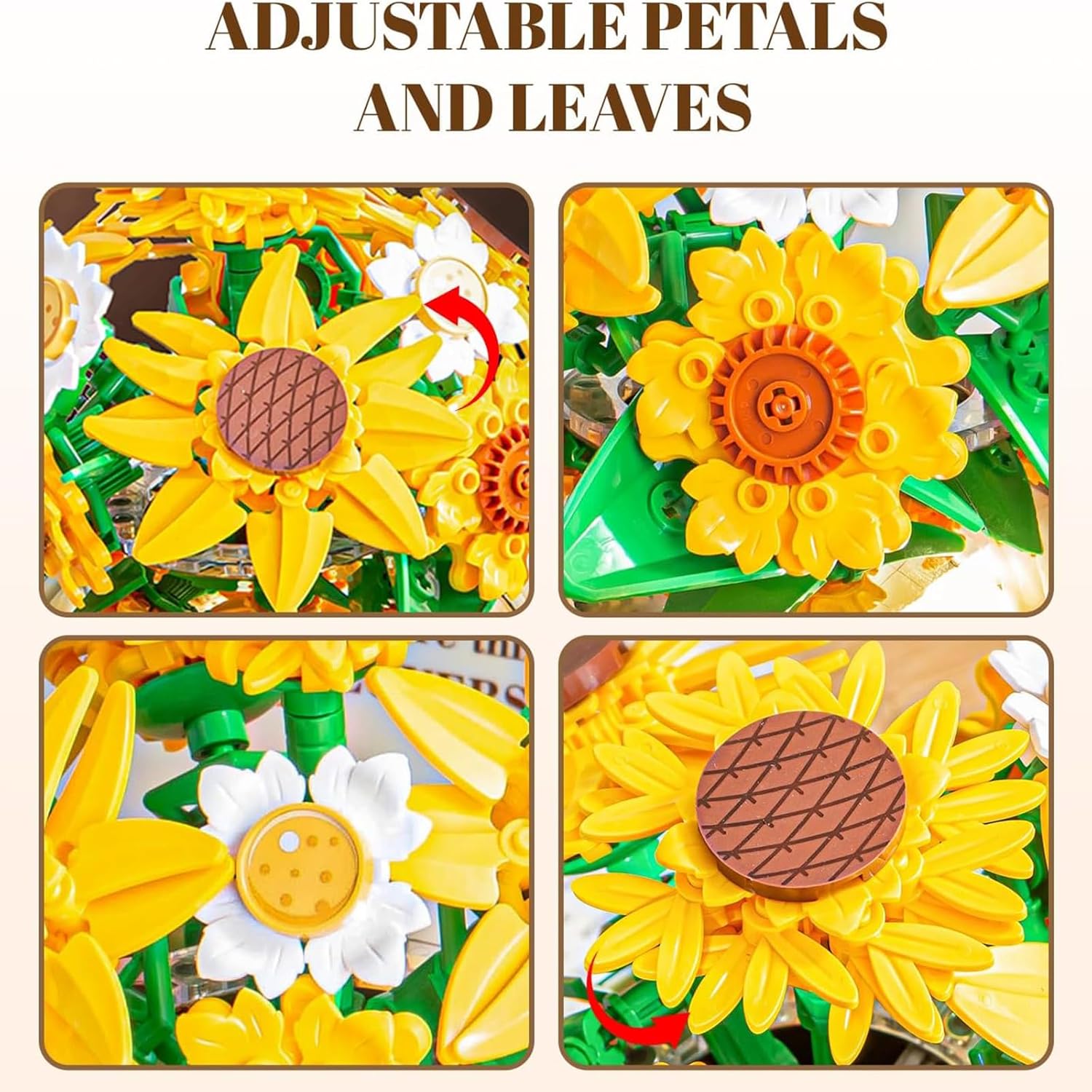 🌻Crea bouquet unici: il set da costruzione girasole contiene quattro tipi di girasoli e margherite e combina arte e innovazione. È un regalo ideale o un'aggiunta preziosa per qualsiasi collezionista di piante. 🌼Costruisci senza preoccupazioni con 632 parti e parti aggiuntive, quindi non mancano elementi costitutivi importanti. Le istruzioni facili da capire, dettagliate e colorate con immagini precise passo dopo passo garantiscono una costruzione senza stress. 🎁Graziosa opzione decorativa: illumina qualsiasi stanza con fiori artificiali eterni. Questi fiori di facile manutenzione sono forniti in una confezione dal design elegante e sono perfetti come regalo o come decorazione per la tua casa. 👧Migliora il tempo di gioco di tua figlia con questo kit per costruire fiori in vaso d'oro splendidamente realizzato. Età adatta per ragazze dagli 8 anni in su. 👪Un commovente progetto familiare: dedica 1-2 ore alla creazione di fiori artificiali con i tuoi cari. Trasforma questa esperienza in un ricordo prezioso, rafforza i legami familiari e crea qualcosa di bello insieme.