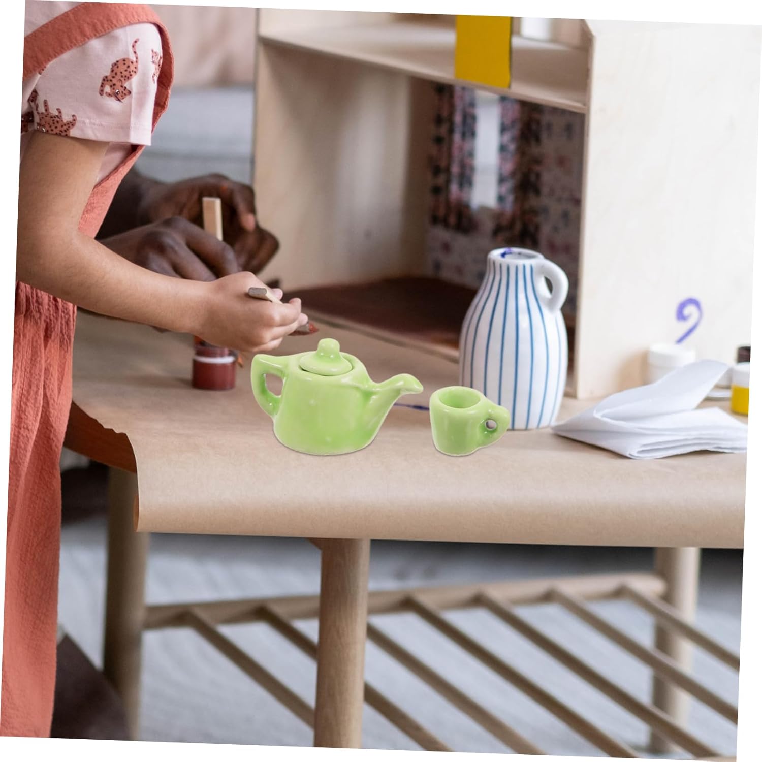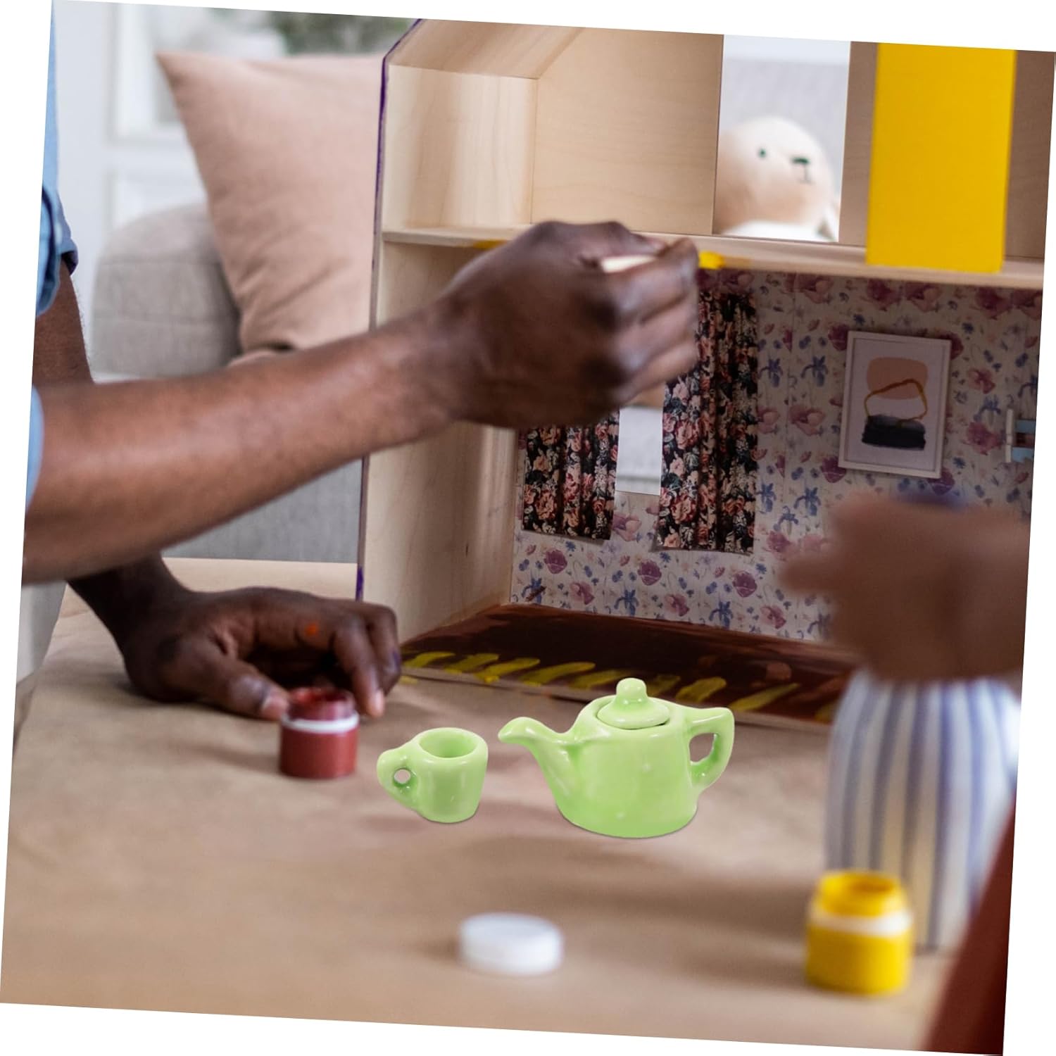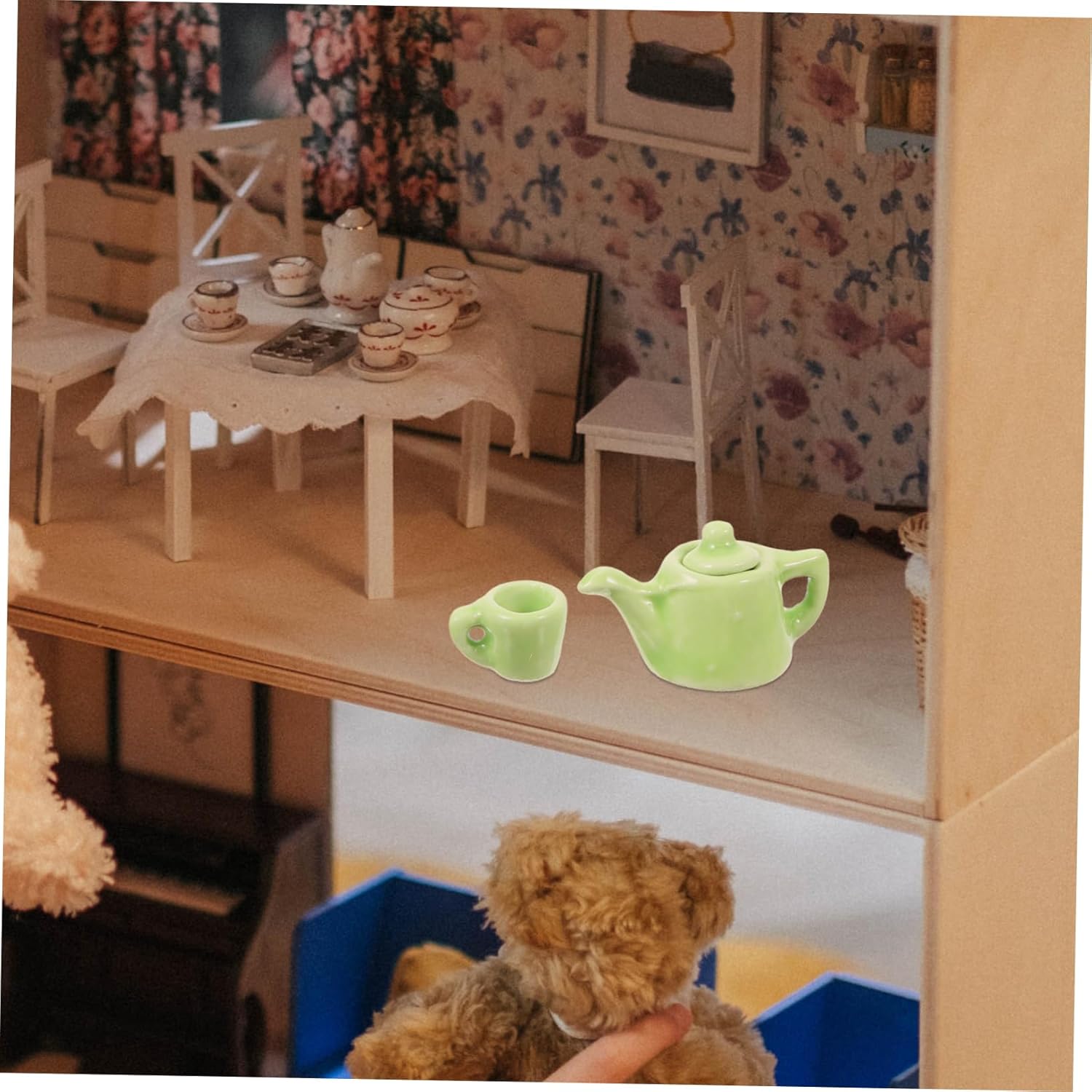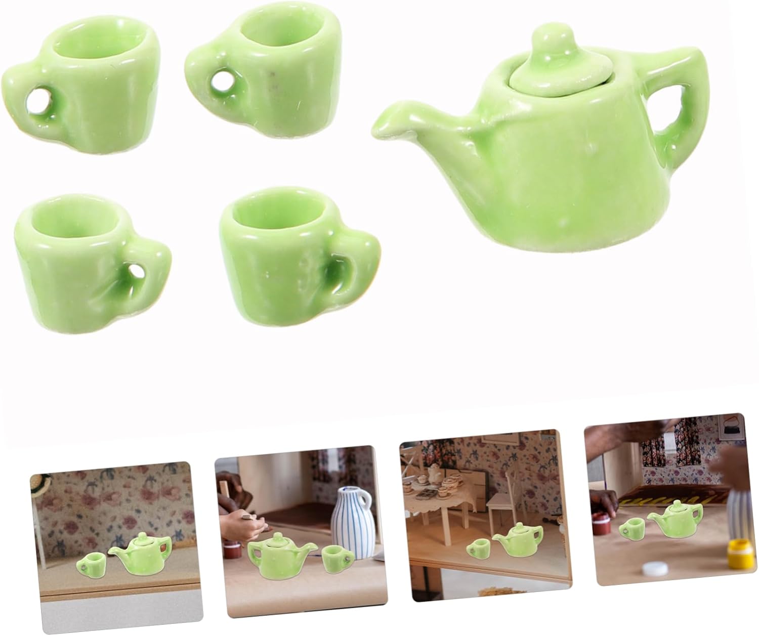 Accessori da cucina in miniatura: questi accessori per la casa in miniatura sono un'ottima scelta per l'intrattenimento, possono essere posizionati nella decorazione della cucina della casa in miniatura, utensili in miniatura Accessori per giochi di finzione: set da tè in ceramica in miniatura, che fornisce un'ampia quantità di tazze da tè in miniatura, adatte per più bambole, oggetti in miniatura Gioco di finzione in cucina: il set da tè in miniatura può essere utilizzato per compleanni, feste o altre occasioni speciali, mini tazze da tè Miniature di oggetti di scena per il soggiorno: set da tè in miniatura, graziosi accessori fai da te per la casa in miniatura per coltivare abilità pratiche e immaginazione, teiera in ceramica in miniatura Tazze in miniatura: set di teiere in miniatura e tazze da tè in miniatura, design realistico con alto grado di simulazione, miniature per l'artigianato