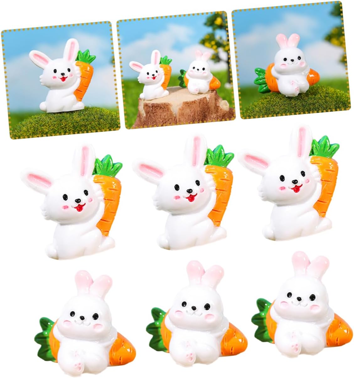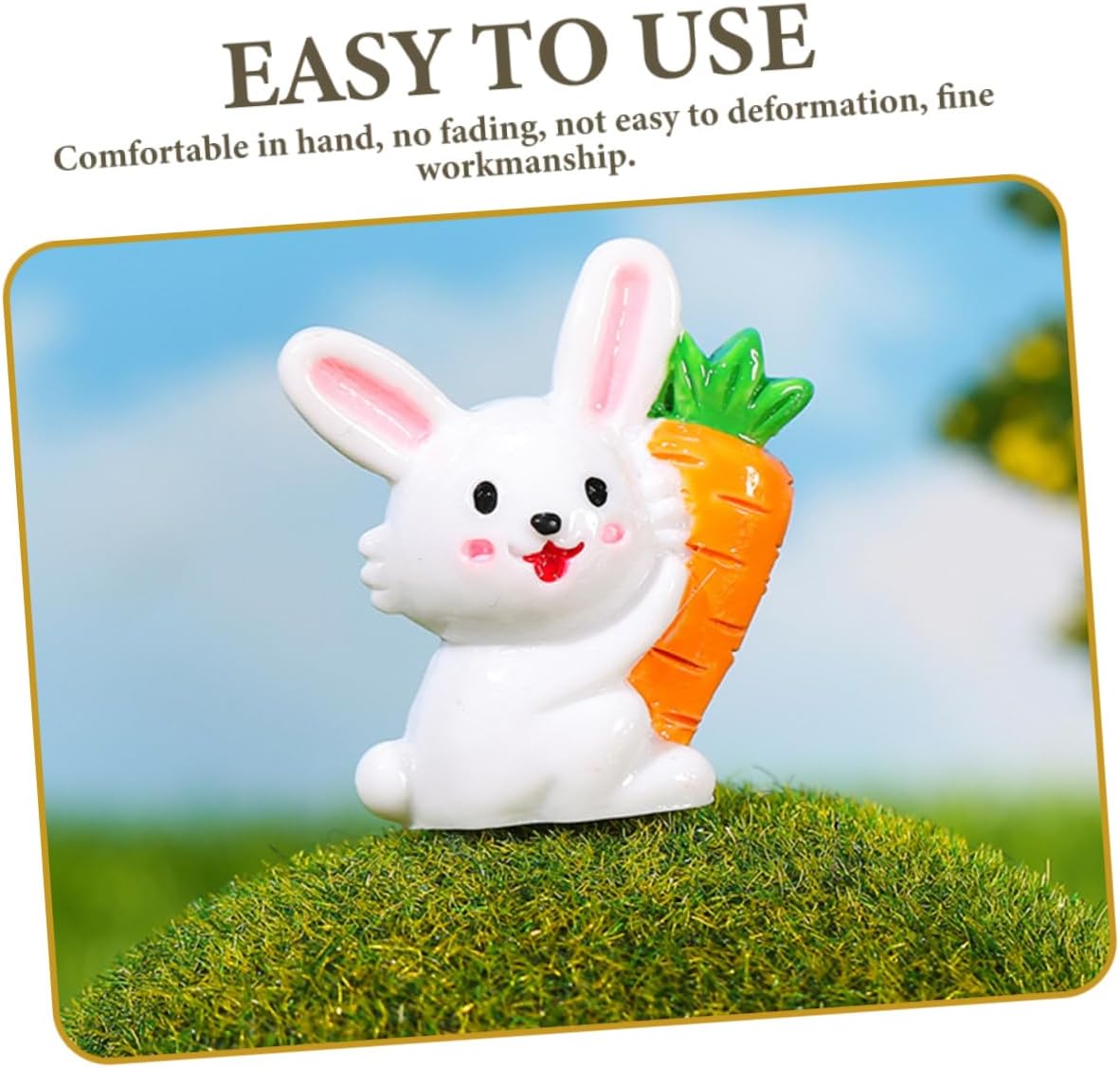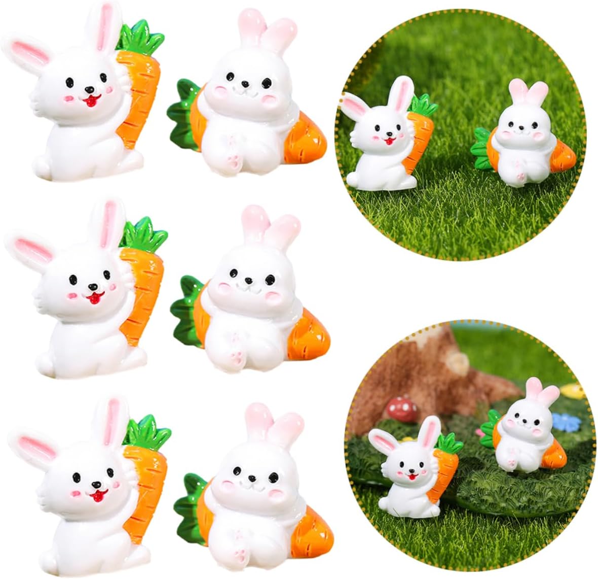 Decorazioni pasquali: questa decorazione paesaggistica può resistere a varie condizioni atmosferiche all'aperto, è facile rendere il giardino un mondo meraviglioso, arredamento da giardino Arredamento della statua di coniglio: comodo in mano, non sbiadisce, non facile da deformare, pregevole fattura, dimensioni compatte, non occupa troppo spazio, ornamento del coniglietto Mini figurine di coniglietto: la squisita fattura delle decorazioni in resina da giardino conferisce un aspetto vivido e aiuta a creare un'atmosfera e naturale, statua del coniglietto Piccoli animali in resina: l'ornamento in resina con paesaggio in miniatura è una fantastica famiglia o amici che amano i micro paesaggi, ottimo per la decorazione, statuetta mini coniglietto Piccole statuette di coniglietto: design di coniglietto di cartone animato con decorazioni di carote, questa adorabile statua di coniglietto è un buon accessorio decorativo, pratico e facile da usare, decorazioni di coniglio