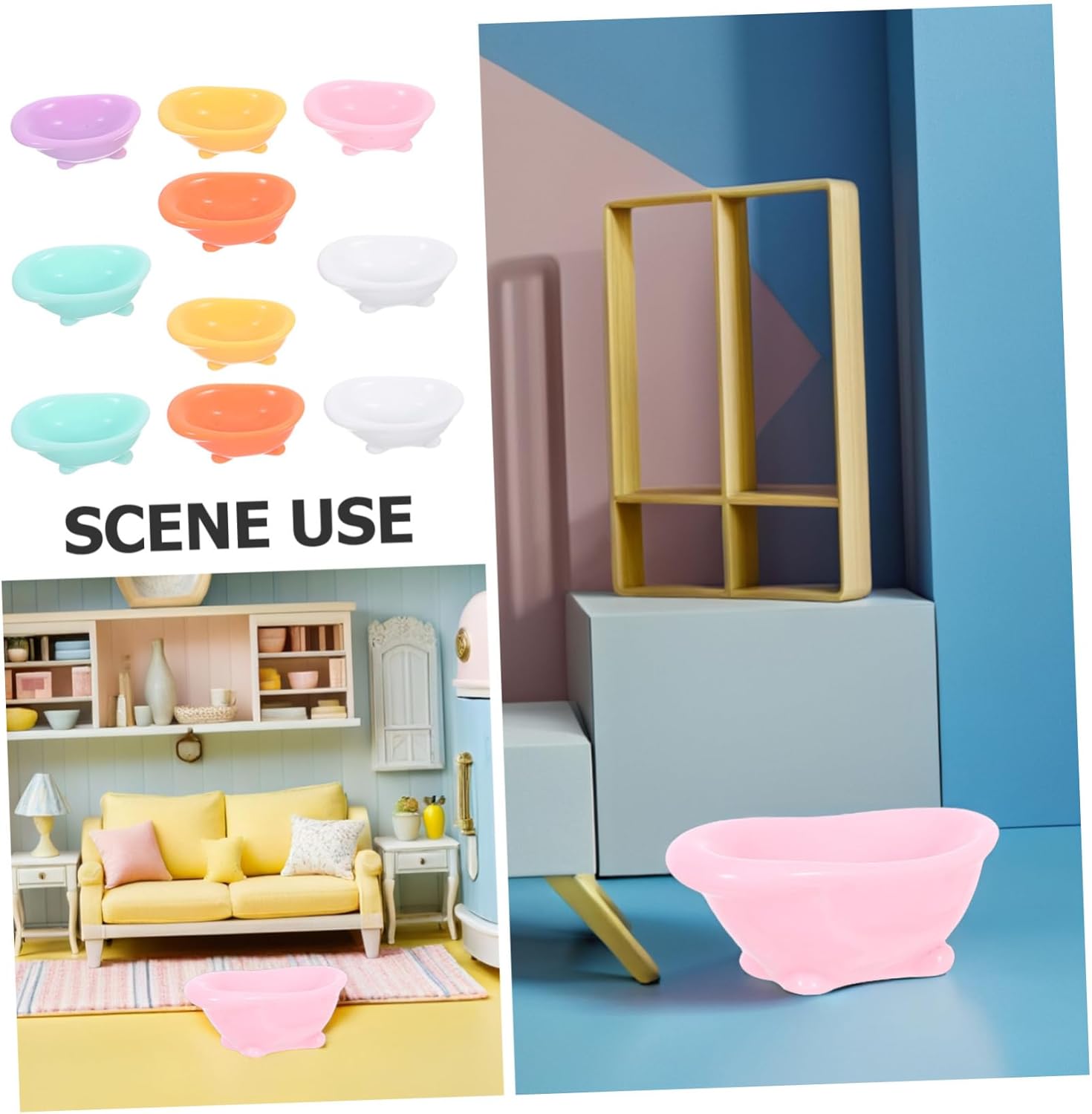 Decorazione della vasca da bagno in miniatura: artigianato eccellente, curato in ogni dettaglio per conferire a questo mini modello un aspetto chic e realistico, vasca da bagno in miniatura. Arredamento del bagno della casa delle bambole: accessorio decorativo della casa in miniatura con cui giocare, adatto alla maggior degli stili di casa delle bambole, vasca da bagno con doccia della casa delle bambole. Accessori per la casa delle bambole: minuscola statuetta a forma di vasca da bagno, cartone animato e adorabile, un ottimo accessorio decorativo per l'arredamento del prato, modello mini vasca in resina. Piccola vasca da bagno: e attraente, può decorare meglio la tua piccola casa e aggiungere interesse alle attività, all'arredamento del bagno. Decorazioni paesaggistiche fai da te: una fantastica e mini decorazione per la casa per gli amanti del fai da te e i mini collezionisti di mobili, modello di vasca da bagno in miniatura.