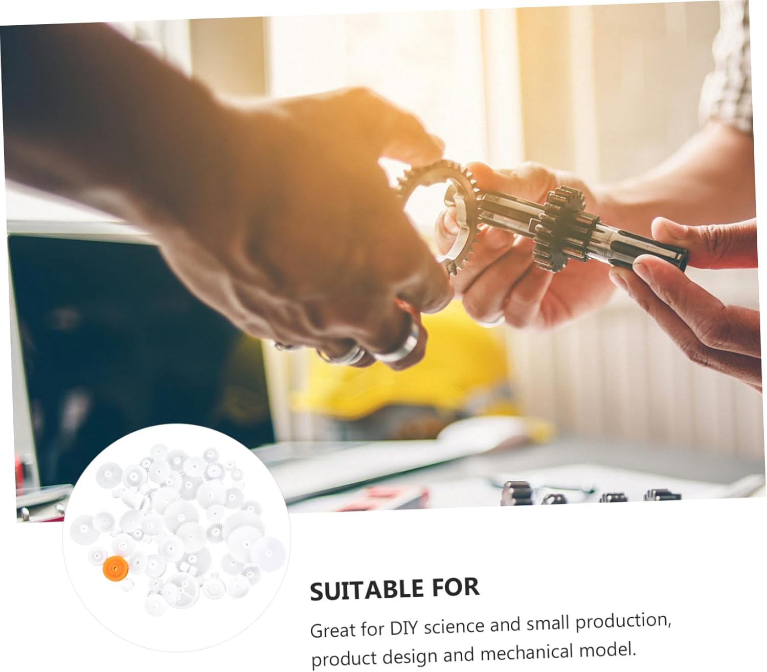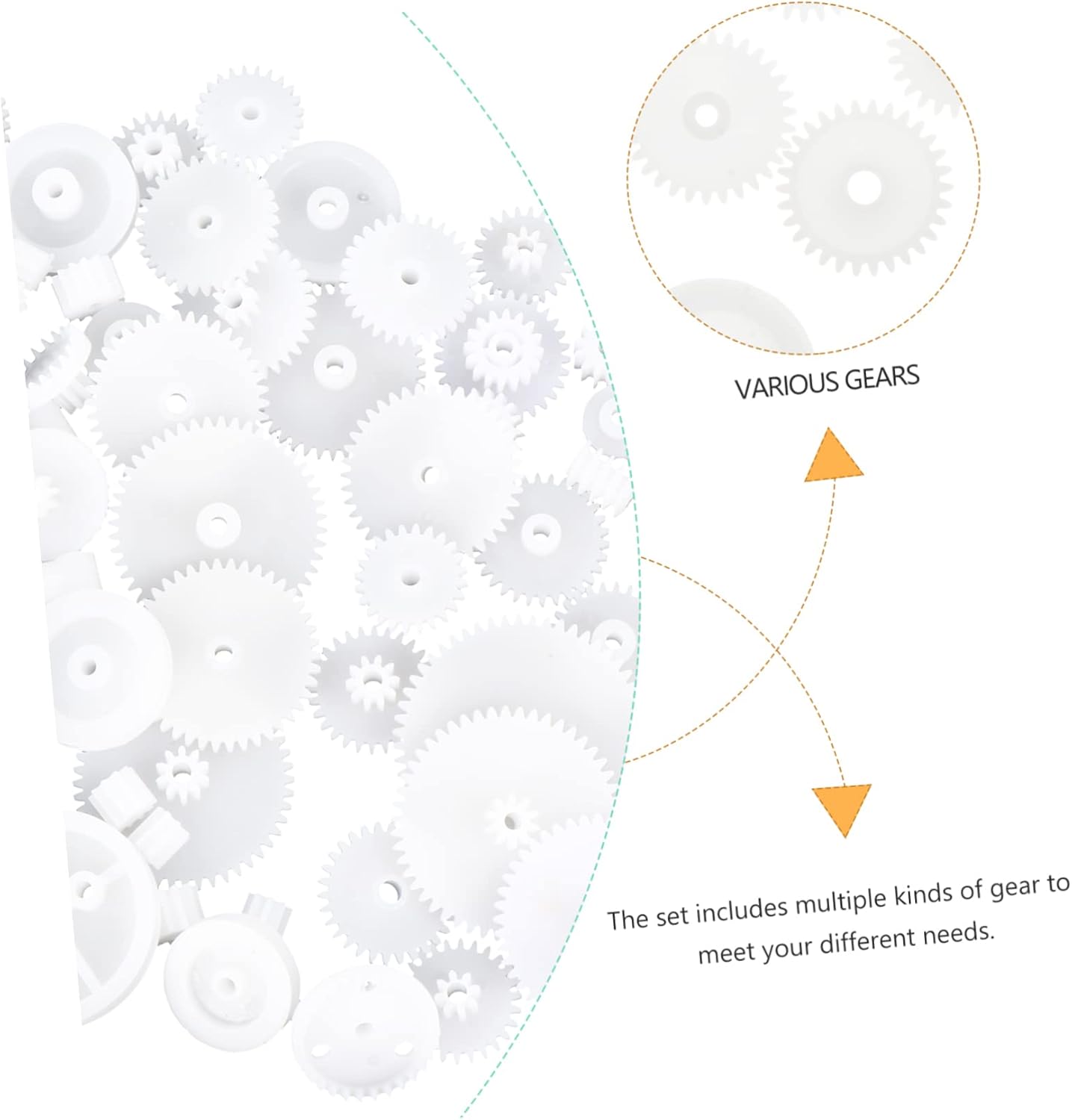 Doppio ingranaggio per robot: questo è il set di ingranaggi più completo, comprende 64 tipi di parti di ingranaggi. può soddisfare le tue esigenze fai te. Cinghia della puleggia: pregevole fattura e aspetto creativo ne garantiscono popolarità e praticità. Ingranaggio singolo: questo kit comprende ingranaggio mandrino, ingranaggio, ingranaggio singolo, doppio ingranaggio, puleggia e vite senza fine. Giocattoli per auto: questi 64 tipi di ingranaggi in plastica sono anche un buon sostituto di parti vecchie o rotte. Singolo doppio riduttore: il set è realizzato in materiale plastico di qualità e ha un diametro .