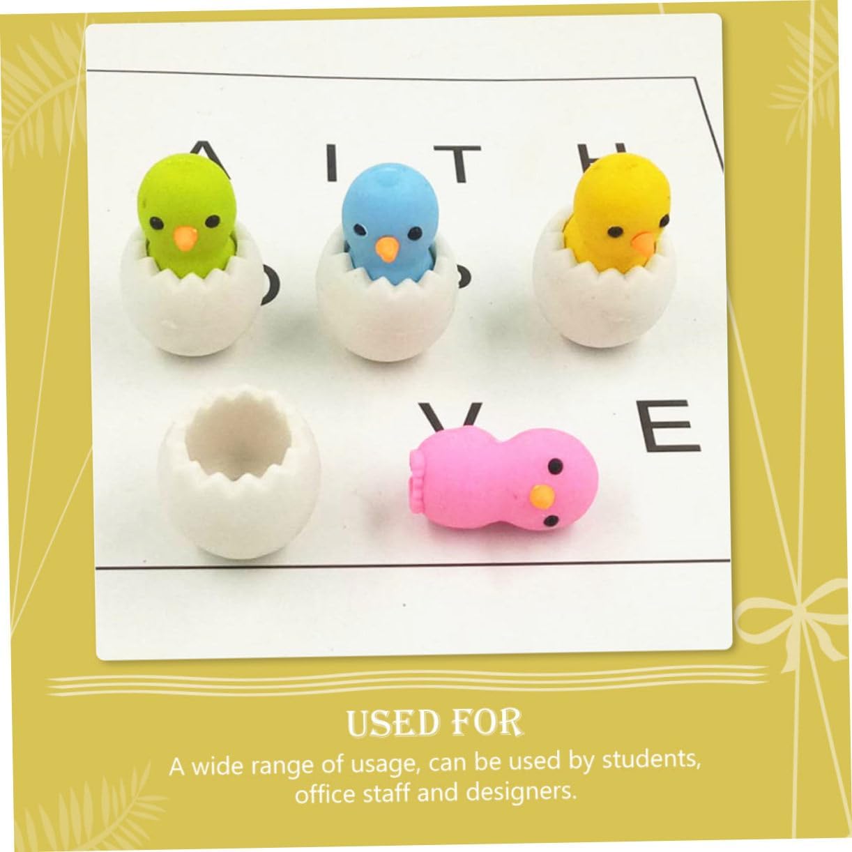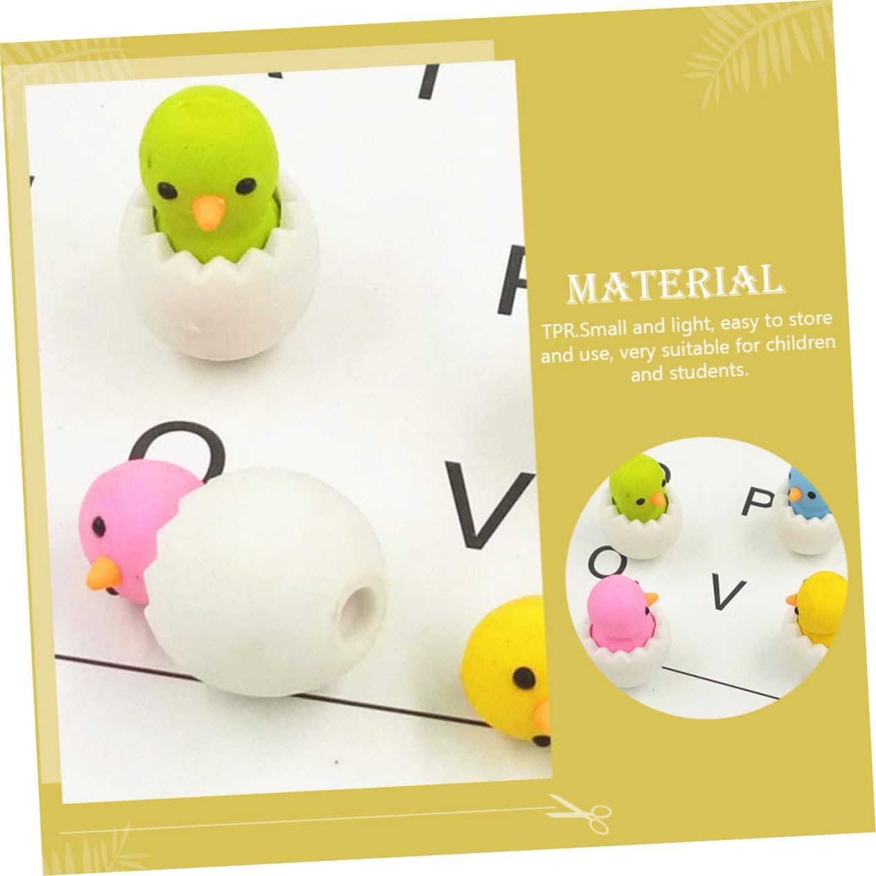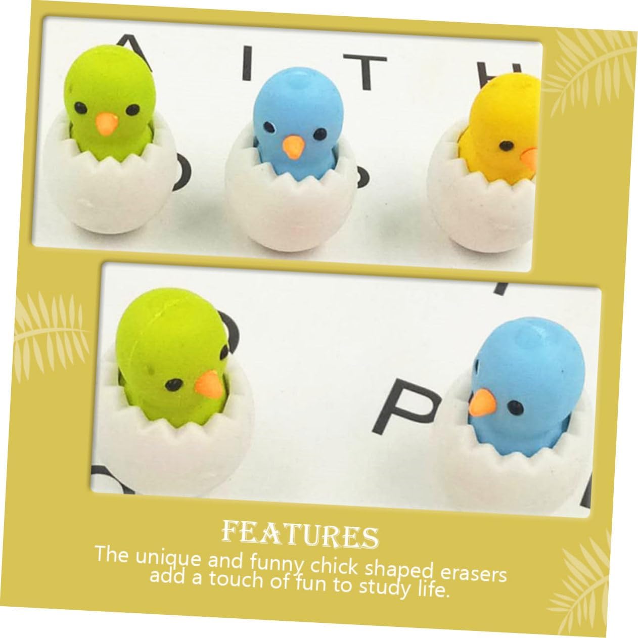 Gomma da cancellare a forma di cartone animato: la forma creativa e interessante del pulcino la rende una gomma adorabile e adatta agli studenti Gomme per -- con design a forma di pulcino, creative e adorabili, possono attrarre molti premi per la classe Adorabili articoli scolastici: il prodotto può svolgere la funzione di rimuovere segni sbagliati, gomme a forma di animali Gomma per matita: le forme dei pulcini e la decorazione a guscio d'uovo rendono la gomma una gomma decorativa per pasqua Gomme decorative: ti piacerà smontarle per giocare, ed è anche una gradita collezione di gomme, gomma