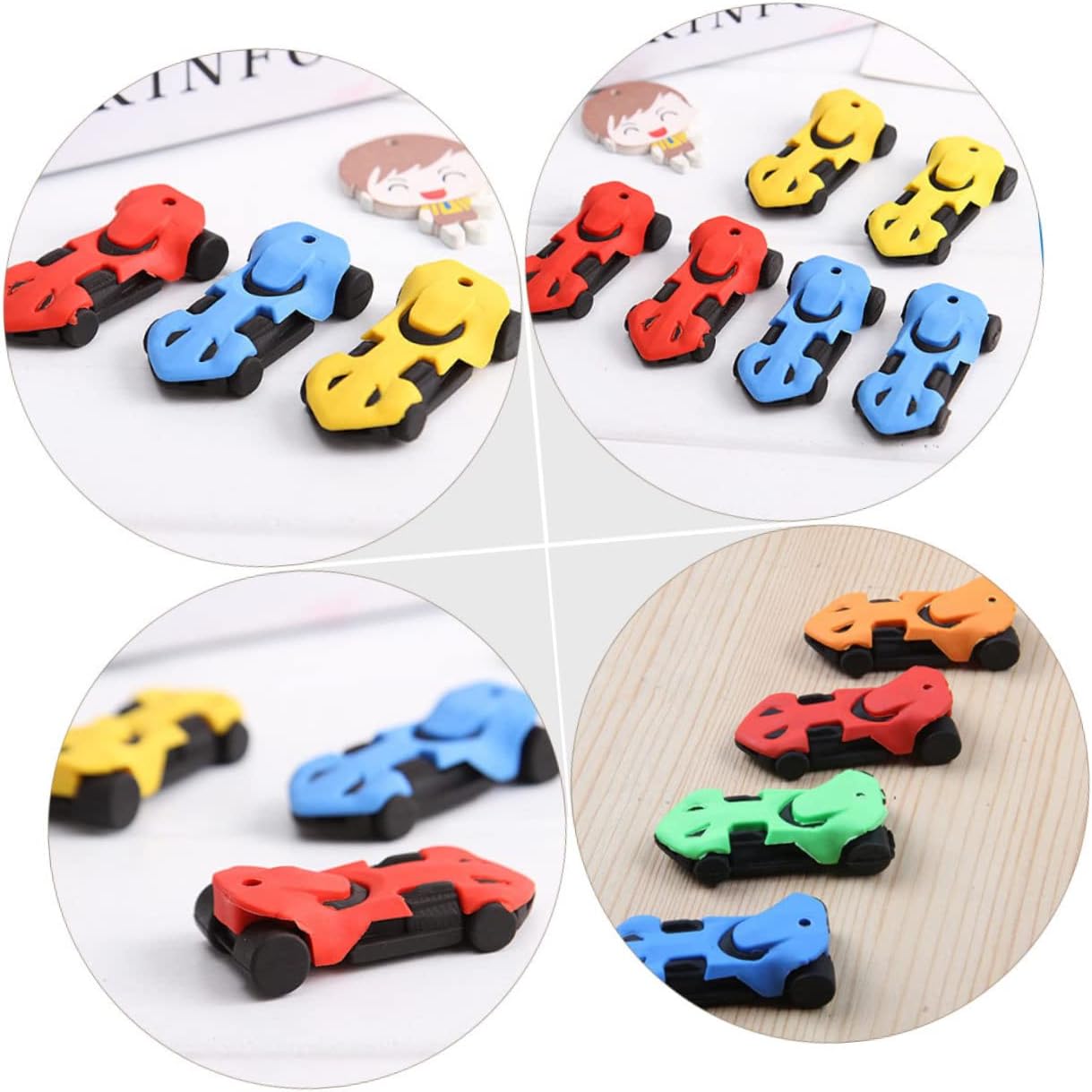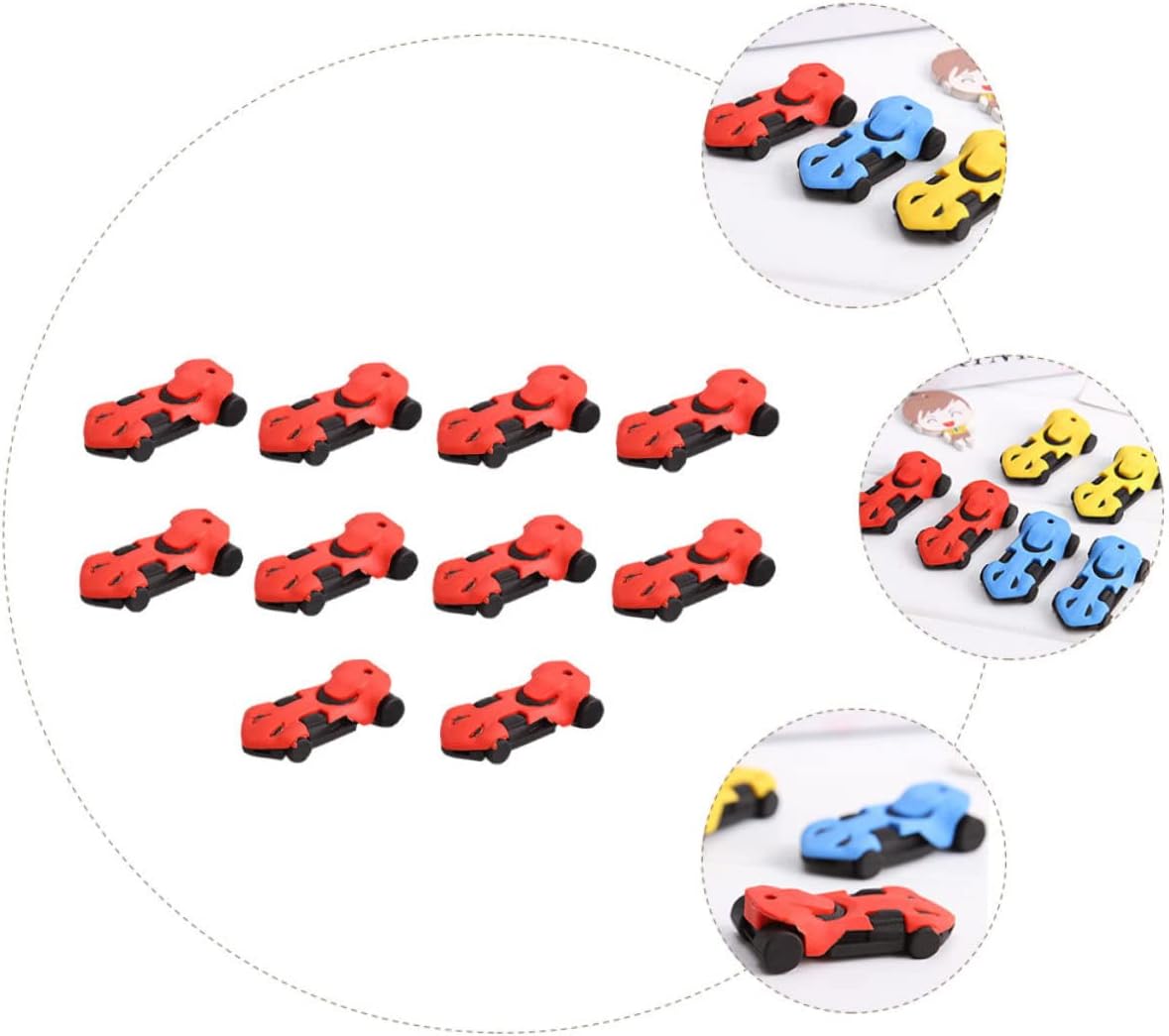 Mini gomme da cancellare natalizie: il design creativo e le dimensioni ridotte le rendono adatte ai bambini. Giocattoli per bambini: piccoli e leggeri, facili da riporre e utilizzare, molto adatti a bambini e studenti. Giocattoli per auto: queste gomme possono essere utilizzate anche come ornamento per svolgere un ruolo decorativo nella cancelleria. Matite per bambini: i bambini adoreranno usarle per fare i compiti ed è anche una gradita collezione di gomme da cancellare. Mini gomme per auto da corsa: con un design a forma di auto da corsa, creative e adorabili, possono attirare molto i bambini.