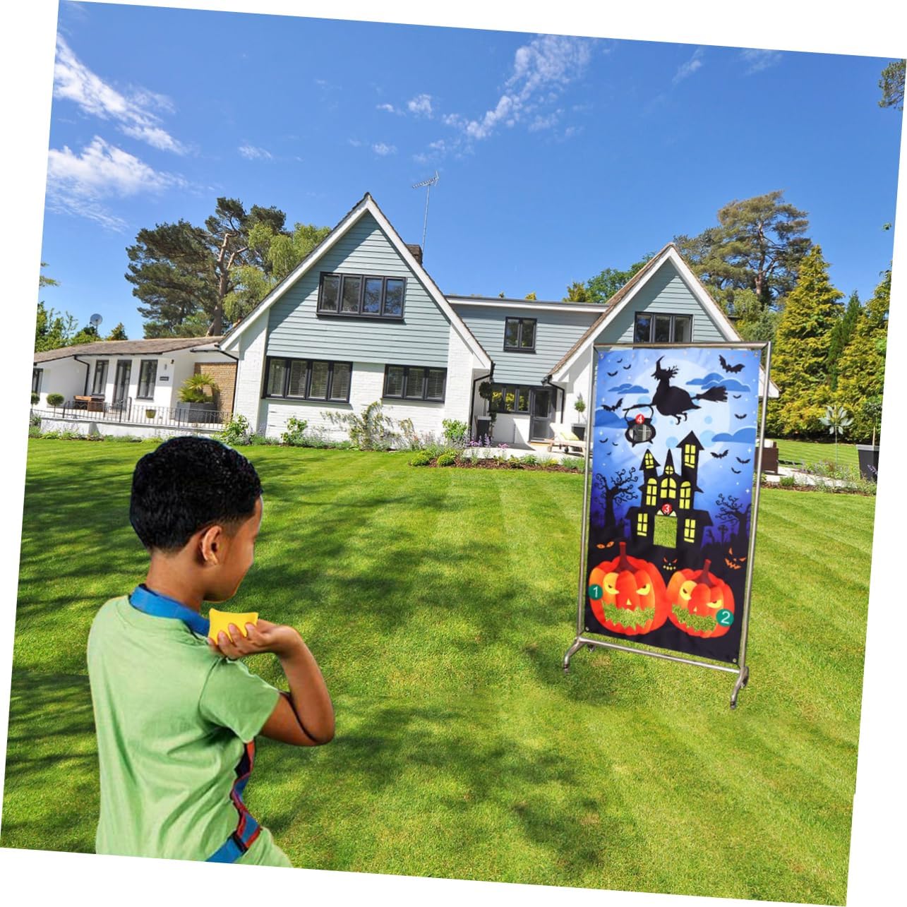 Lancio di sacchi di sabbia con bandiera: una scelta come per i vostri o familiari per giocare e divertirsi all'aperto accessori per attività divertenti Striscione per giochi di lancio di halloween: portatile, facile da riporre e trasportare, può essere portato ovunque, accessori per attività all'aperto Banner per giochi di lancio di sacchi di sabbia di halloween: realizzato in tessuto, è durevole e, bandiera per giochi di lancio di sacchi di sabbia Bandiera per giochi con sacchi di sabbia di halloween: il materiale in tessuto non rompe facilmente e, bandiera portatile per giochi con sacchi di sabbia Bandiera di gioco divertente personalizzata: il motivo con zucca arrabbiata e fantasma è attraente per e adulti, striscione di giochi di lancio