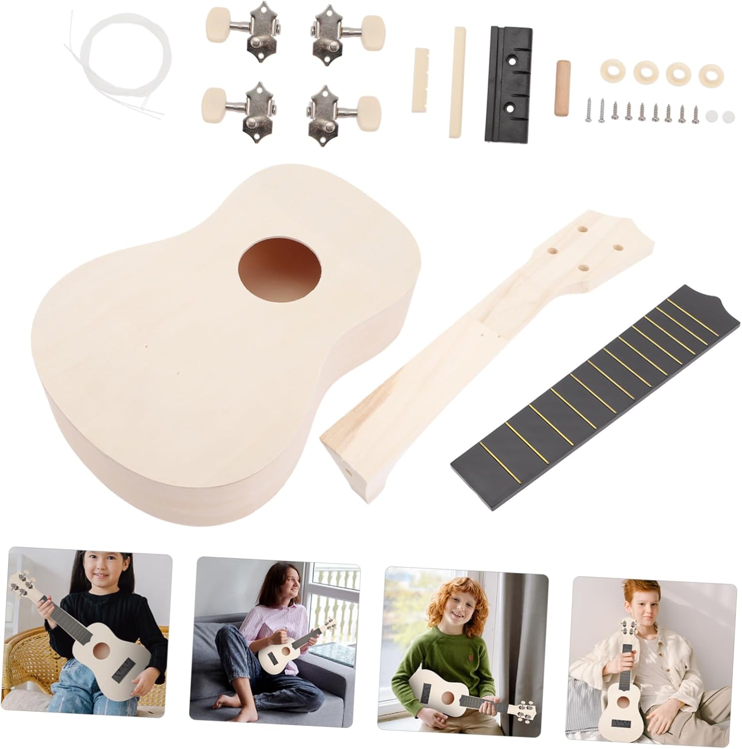 Crea il tuo kit per ukulele: costruisci la tua chitarra hawaiana, fai a mano un ukulele speciale, come dolce da condividere con bambini, amici e familiari, accessori artigianali fai da te Materiali per ukulele fai da te: realizzati con materiale di legno di qualità, sono robusti e sicuri per l'uso, kit per ukulele fatto a mano Kit per realizzare ukulele fai da te: scegli materiali in tiglio di qualità, che lo rendono leggero, sicuro e indossabile, kit di strumenti fai da te Pratico kit per ukulele fai da te: puoi questo delicato e pratico kit per ukulele fai da te presso un kit di montaggio per ukulele fai da te Kit ukulele fai da te per bambini: può essere usato come giocattolo educativo per i tuoi bambini, per coltivare le loro abilità manuali, kit per costruire ukulele