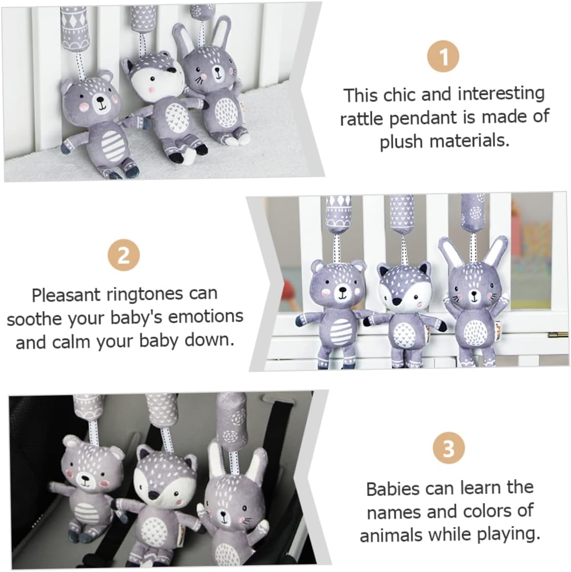 Giocattoli per auto per bambini 6 a 12 mesi: i ganci ad anello con clip a c sono facili appendere, che tratti di un passeggino, di un seggiolino per auto, di un lettino o di una culla. Giocattoli per bambini cartoni animati - giocattoli per l'educazione precoce: questo giocattolo mobile può aiutare i bambini a concentrarsi, monitorare e sviluppare il loro senso di educazione e allo stesso tempo aumentare il divertimento genitori e bambini che giocano. Sonaglio afferrare per bambini: il design creativo dell'aspetto cartoni animati è unico e interessante, che può attirare l'attenzione del bambino e aiutare ad alleviare le emozioni del bambino. Giocattolo per passeggino: i bambini possono imparare i nomi e i degli animali mentre giocano. Giocattolo per culla per neonati--: questo carillon a di peluche è realizzato con materiali sicuri e non tossici, comodi e morbidi, sicuri e salutari per il bambino, aiuta ad alleviare il pianto del bambino e sarà un buon del bambino.