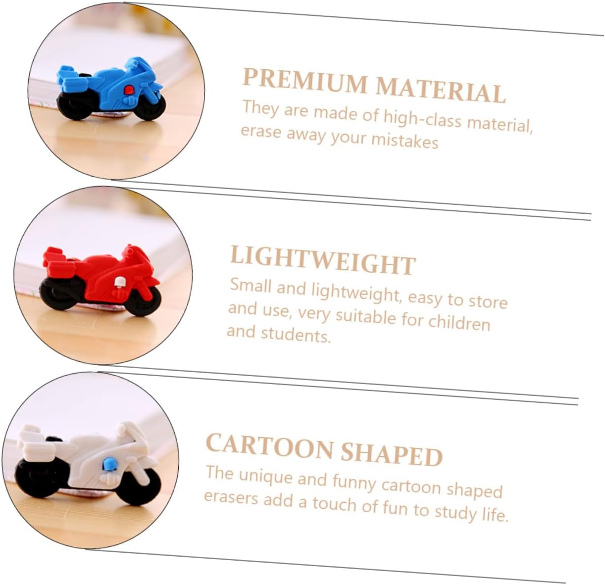 Studenti: progettate con forme uniche, queste gomme sono adatte per essere utilizzate come premi per attività e studenti, gomme per studiare Gomme per scrivere per studenti: gli studenti possono usarle a lungo termine, rendendole comode per cancellare gli errori, risparmiando tempo e fatica, gomme per Gomme adorabili: il prodotto è realizzato meticolosamente e il non sbiadisce facilmente durante l'uso, mini gomme per piccoli Gomme per piccoli: scegli un materiale sicuro per non ferire le dei e puoi usarle con sicurezza, gomme per Cancelleria per studenti: queste graziose gomme sagomate sono portatili e leggere, facili da trasportare, gomme a forma di motocicletta