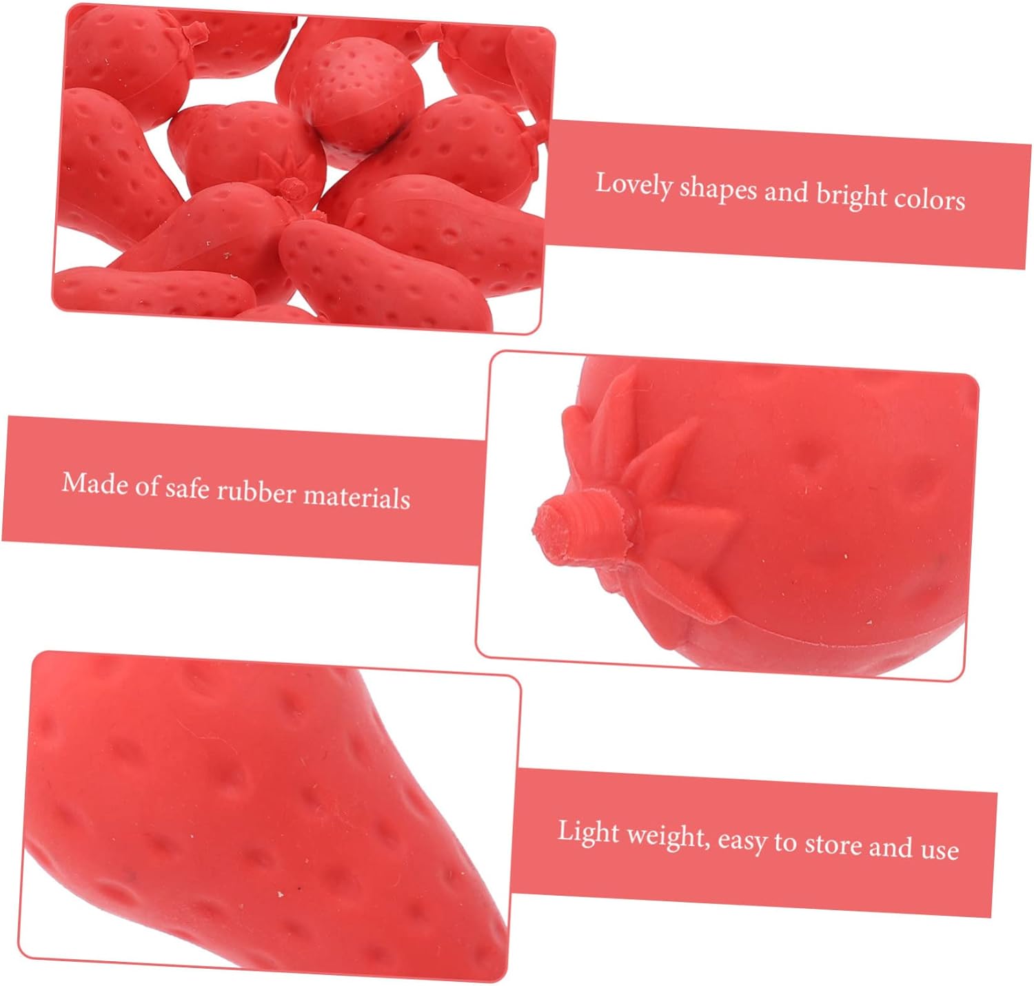 Gomme da cancellare creative: puoi regalarle a scuola i tuoi bambini piccoli, dare loro una piccola sorpresa, gomme da cancellare divertenti per bambini Gomme per fragole: realizzate con materiali in gomma sicuri, i bambini possono usarle con sicurezza e anche i genitori possono stare tranquilli, gomme per studenti Gomme da cancellare per bambini: queste gomme da cancellare sono adatte per essere utilizzate come ricompensa per i compiti o come bomboniera per le feste dei bambini, gomme da cancellare di grandi dimensioni Gomme da cancellare sfuse: le nostre gomme sono per premi in classe, natale, riempitivi per calze, feste scolastiche o di compleanno, piccoli premi per bambini come premi Bomboniere per bambini: gomme da cancellare sufficienti con un design dalla forma creativa potrebbero soddisfare le tue esigenze di utilizzo quotidiano, gomme da cancellare per bambini sfuse