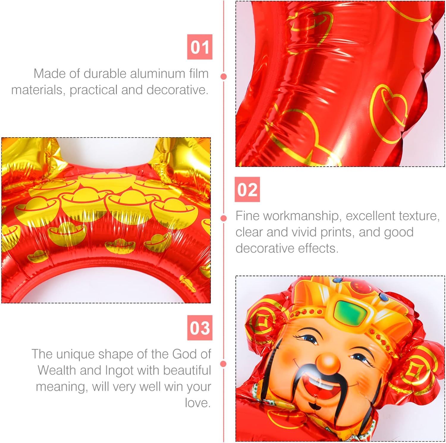 Palloncini per feste di capodanno: piccoli e pratici, creativi e interessanti, possono essere usati come piccoli oggetti per i tuoi amici o per le feste Forniture per feste di capodanno: palloncini decorativi festivi e unici saranno la tua buona decorazione per feste di capodanno, forniture di palloncini di capodanno Palloncini creativi: meravigliosamente creativi e versatili, possono essere utilizzati come decorazioni per feste, oggetti fotografici, ecc., palloncini decorativi per capodanno Palloncini a tema ricchezza per il anno: l'aspetto adotta lo yuanbao cinese e il della ricchezza, che sono simboli della ricchezza cinese, per esprimere le tue buone aspettative per il anno, ornamenti con palloncini Decorazioni per festival--la lavorazione artigianale del palloncino è buona, la consistenza è buona, il è brillante e non sbiadisce facilmente,forniture per il anno
