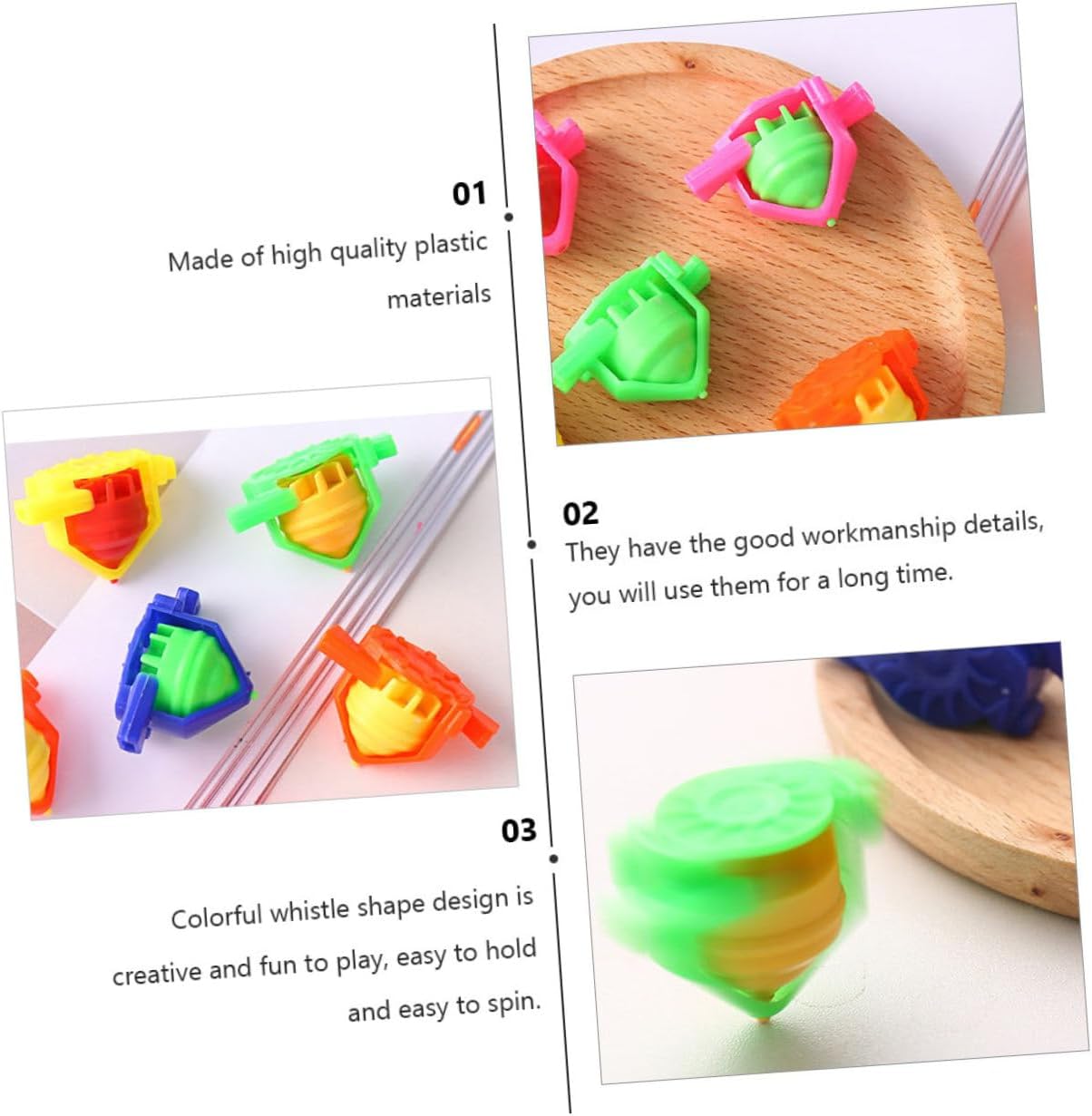 Peg-top creativo: giri facili e duraturi, tantissimo divertimento, fantastico per bomboniere, riempitivi per borse regalo, omaggi. Peg-top per bambini: realizzato in materiale plastico di alta qualità, sicuro e facile da giocare. Divertimento -top: questo giocattolo può esercitare la capacità di coordinazione delle dita e degli occhi del bambino. Divertente peg-top: il design colorato a forma di fischietto è creativo e divertente da giocare, facile da tenere e facile da . Piccolo picchetto: hanno i dettagli di buona fattura, li userai per molto tempo.