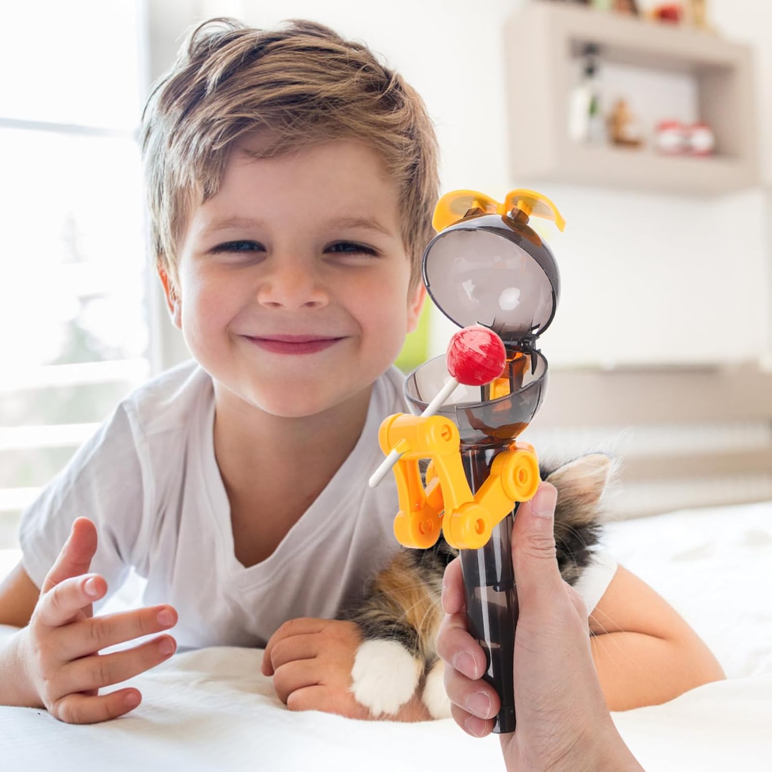 PORTA LECCA LECCA DI NATALE: questo porta lecca lecca di Natale offre ai bambini una nuova esperienza di consumo di caramelle con la sua creatività unica e l'aspetto carino DIVERTIMENTO INTERATTIVO: I BAMBINI POSSONO RACCOGLIERE E POSARE I LECCA-lecca azionando le braccia del robot, aumentando il divertimento interattivo mentre esercitano la coordinazione occhio-mano SICURO E AFFIDABILE: IL LECCA-lecca pop-up utilizza materiali sicuri per garantire la sicurezza dei bambini durante l'uso e i genitori sono più sicuri DIVERTIMENTO INNOVATIVO: LA MACCHINA PER LECCA-lecca non è solo un contenitore per lecca-lecca, questo robot dinosauro ha anche una funzione di trucco, che può portare sorprese ai bambini e diventare il momento clou della festa ATMOSFERA FESTOSA: IL ROBOT LECCA-lecca dinosauro è una decorazione ideale per feste e feste di compleanno, aggiungendo un'atmosfera festosa