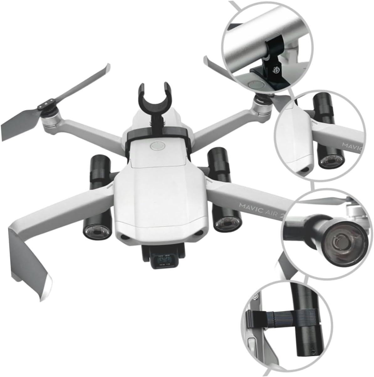 Supporto per fotocamera: di dimensioni compatte, facile da riporre e trasportare, batteria a secco per torcia; Staffa per torcia drone: design pieghevole, comodo spazio di archiviazione e facile da installare. Staffa per luce notturna: design semplice, colore brillante e più elegante. Supporto per torcia per drone: facile e comodo da installare e rimuovere. Staffa per torcia per drone: i rack di montaggio della torcia su entrambi i lati possono supportare torce con un diametro di 18- mm