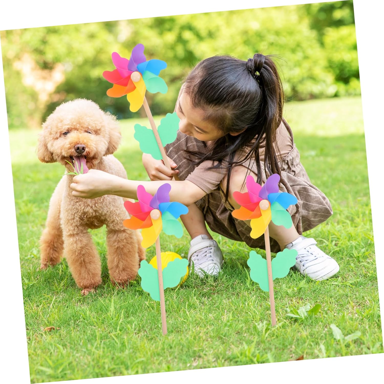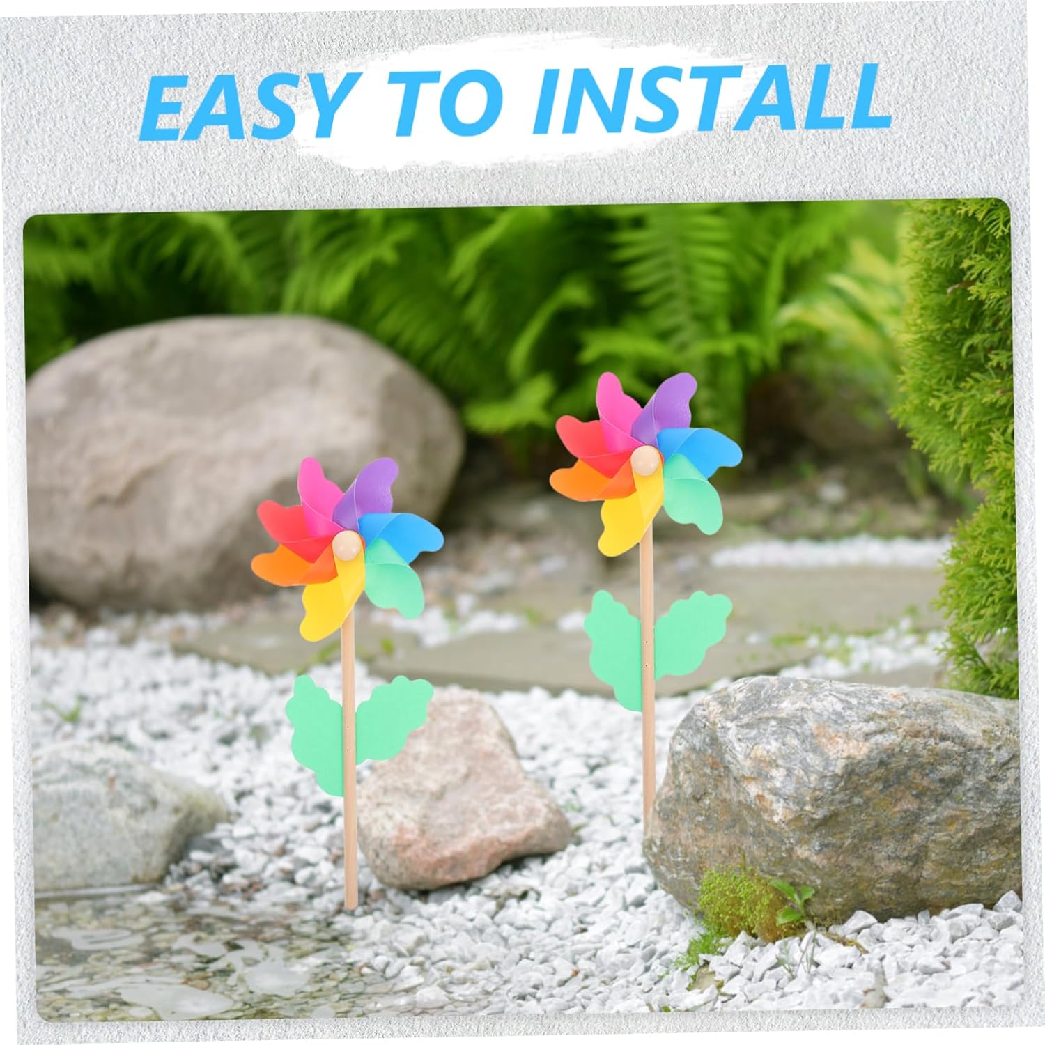 Giocattolo per mulino a vento da esterno: può essere fissato nell'erba o in cortile per aggiungere un tocco di bel colore all'ambiente, mulino a vento paesaggistico per la decorazione del giardino del mulino a vento all'aperto: la girandola colorata ruota nel vento, portando divertimento e gioia alla decorazione del tuo giardino e all'artigianato del mulino a vento. Decorazione del mulino a vento per prato: la girandola arcobaleno è fantastica per te e i tuoi amici per portarti il buon umore e anche renderti più impressionante, decorazione del mulino a vento per i giocattoli del mulino a vento all'aperto per bambini: il mulino a vento da giardino è fatto di plastica e non facile da rompere e strappare. Mini giocattolo del mulino a vento: muscoli addominali e materiale in legno, poiché l'asta del mulino a vento da giardino è più forte e non facile da rompere, decorazione del mulino a vento da giardino