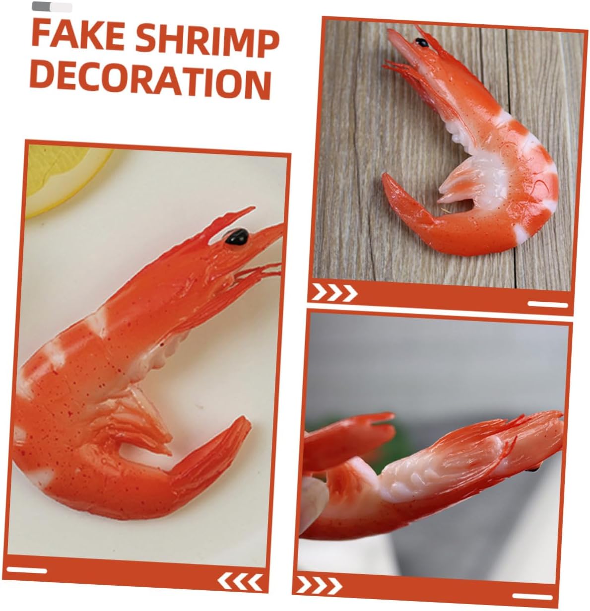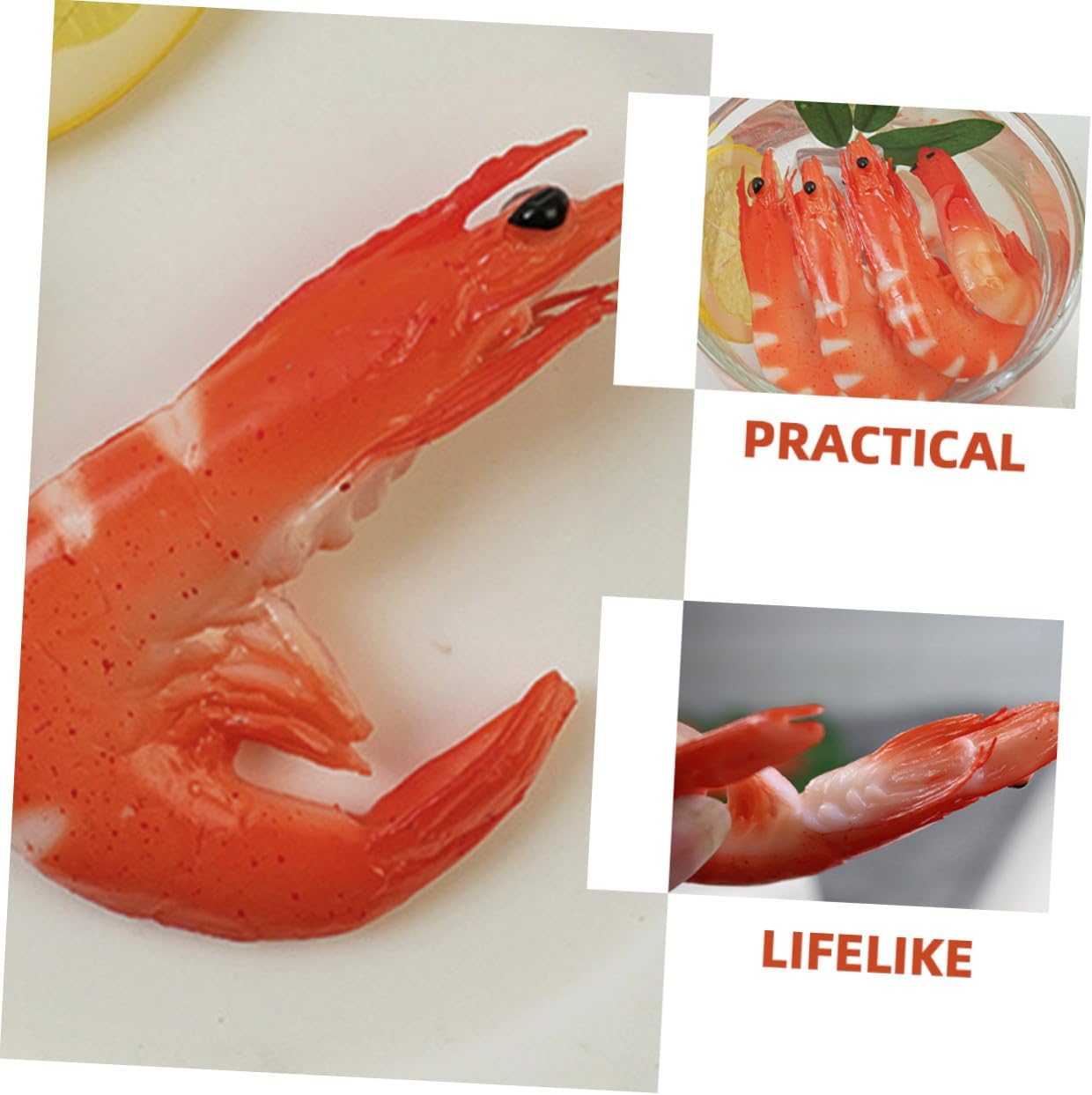Gamberetti di plastica realistici: i gamberetti simulati sono un perfetto oggetto di scena per scattare foto al posto dei veri gamberetti, di gamberetto simulato Cibo realistico: questo gambero è molto dettagliato, dall'aspetto realistico, può essere usato come ornamento da scrivania o come oggetto di scena per scherzi, come oggetto di scena per feste Gamberetti artificiali: questo cibo finto da esposizione può essere applicato in molti , puoi aggiungere creatività e idee con un'immaginazione infinita, decorazione di gamberetti Di cibo artificiale: lavorazione, struttura ragionevole, professionale e pratica, può offrirti comodità, di cibo simulato Cibo finto per arredamento: non facile da indossare o strappare, l'ornamento di gamberetti artificiali non sbiadirà né si deformerà a lungo, di gamberetti alimentari simulati