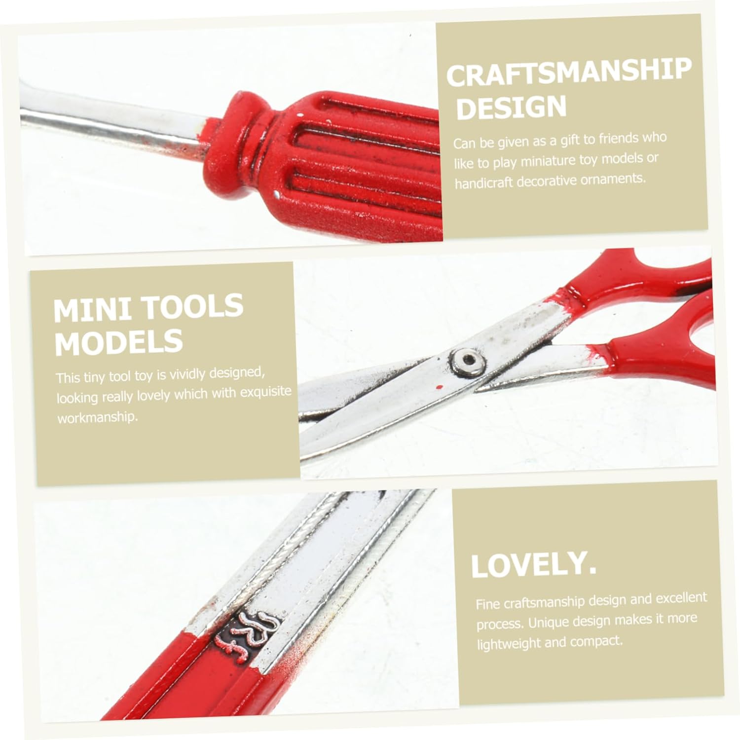 Strumenti domestici in miniatura: con un design ragionevole e un aspetto vivido, i mini strumenti possono essere ben decorati in mini casa. Piccoli strumenti di riparazione: strumenti di riparazione in miniatura realistici ad alta riduzione danno pieno gioco all'immaginazione e alla creatività del piccolo. Mini strumento di manutenzione: ben realizzato con materiali stabili e robusti, sicuro e pratico per un tempo di utilizzo duraturo. Strumenti per case delle bambole in miniatura: semplici e facili da usare, puoi decorare facilmente la tua mini casa e renderti più divertente. Figurine di mobili in miniatura: viene fornita con dimensioni compatte, senza occupare troppo spazio. adatto per casa in miniatura.