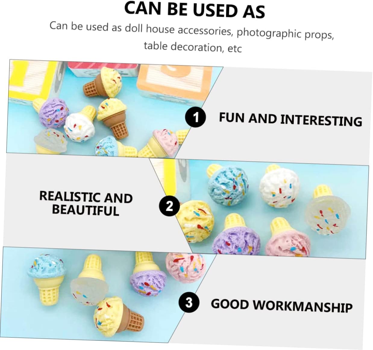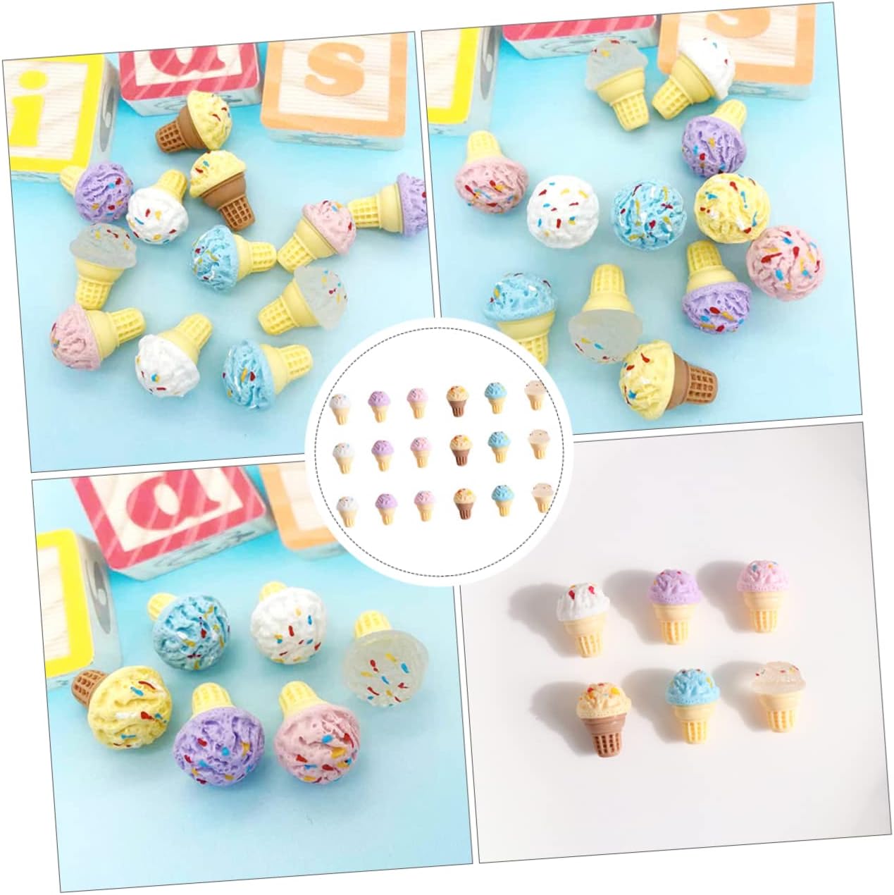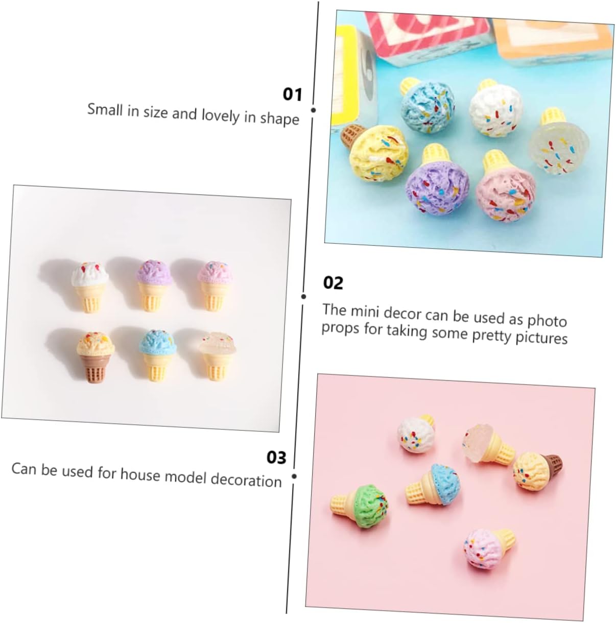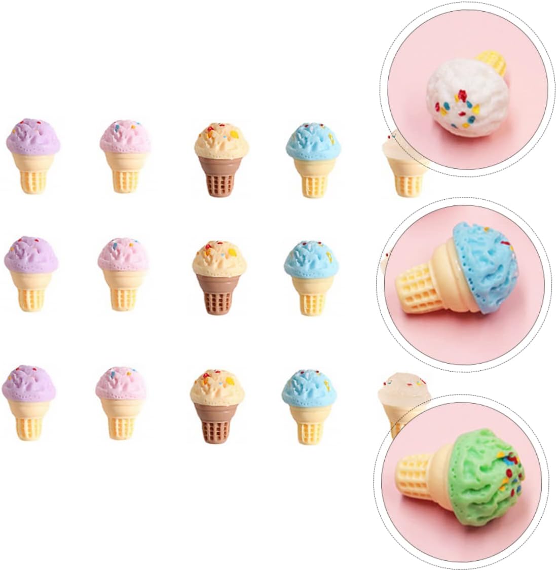 Caramelle per casa delle bambole: progettate appositamente per l'uso in mini casa fai da te, possono organizzare liberamente l'ornamento, mini ornamenti per gelato Giocattoli alimentari in miniatura: pregevole fattura e buon processo, non facili da deformare e danneggiare, modello mini cono Set da gioco per cibo da cucina: posizionalo nella tua mini casa o stanza per dettagli più realistici, rendi la mini casa più affascinante, modelli di gelato Cibi finti per la casa delle bambole: fantastici per i tuoi amici o familiari a cui piacciono i mini lavoretti, i mini gelati Ciondoli caramelle-- il mini decoro può essere utilizzato come supporto fotografico per scattare delle foto, adesivo fai da te per la custodia del telefono 3d
