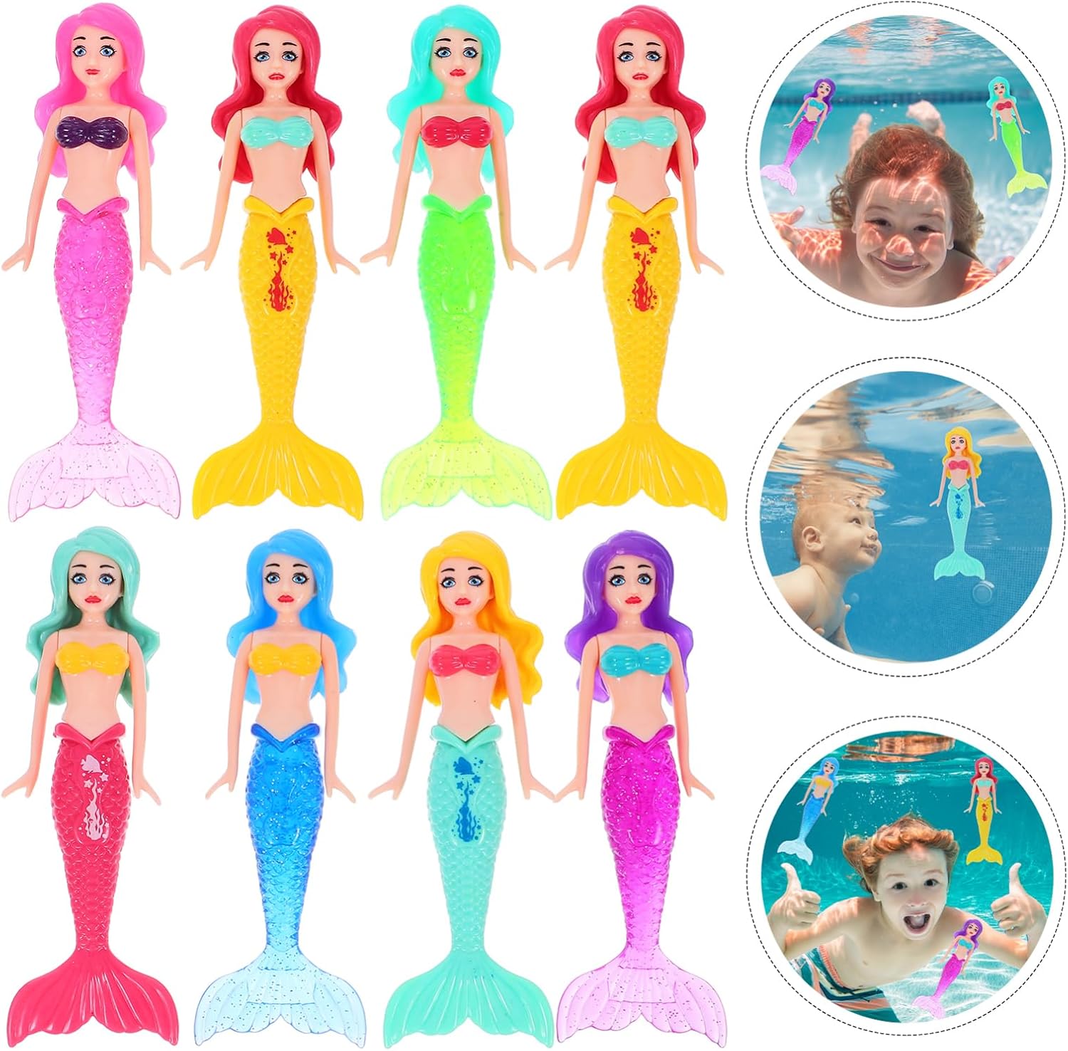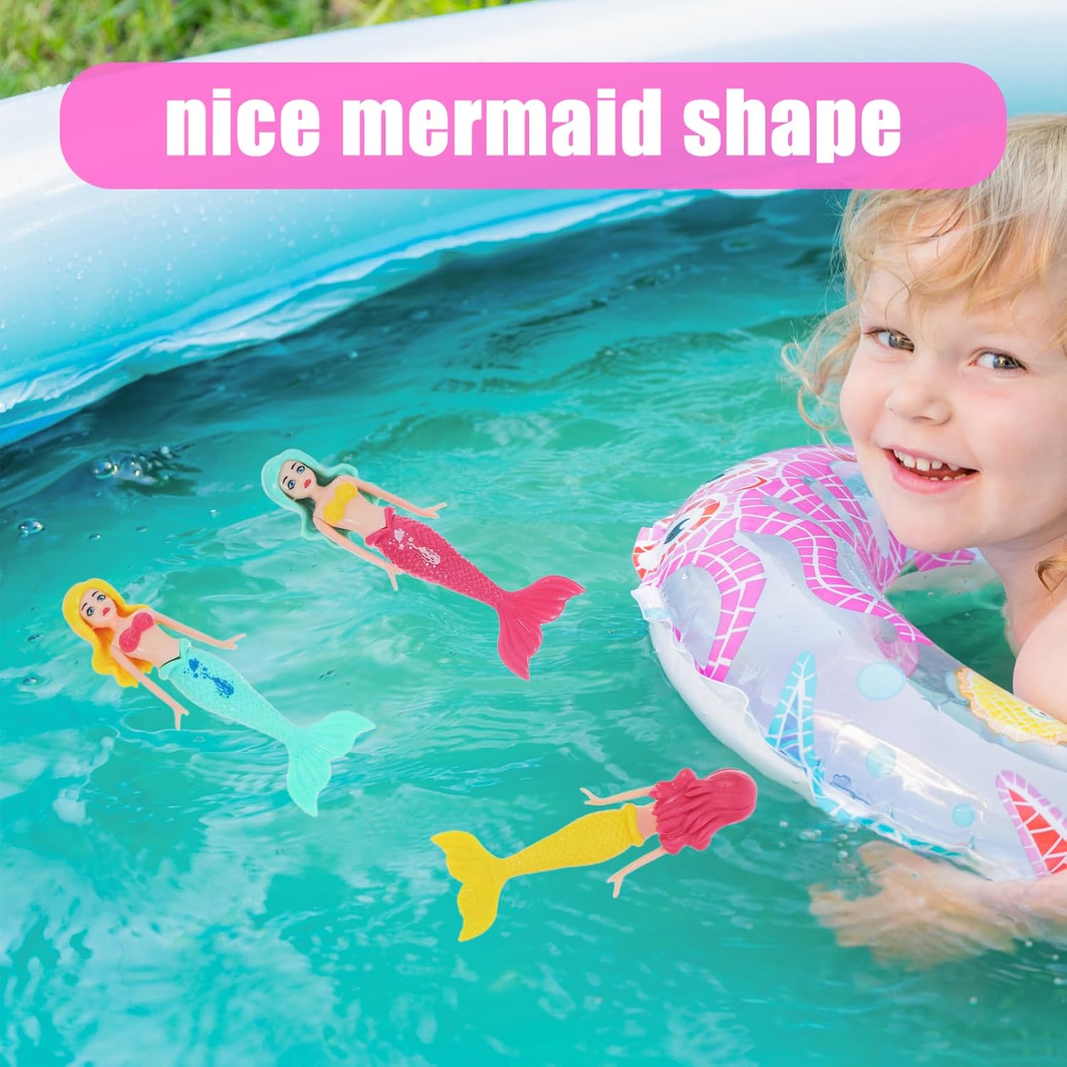 Sirena nuotatrice: le accattivanti bambole sirena sono perfette per tenersi impegnate durante la pratica del nuoto, rendendola un'esperienza deliziosa, il bagno Bagno da sirena: questo kit da immersione è leggero, di piccole dimensioni e molto facile da riporre quando non in uso, bagno da nuoto Tavolo ad acqua: colori vivaci e la forma della sirena possono aiutare a stimolare la vista, incoraggiandoli a toccare ed esplorare, piscina per Acqua: resistenza all'acqua affidabile e resistenza all'invecchiamento, inoltre, queste piscine non sbiadiscono facilmente al sole o danneggiano, giochi d'acqua Bambola della sirenetta: realizzata con materiali che garantiscono sicurezza e longevità, consentendo un uso ripetuto senza danni, galleggiante per piscina a forma di sirena