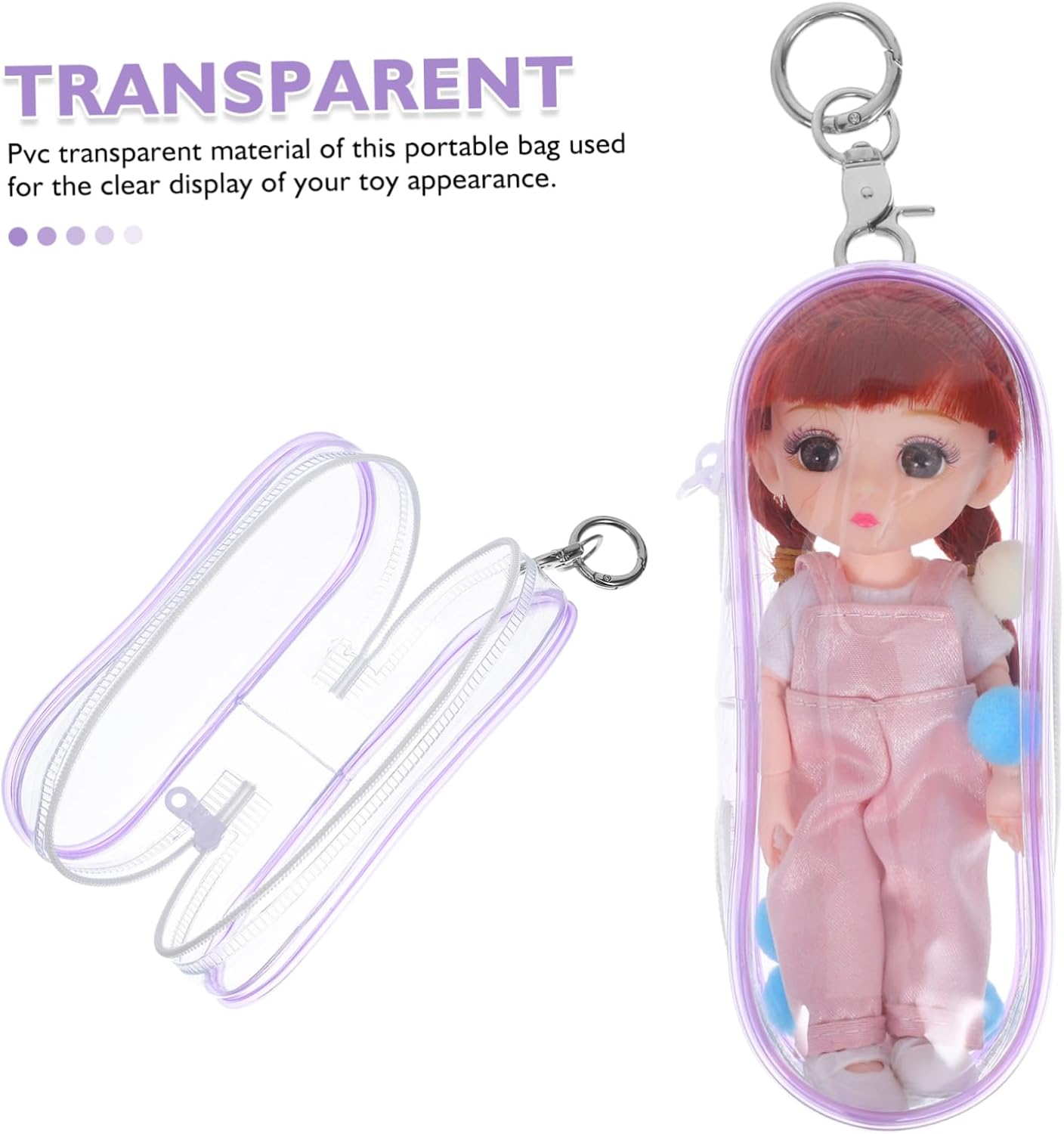 Borsa trasparente: design pratico, facile da trasportare e riporre, così puoi giocare e portare con te questa borsa per bambole portatile senza sforzi, borse trasparenti per bambole Accessorio per bambola: il peso è leggero, questa borsa appesa non aumenterà il peso extra della tua borsa ed è molto alla moda per l'uso, custodia per il trasporto della bambola Mini borsa trasparente: il design rende questa borsa per bambole adatta a qualsiasi occasione, offre praticità per la tua vita, borsa per bambole con fibbia Mini custodia per esposizione bambole: appendi questa custodia per bambole allo zaino della scuola o alla valigia per un grazioso abbellimento, molto utile, mini custodia per bambole Mini borsa per bambola: realizzata in materiale pvc, questa borsa per bambola è progettata per essere durevole, garantendo resistenza all'usura, piccola borsa per bambola