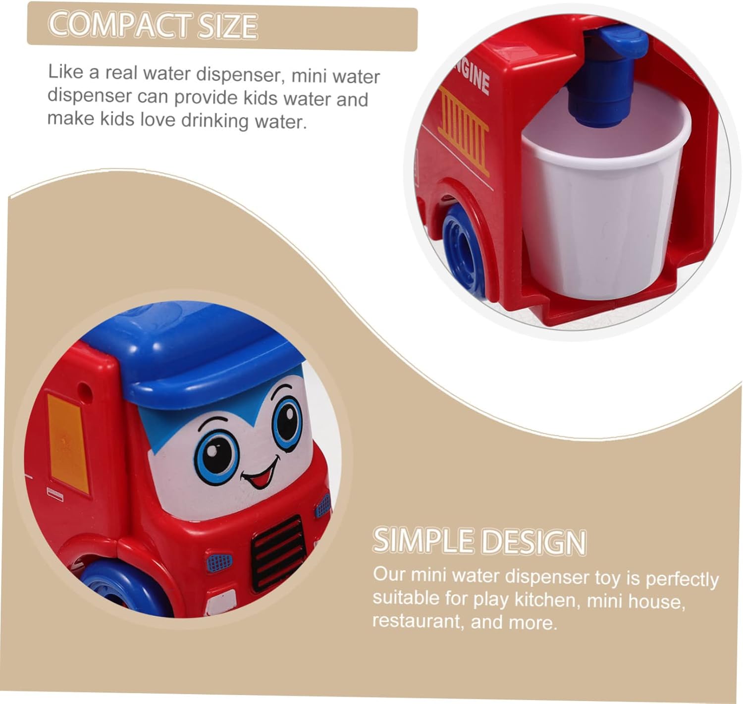 Mini erogatore: la forma di un camion dei pompieri dei cartoni animati rende questo erogatore d'acqua adorabile e attraente per i mini oggetti funzionanti Mini roba: la fontanella in miniatura è progettata per rendere più intelligente, più fantasiosa e creativa la tazza d'acqua per auto Mini fontanella: il distributore d'acqua può anche essere un genitore e interattivo per aumentare il rapporto tra genitore e di distributore d'acqua Mini: una fontanella interessante, per un'infanzia felice, adatta all'uso, piccolo distributore d'acqua Decorazione per la casa delle bambole: mini distributore d'acqua per la capacità di prendersi cura di sé e la creatività, promuovere le capacità motorie, distributore d'acqua