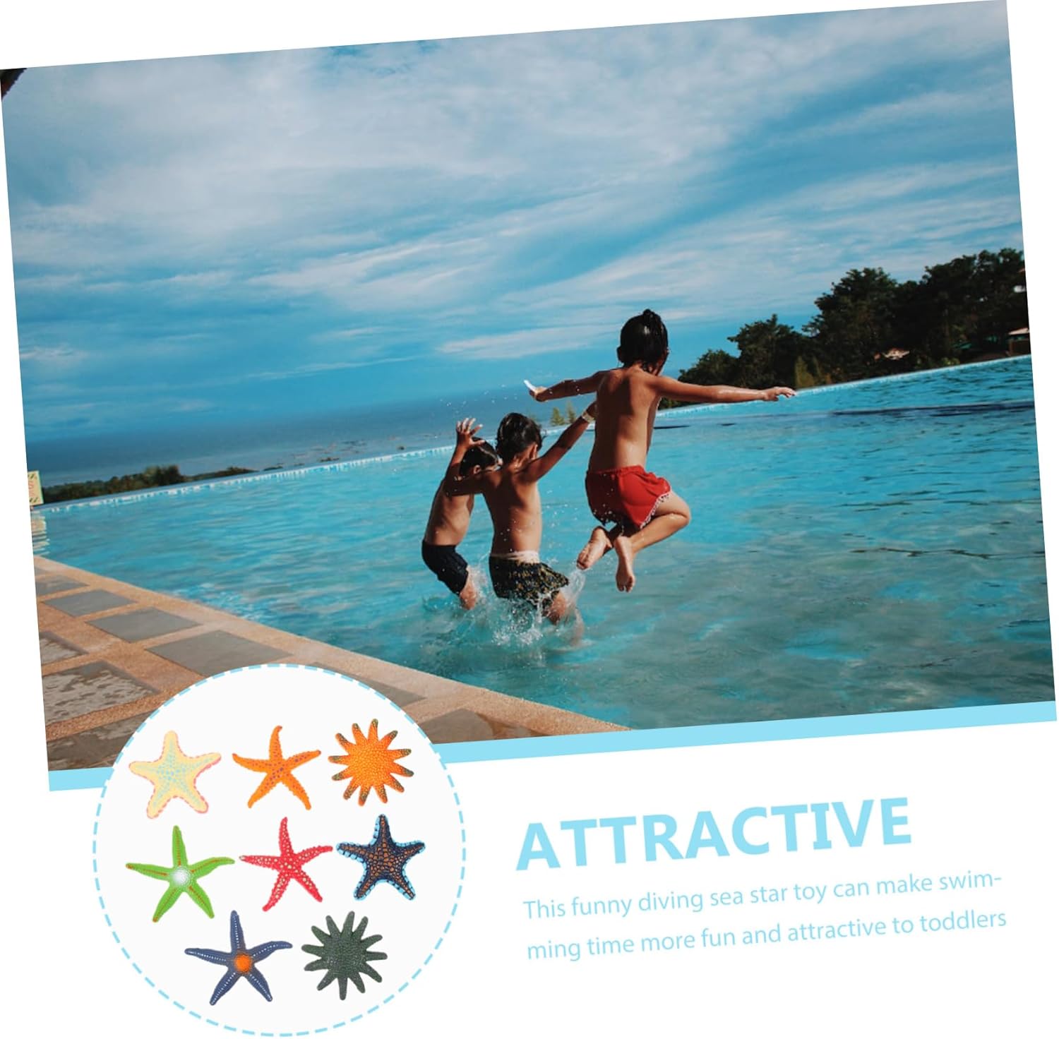 Giocattoli da immersione colorati: adottando materiale in pvc, questo set di giocattoli da immersione per è sicuro e durevole per un uso duraturo, giocattoli da nuoto Giocattoli subacquei per : con questo creativo giocattolo a forma di stella marina subacquea, i saranno molto emozionati e si divertiranno molto durante le immersioni, giocattoli subacquei per piscine per Giocattolo da sub: i bordi sono lisci e rotondi, senza sbavature, sicuri per la pelle, questi giocattoli da piscina possono essere utilizzati in tutta tranquillità, decorazioni per feste in piscina Giocattoli estivi per : questo kit di giocattoli per immersioni è leggero, di piccole dimensioni e molto facile da riporre quando non in uso, giocattoli per piscine Giocattolo per piscina: buona resistenza all'acqua e all'invecchiamento, più durevoli, questi giocattoli subacquei non sbiadiscono facilmente al sole o si danneggiano, giocattoli che affondano in piscina