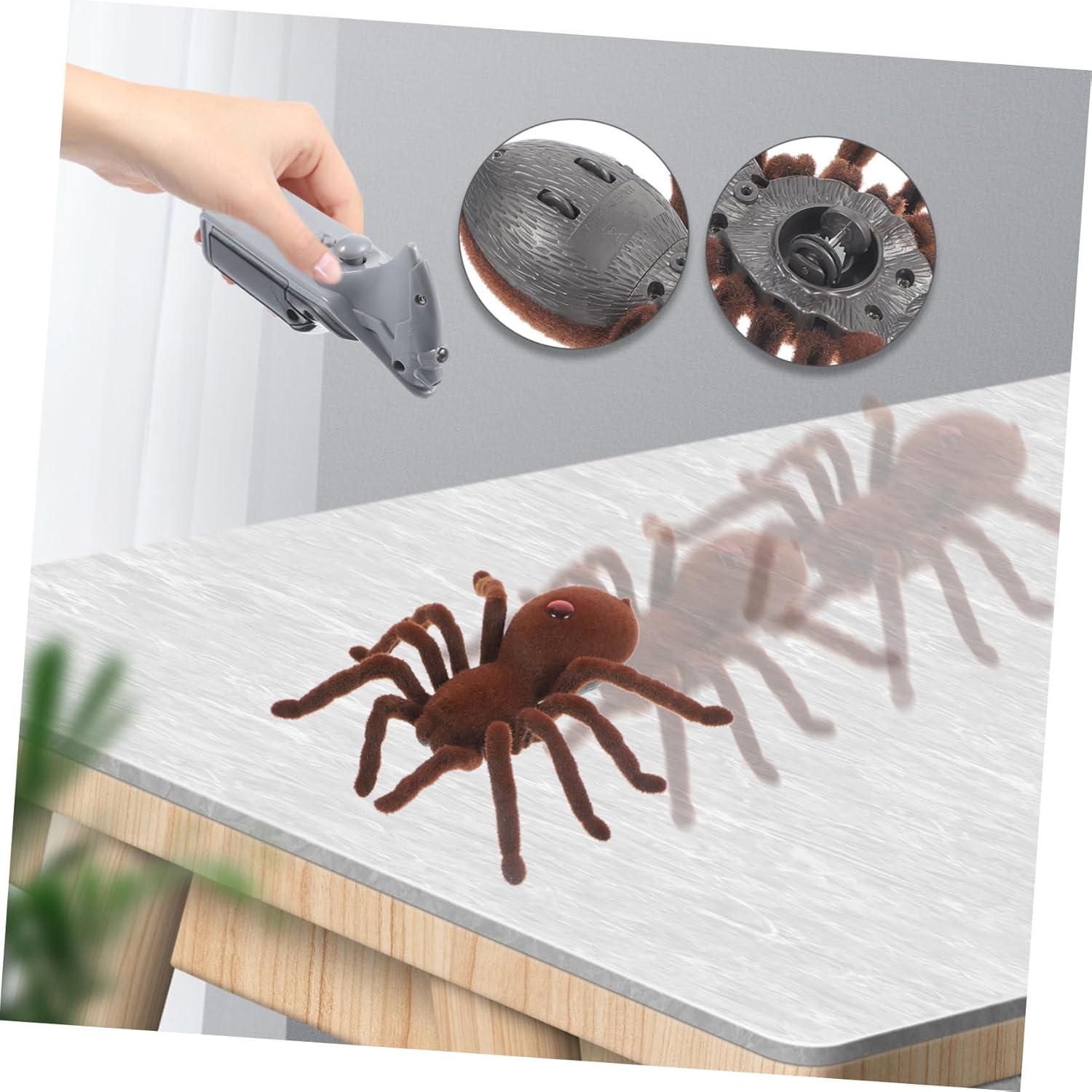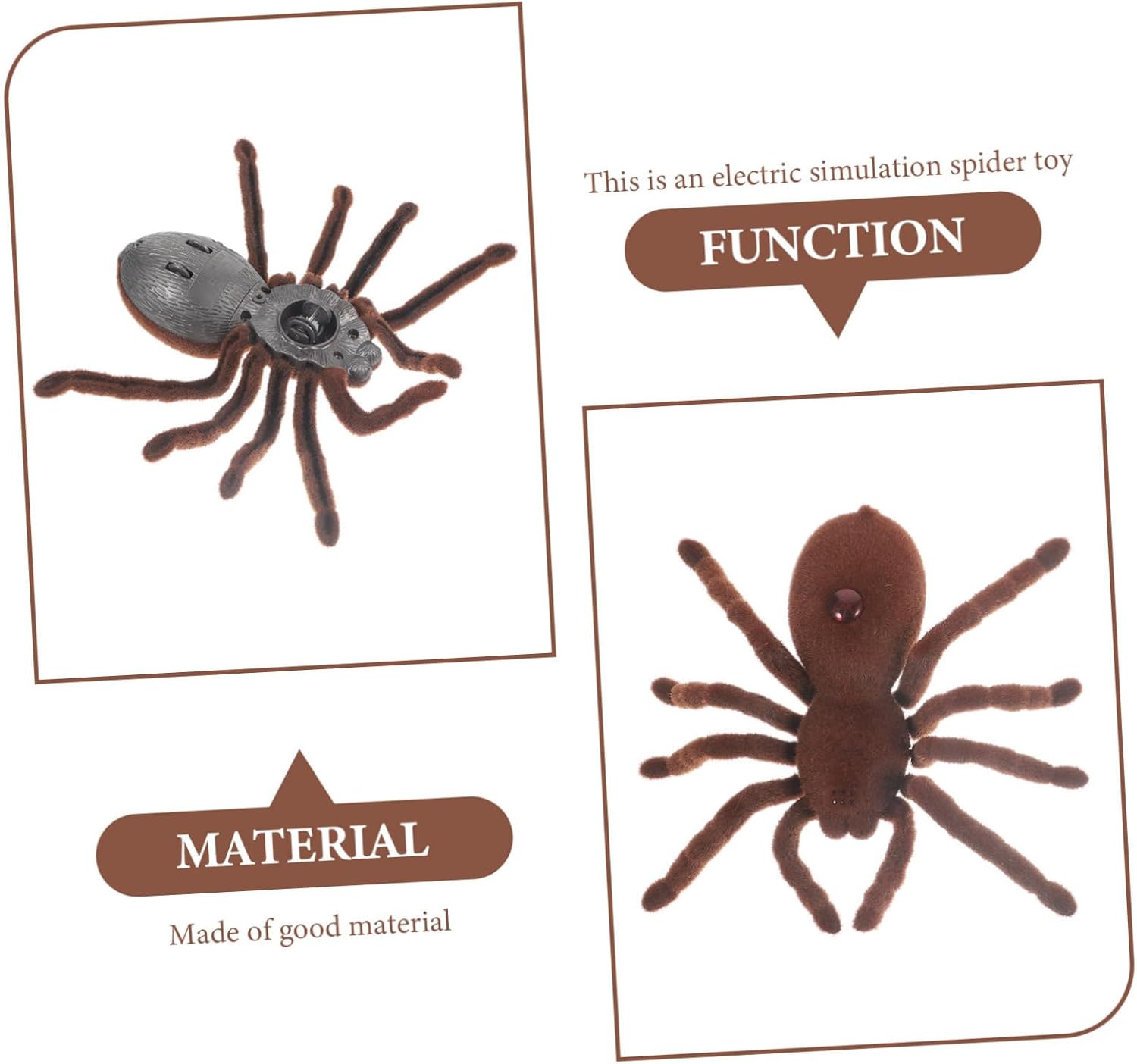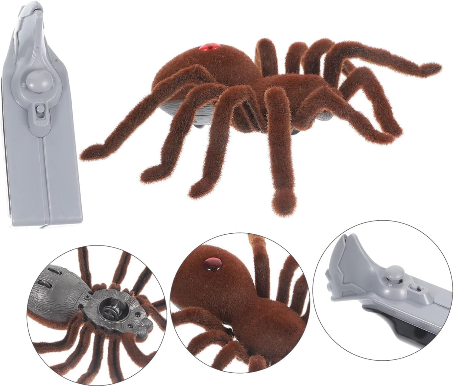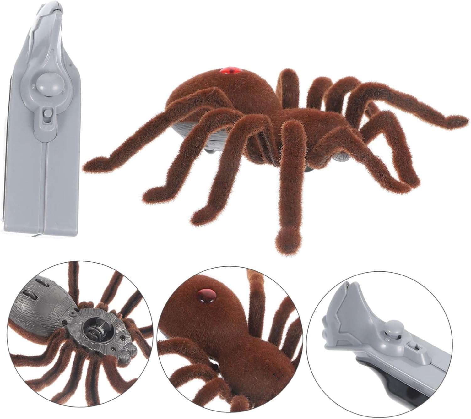 Gli occhi del ragno possono lampeggiare con una luce rossa brillante, il che rende più divertente giocare o essere complicato di notte. Il fondo dotato di ruote girevoli flessibili, che consentono di avanzare e ruotare più agevolmente. Le zampe del ragno oscilleranno su e giù, l'effetto durerà più a lungo. Selezione di plastica e flanella di alta qualità e durevoli, che possono servirti per un po'. Il divertente giocattolo complicato del ragno soddisfa le esigenze di eccitazione dei bambini.
