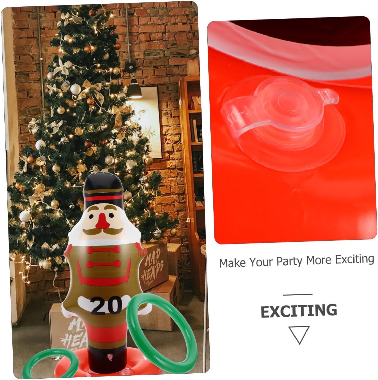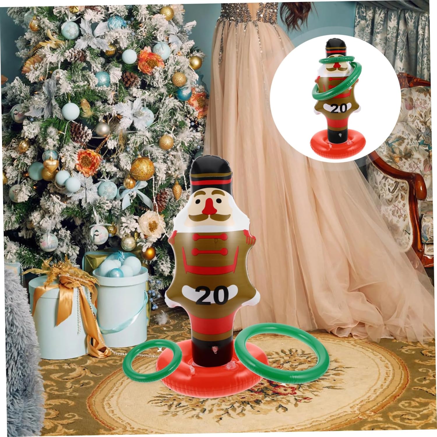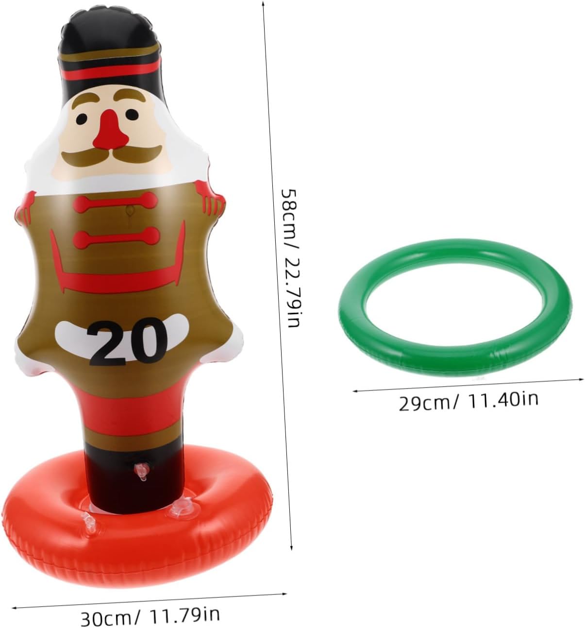 Facile da pulire: la superficie liscia in pvc è facile da pulire, garantendo che il gioco rimanga pronto per l'uso in qualsiasi momento, giocattoli per lanciare schiaccianoci, giocattoli per lanciare anelli schiaccianoci Essenziale per le feste: un must per qualsiasi festa di natale, questo gioco offre un intrattenimento e aiuta a creare un'atmosfera vivace e festosa, divertimento per le feste di natale, gioco di lancio dell'anello all'aperto Costruzione robusta: realizzato in robusto materiale pvc, questo gioco è progettato per resistere a un gioco duro e durare per molte stagioni di festa, lancio dell'anello gonfiabile, giochi di lancio di natale Divertimento educativo: aiuta a sviluppare la coordinazione occhio-mano e le capacità motorie nei , offrendo al contempo un'attività divertente e piacevole, lancio dell'anello dello schiaccianoci di natale, lancio dell'anello di babbo natale Conservazione compatta: una volta sgonfiato, il gioco può essere facilmente riposto in un piccolo spazio, rendendolo comodo da conservare e riutilizzare per giochi di lancio dell'anello dello schiaccianoci, giocattoli per giochi di feste di natale