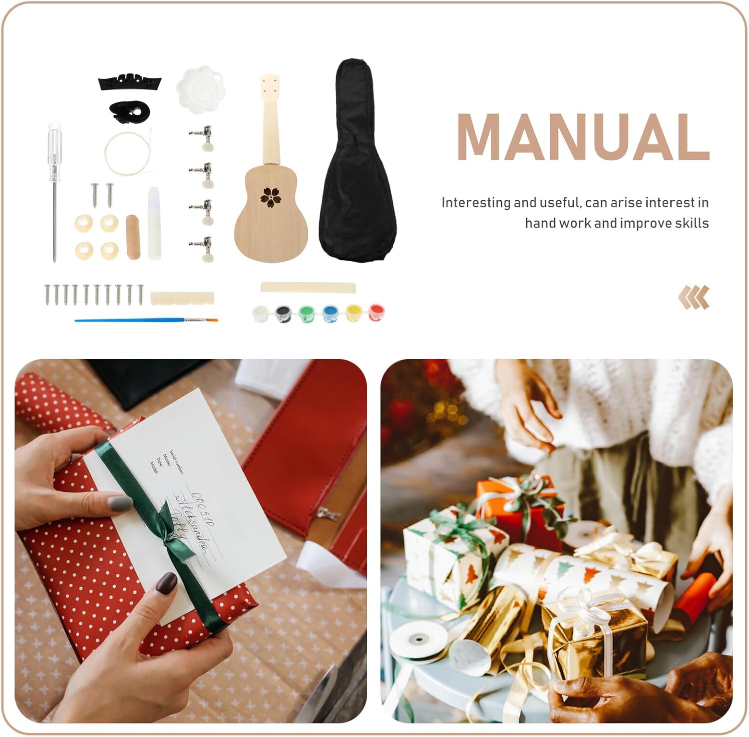 Ukulele fatto a mano: un bel regalo per i tuoi amici o come decorazione per la tua casa. il prodotto ha funzioni pratiche. set per ukulele fatto a mano Kit per ukulele: questo set può essere utilizzato come regalo per coloro che sono interessati all'ukulele, kit per ukulele Kit per ukulele fai da te Accessori per ukulele - Un ottimo strumento musicale per allenare la capacità di coordinazione della mano e del cervello, offrendoti una buona esperienza, kit di materiali per ukulele