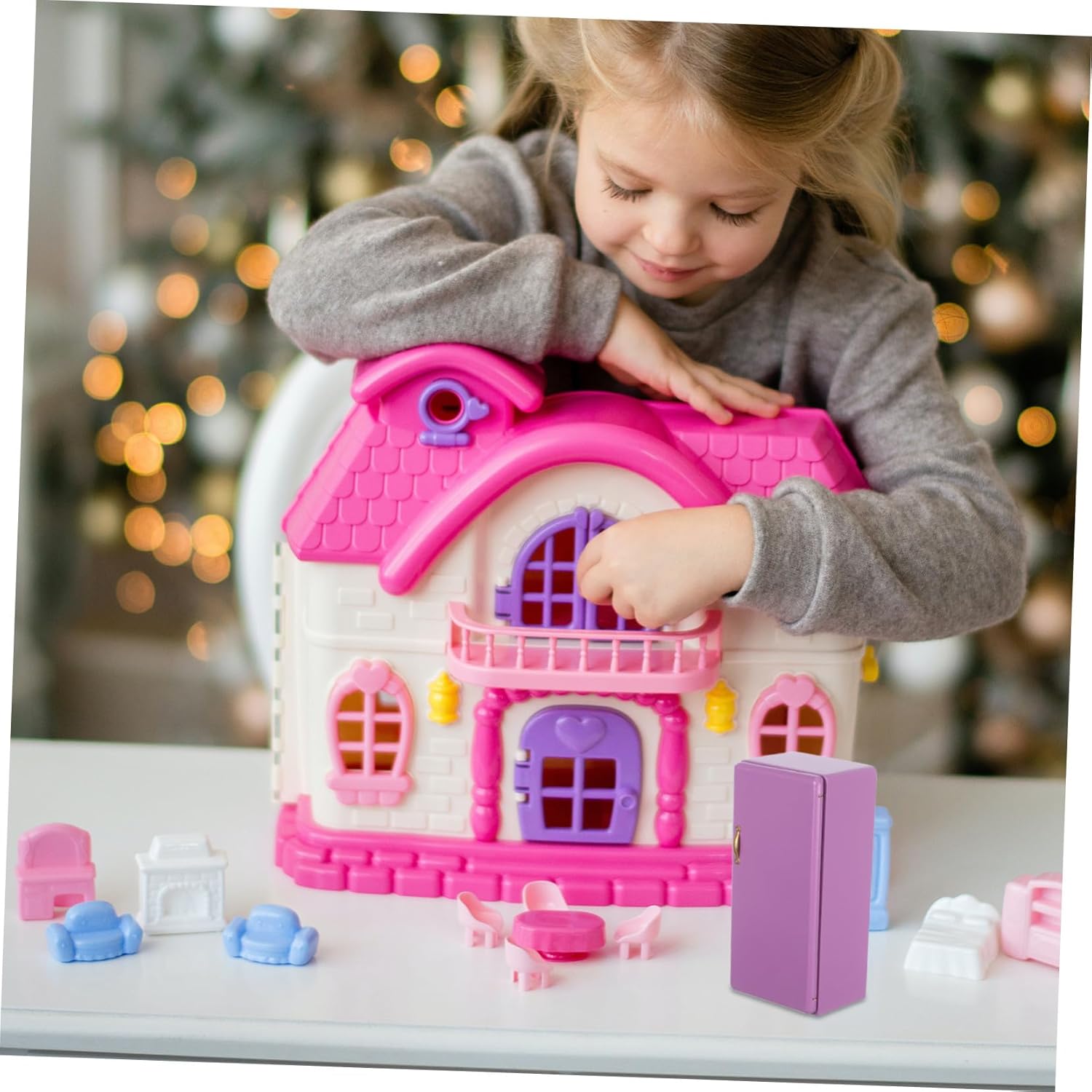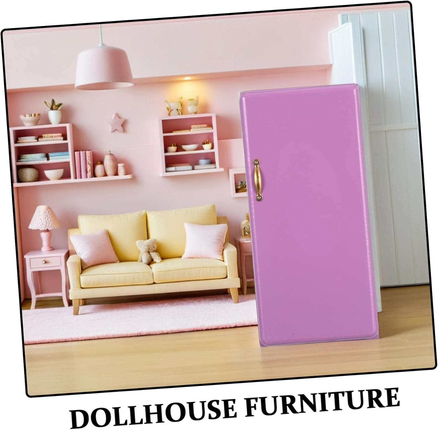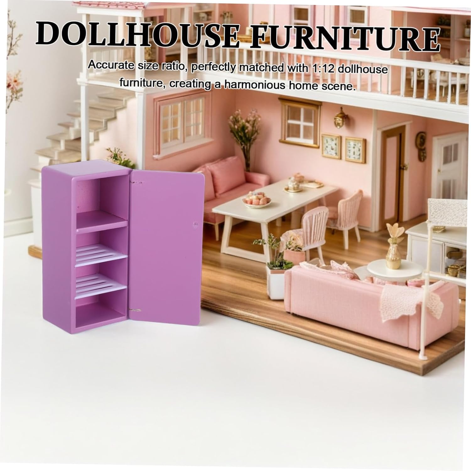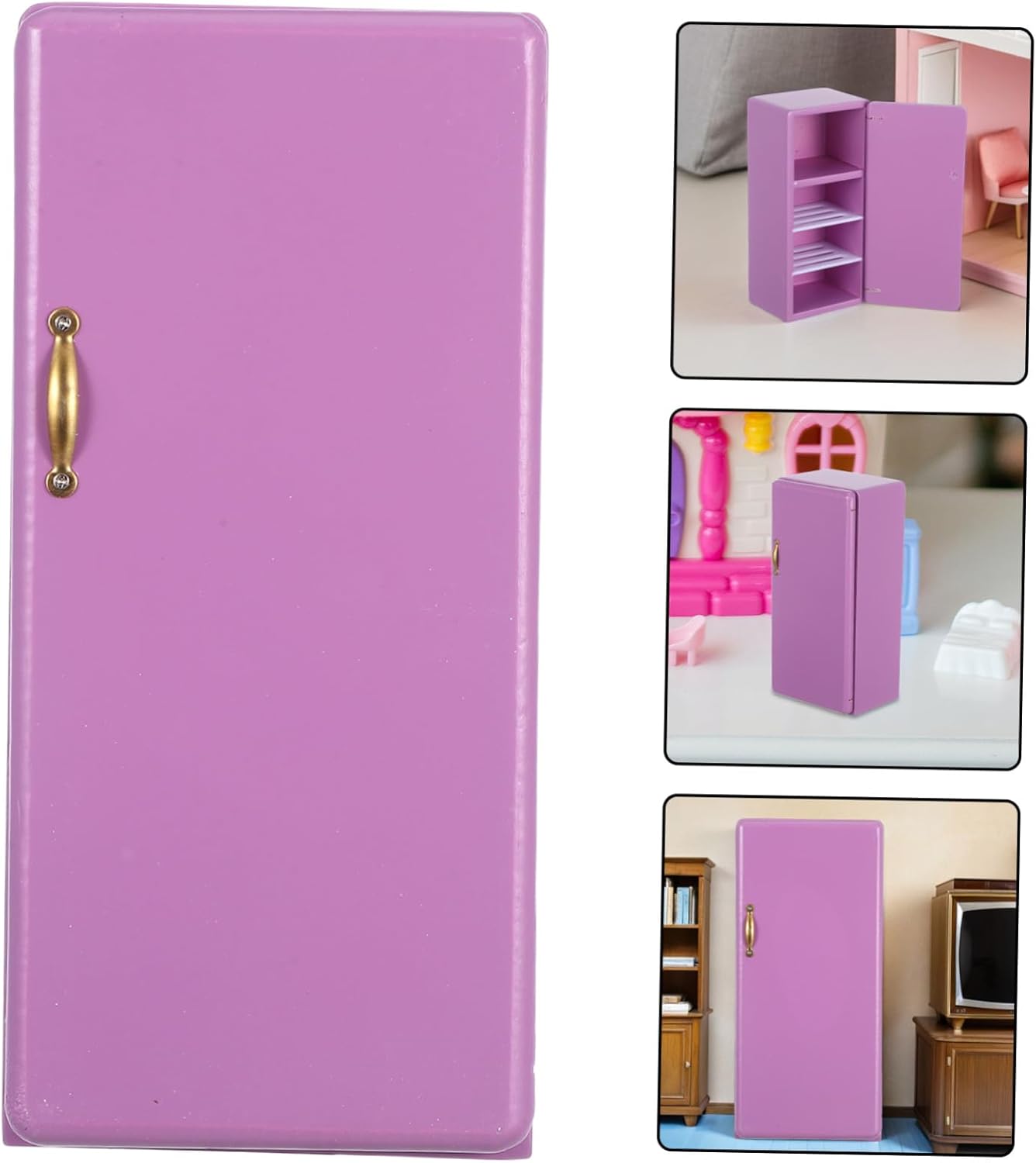 Colore viola vibrante: l'esclusiva tonalità viola aggiunge un tocco di colore all'arredamento o alla cucina del soggiorno o della cucina della casa delle bambole, creando un ambiente in miniatura visivamente accattivante ed elegante, un frigorifero in miniatura per la casa dei giochi o un modello di casa delle bambole nella sala da pranzo. per giochi di ruolo per bambini e arrangiamenti creativi. Modello di frigorifero, frigorifero per casa delle bambole per casette Incoraggia l'immaginazione: questo giocattolo per casa delle bambole arricchisce l'esperienza di gioco di ruolo e consente ai bambini e ai collezionisti di creare storie dettagliate ed emozionanti della casa delle bambole. Frigorifero per casa delle bambole in legno, frigorifero in miniatura realistico Design realistico in miniatura: questo mini frigorifero per casa delle bambole replica l'aspetto di un vero frigorifero e aggiunge autenticità alla cucina o alla sala da pranzo della tua casa delle bambole. Modello di frigorifero per giochi di ruolo, casa delle bambole per giochi di ruolo